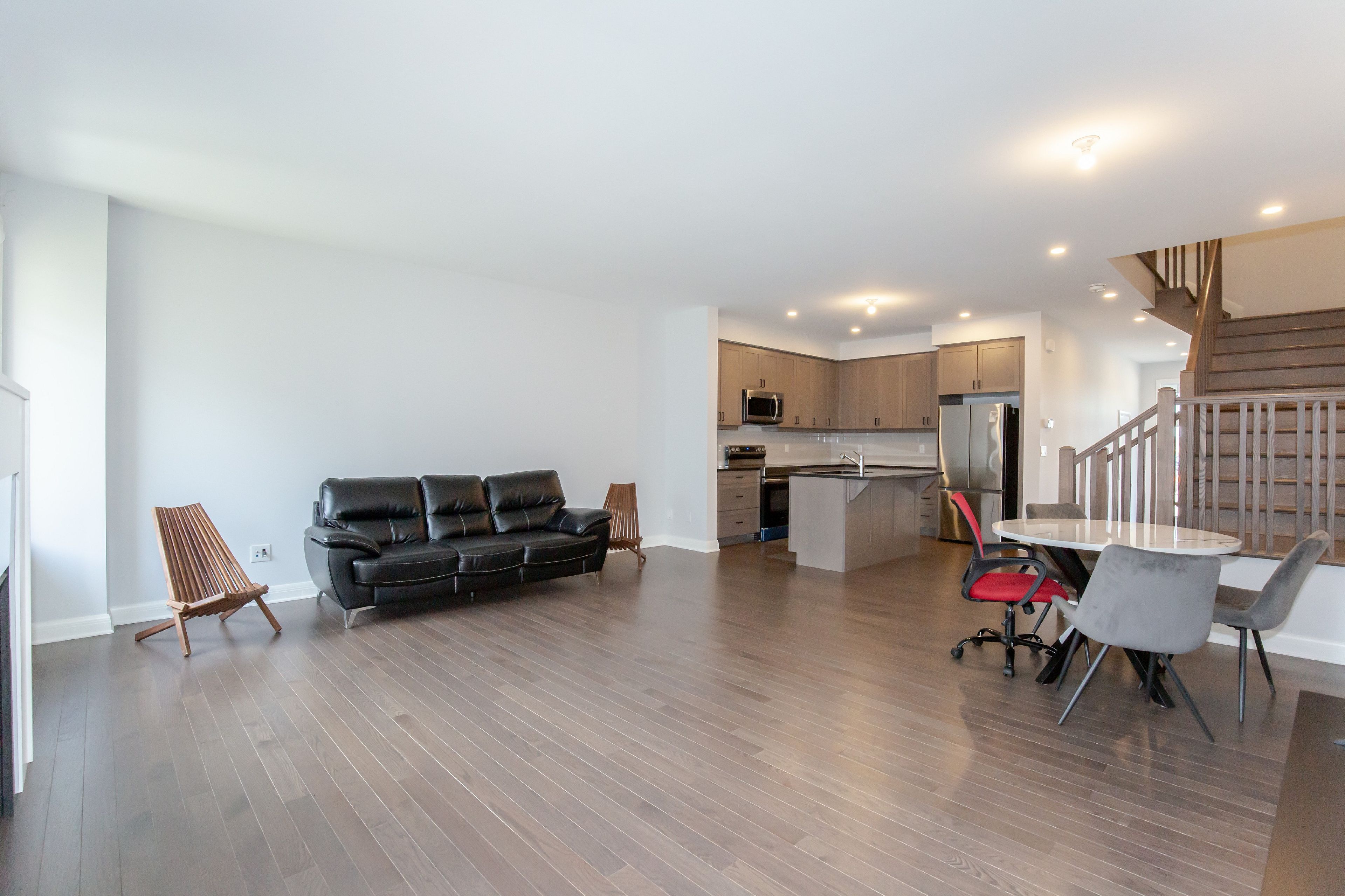 • Open-concept layout featuring 9-foot ceilings and hardwood floors.