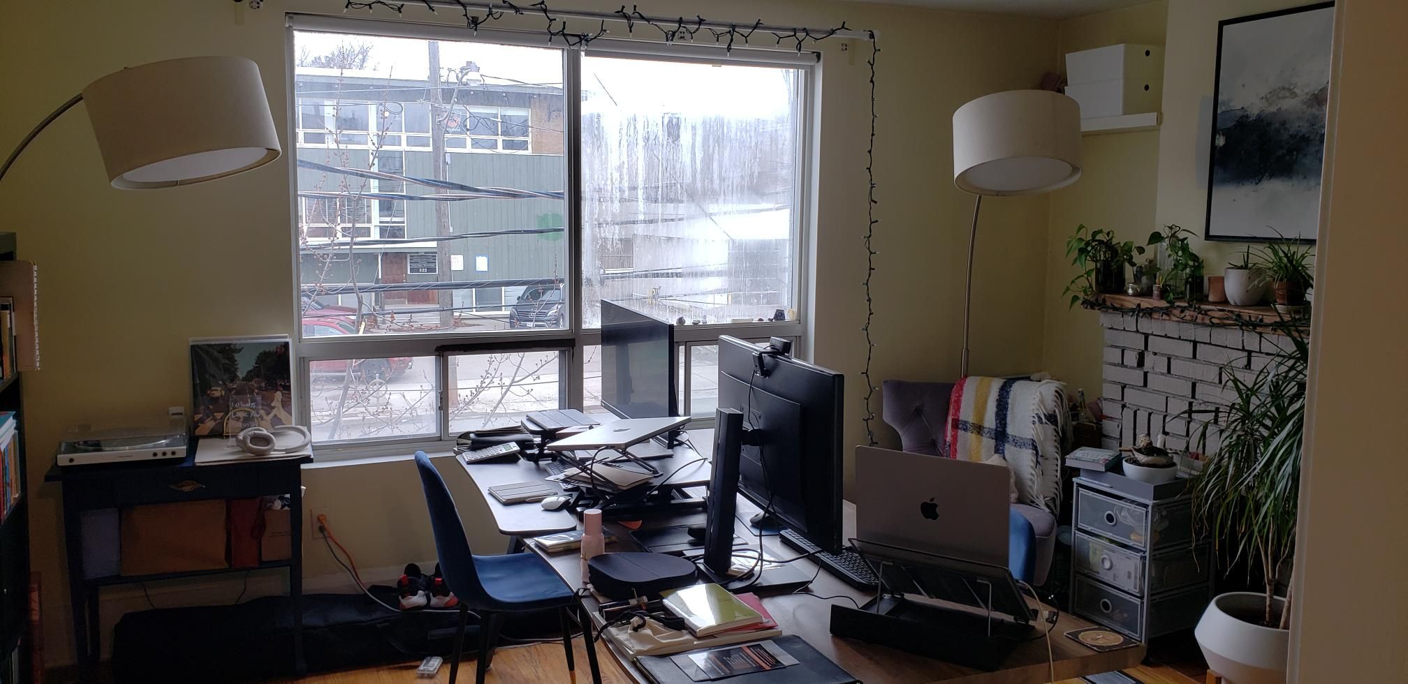 • Character apartment with hardwood floors and fireplace above commercial space.