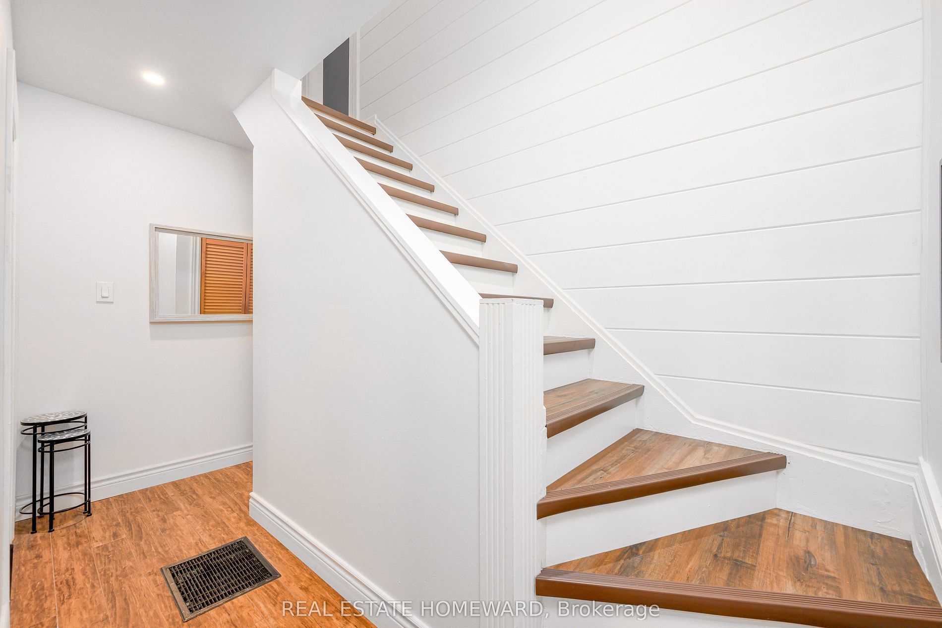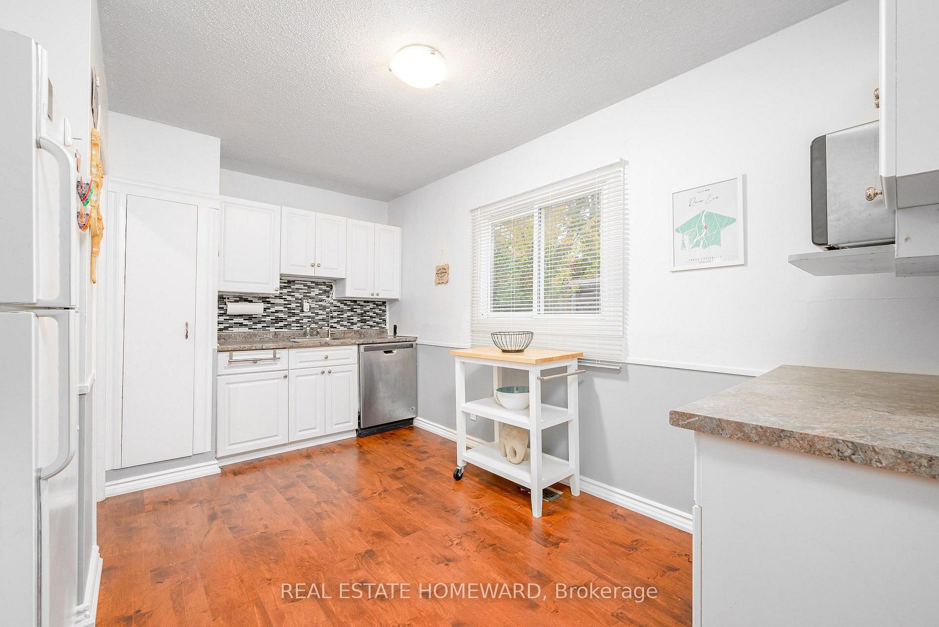 Charming 1. 5-storey home, nicely situated in peterborough's desirable south end. Whether you're buying your first home or looking to downsize, this well-maintained property offers a fantastic opportunity. The main floor has a living room, a bright & functional kitchen, a separate dining area and a full 4pc bath. Upstairs you will find the primary bedroom and 2nd guestroom, both offer unique storage with lots of closet spaces. $$$$ spent on a brand new basement. Finished with a 3pc bath, den or 3rd guestroom, rec space, laundry and utility storage. You will enjoy the quaint sitting area at your front door, nice sized deck in the back and spacious back and side yards. Close to all amenities, trails, public transit.