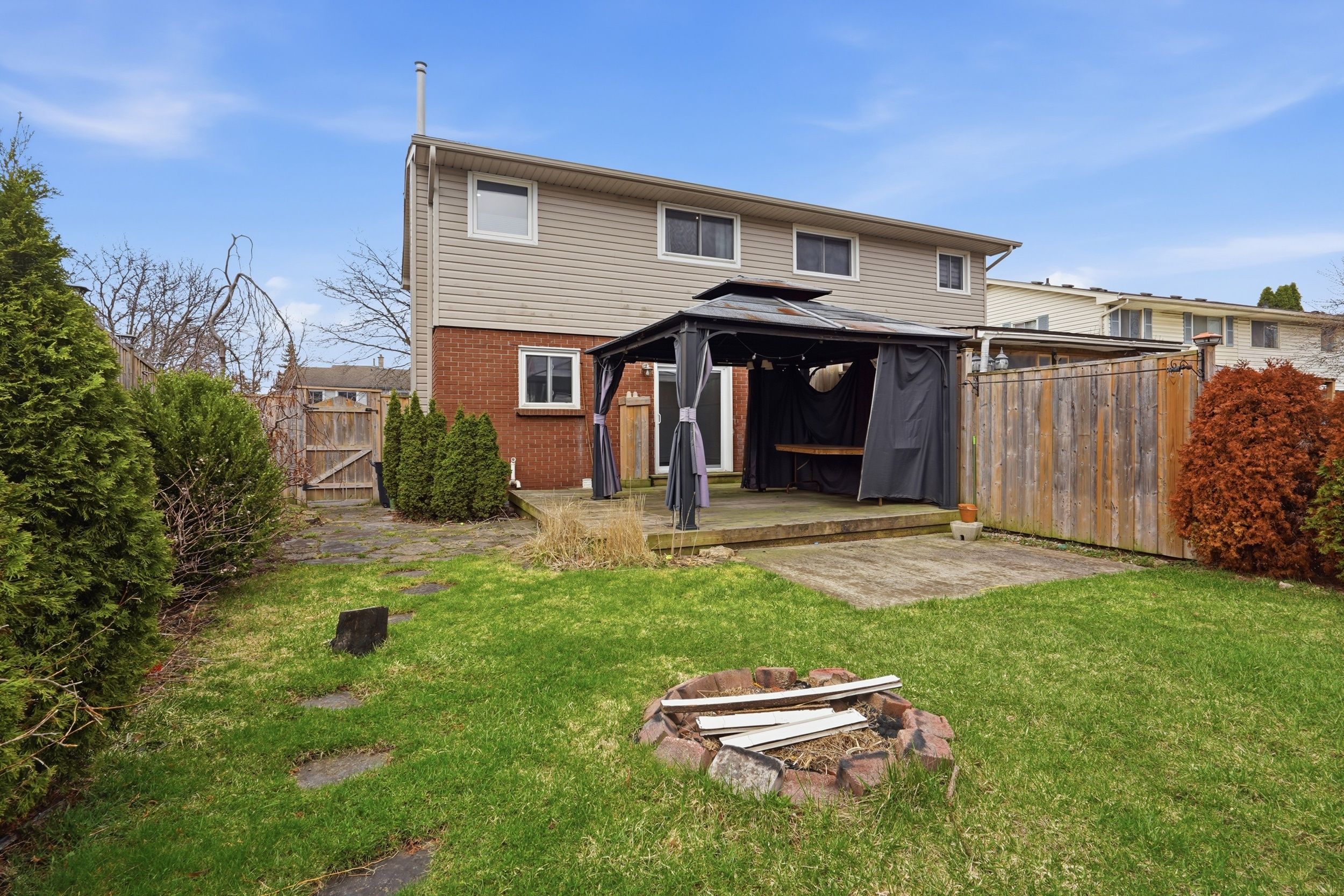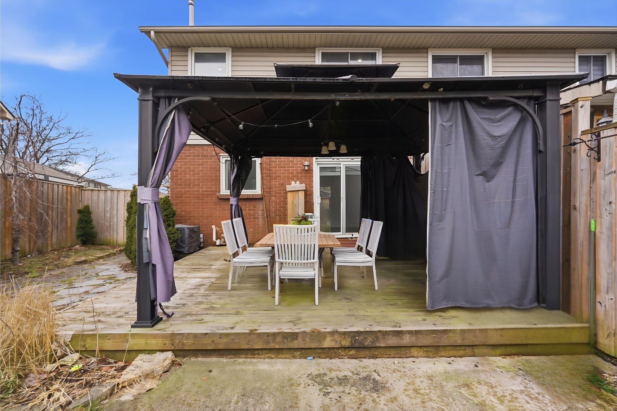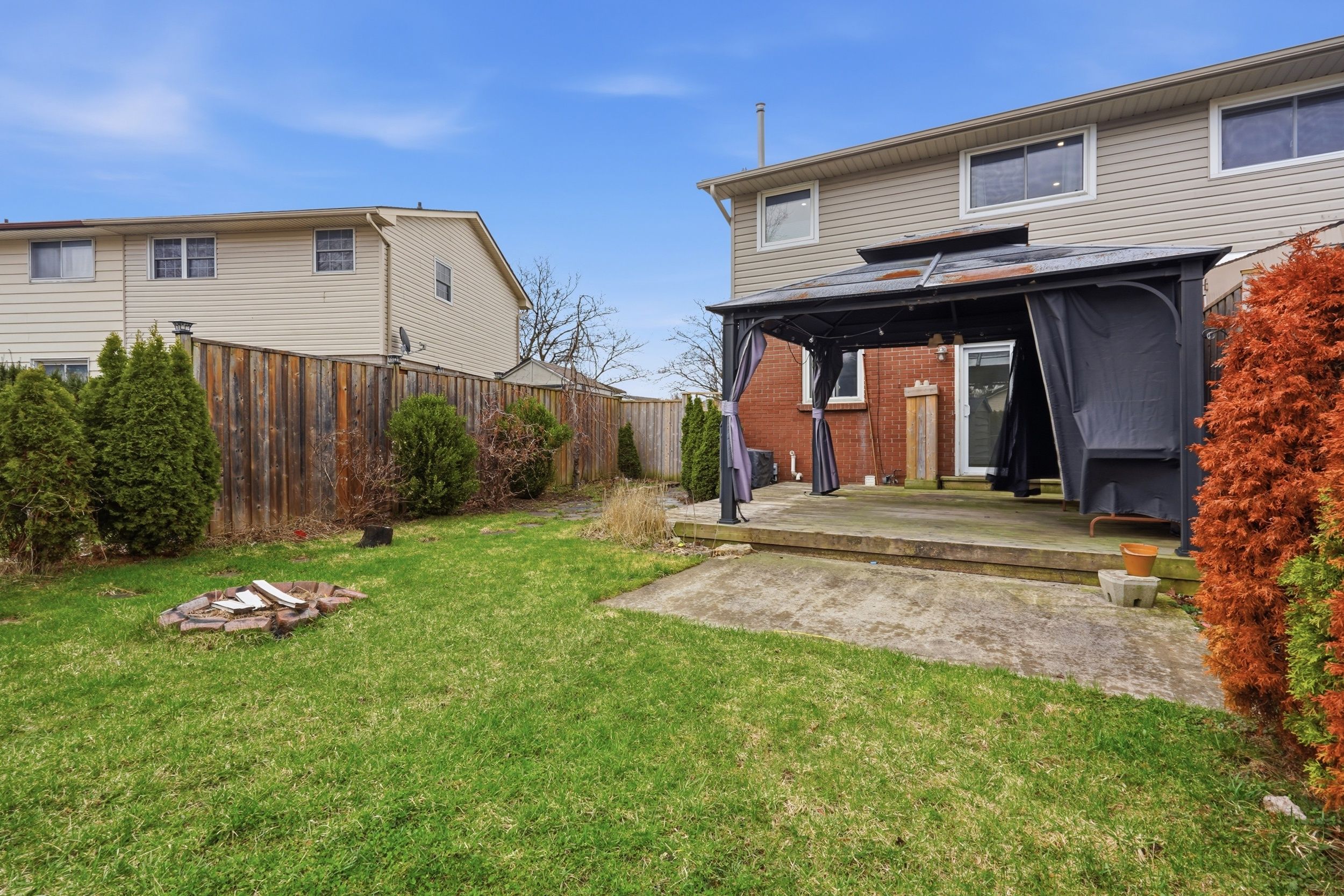 • Private fenced yard with deck and gazebo for outdoor entertaining.