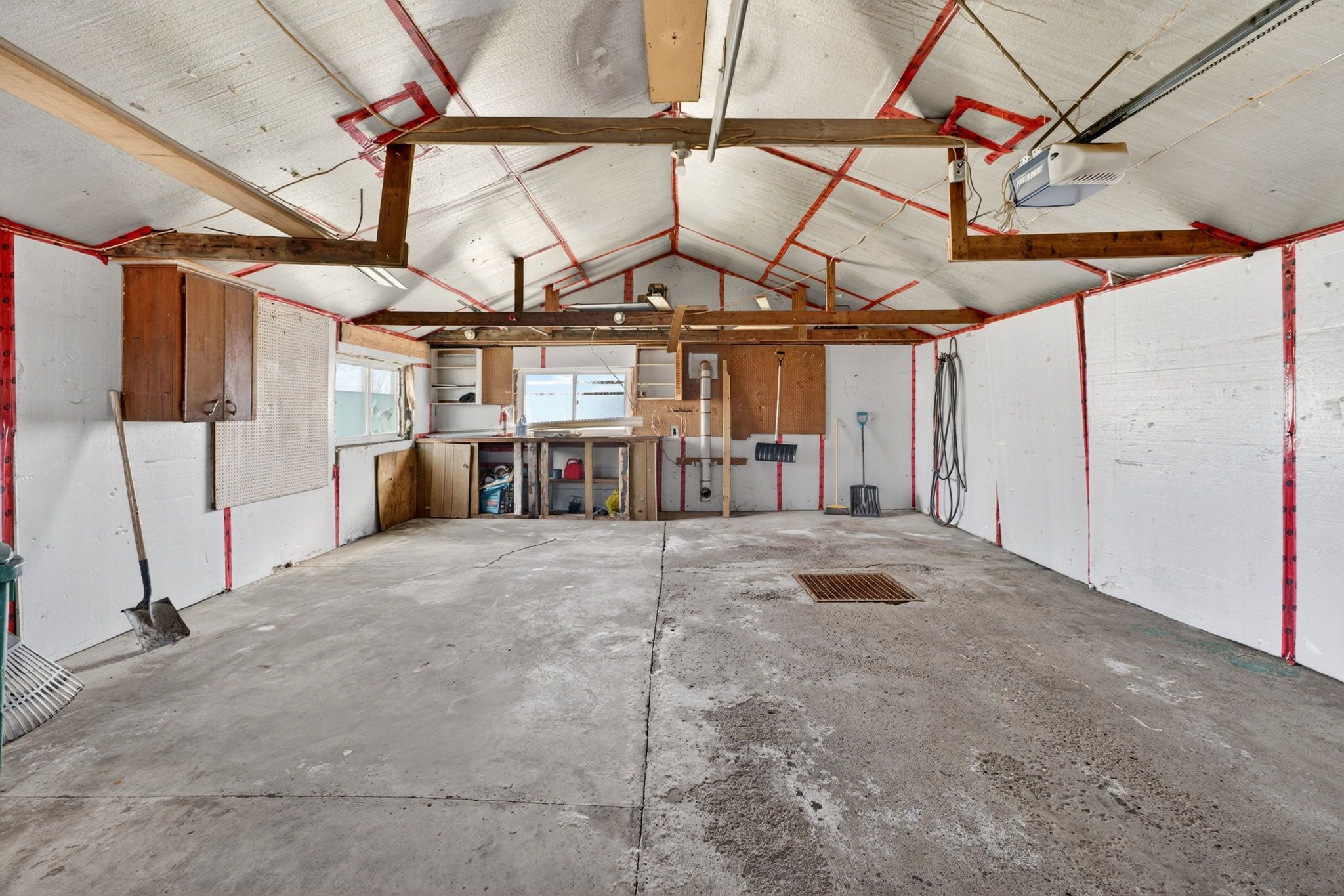 • Oversized detached garage with durable metal roof for extra storage and hobbies.