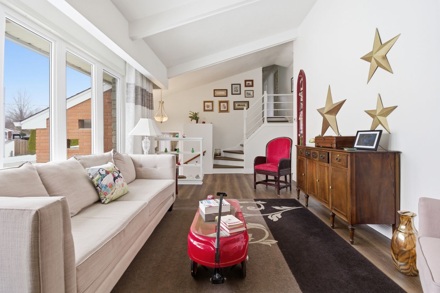 5210 timothy crescent is the kind of home where your family can truly settle in and grow. Tucked away on a quiet cul-de-sac in one of niagara falls' most sought-after neighbourhoods, it offers the space, comfort, and layout that just makes everyday life easier. From the moment you step inside, you'll notice the natural light pouring into the main floor. The generous eat-in kitchen is perfect for busy mornings and casual dinners, while the separate dining area opens directly to the expansive back deck - ideal for summer barbecues and evening gatherings. The inviting living room, anchored by a classic wood-burning fireplace, creates a warm space to unwind at the end of the day. Upstairs, you'll find three spacious bedrooms with plenty of closet space and a full 4-piece bathroom - room for everyone to have their own space. The lower levels offer incredible flexibility, with a family room for movie nights, a practical laundry area with walk-out access to the yard, a cozy finished recreation room, and even a bonus workshop area for hobbies, projects, or extra storage. Set on a deep 45 x 150 ft fully fenced lot, the backyard gives you plenty of room for kids, pets, entertaining, or simply enjoying some quiet time outdoors. With an attached garage and plenty of parking spaces, plus close proximity to parks, schools, shopping, public transit, and hospital access, this is a home that truly supports your lifestyle not just today, but for years to come.