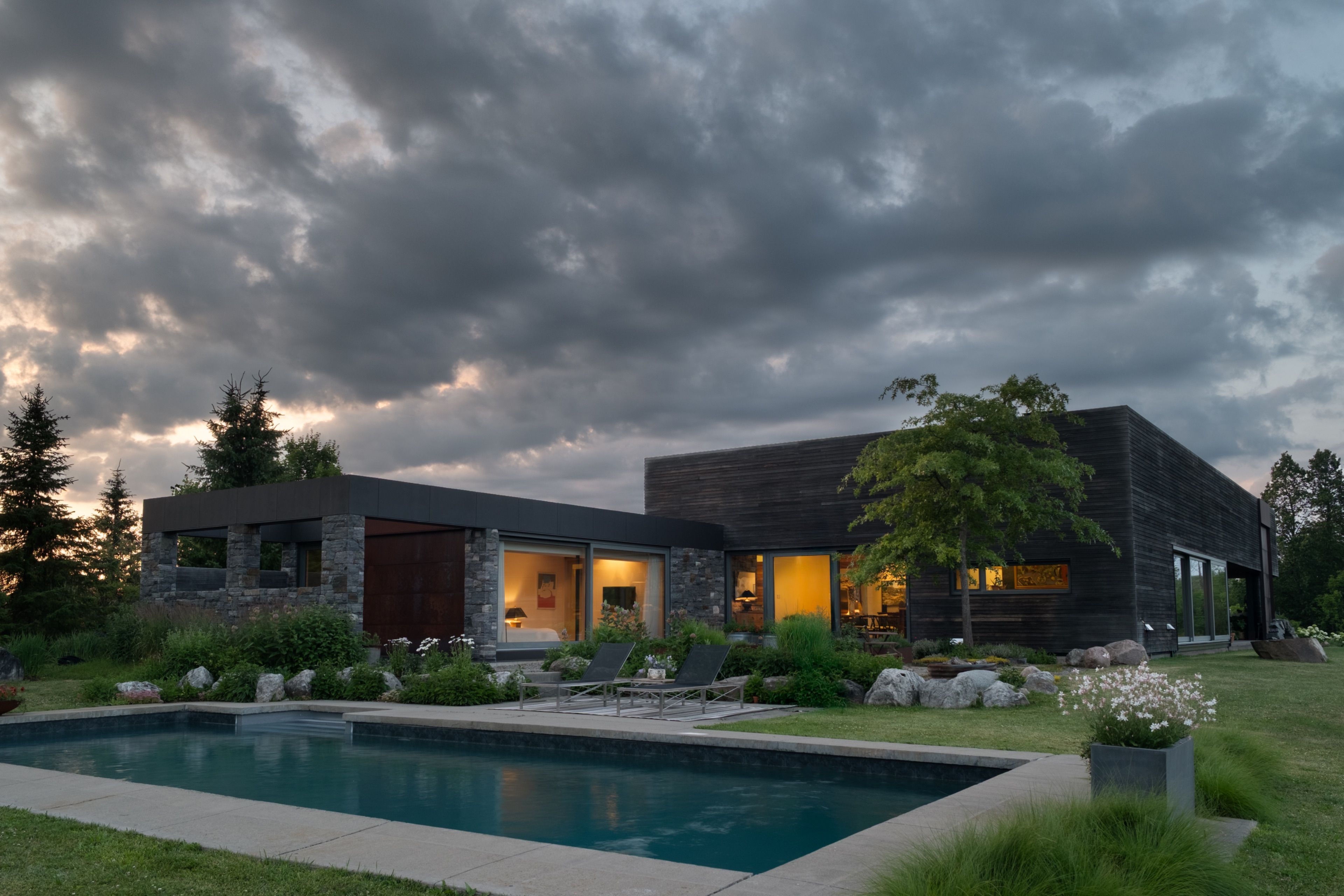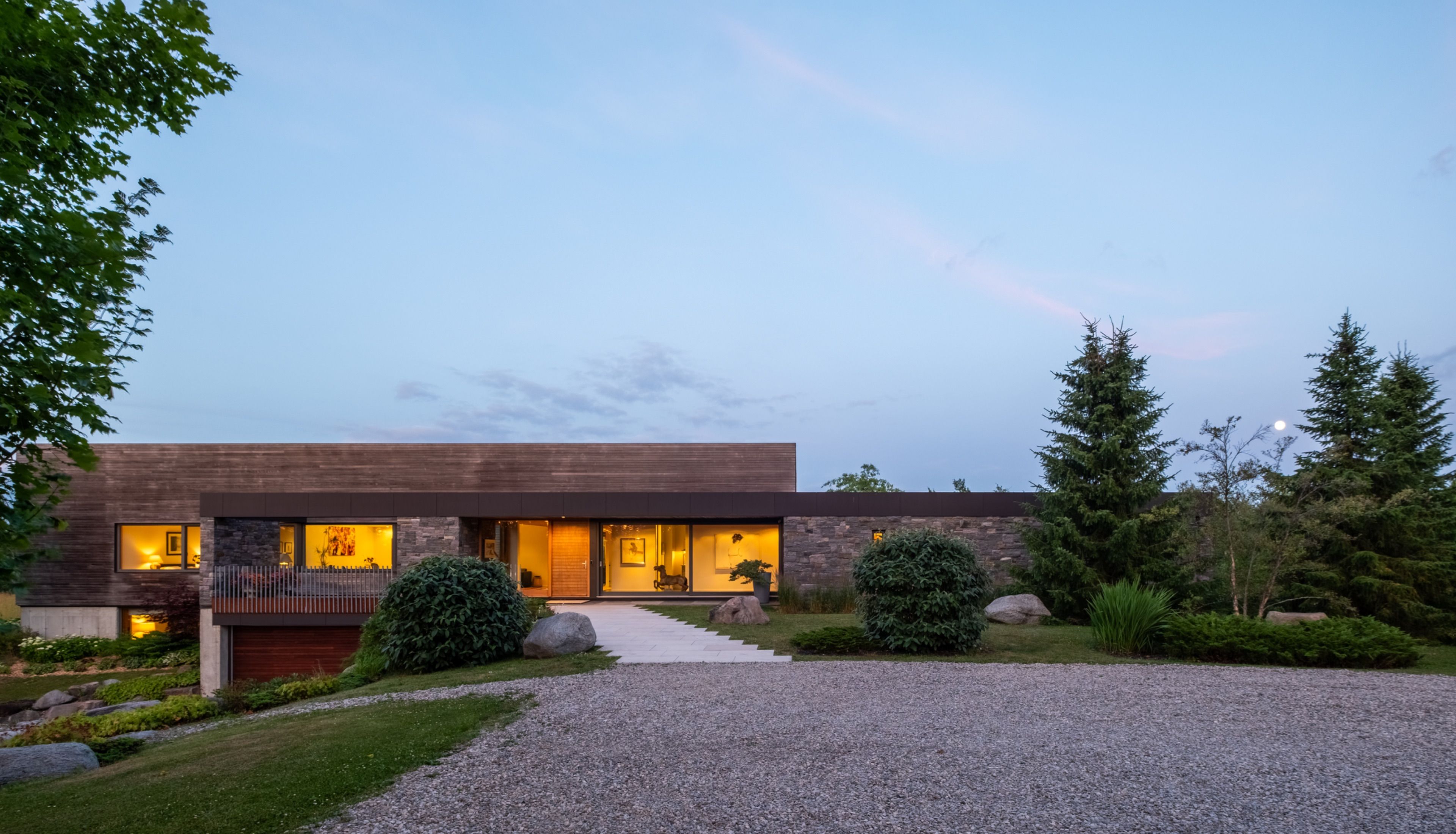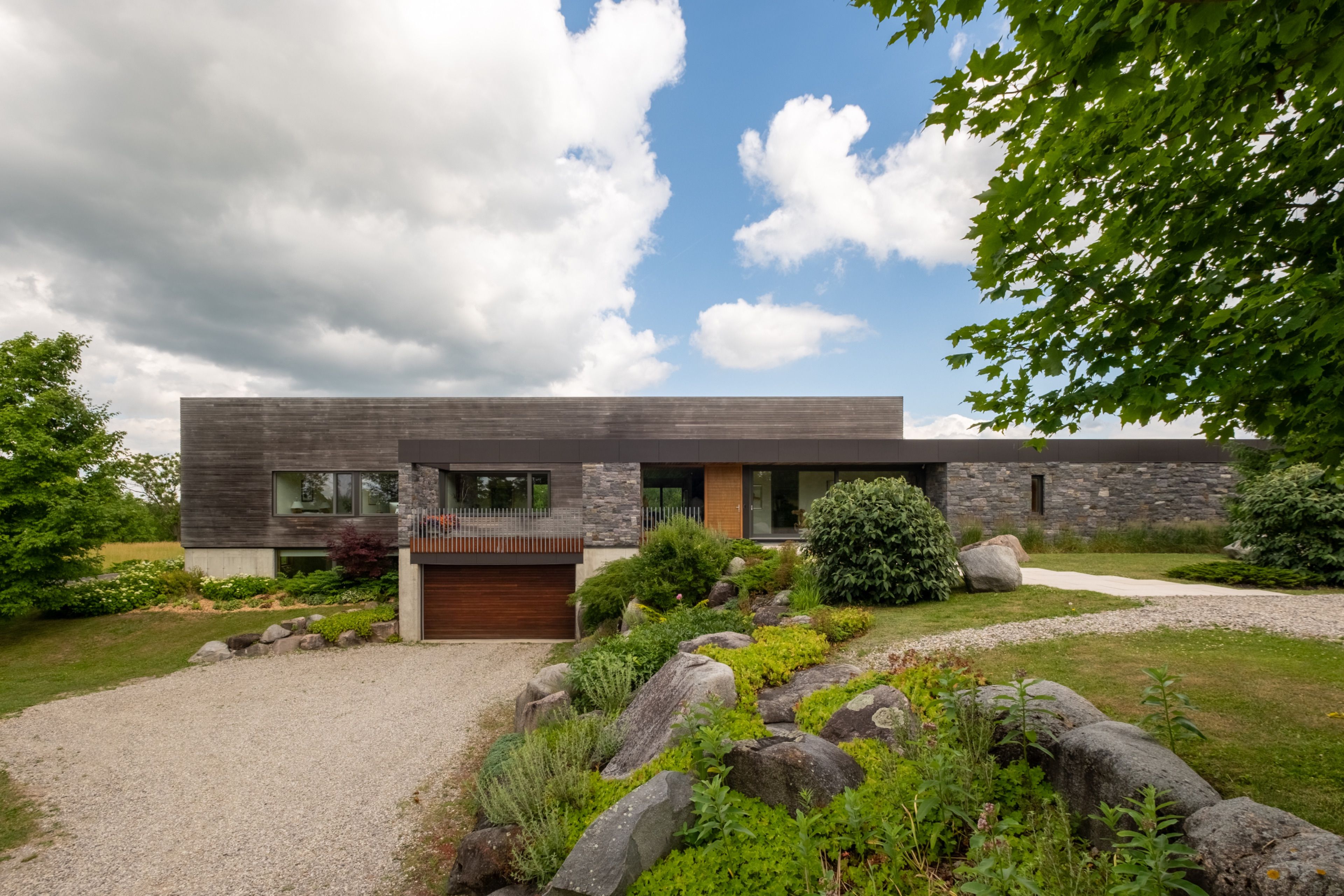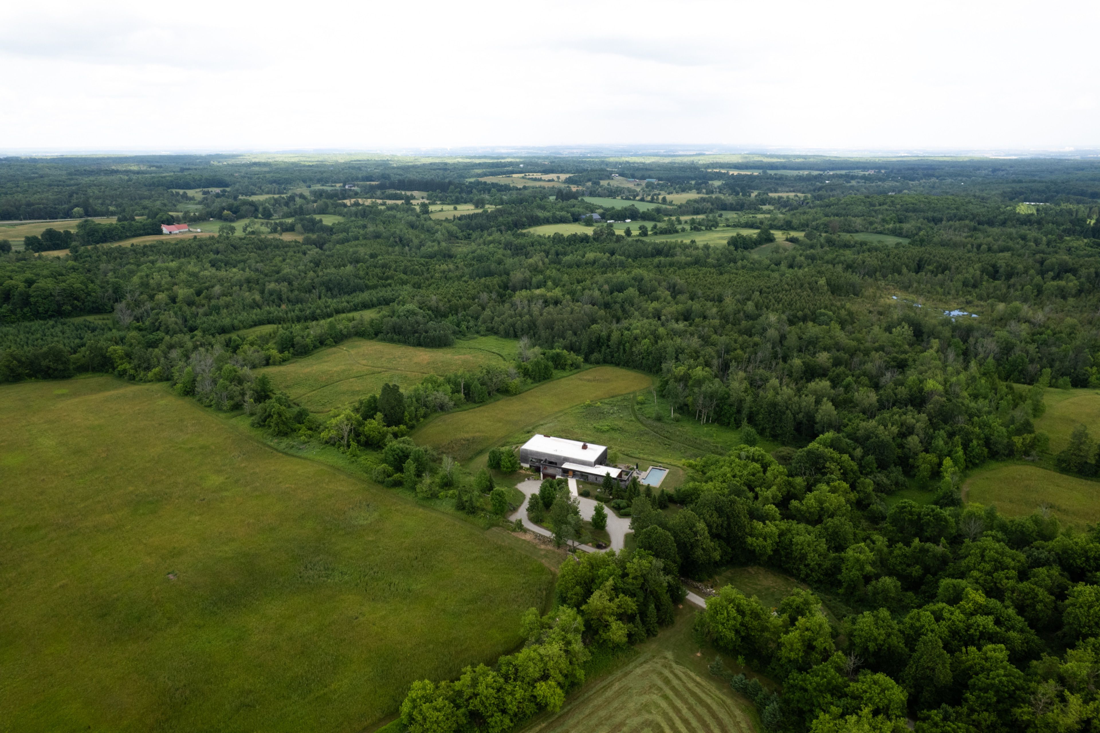 A soulful modern residence designed to sync with the rhythm of the sun, offering incredible vistas from all spaces & making an effortless connection between indoors & out. Nestled on approx. 98 acres in the bucolic countryside of erin, bordering caledon, a long heritage stone wall lined driveway leads to a striking modern masterpiece. Surrounded by organic farmland & woodlands w/ acres of groomed trails, it's a rare find w/ a spectacular 40' pool overlooking the lush landscape & gardens. This remarkable large-footprint family home unfolds w/ a series of dynamic living spaces. 5 bedrooms, 6 bathrooms & over 8500 sq ft including the basement, it is defined by natural materials like heated concrete floors, douglas fir cladded ceilings & stone masonry. A fabulous balance of raw materiality w/ beauty & comfort. The kitchen & dining room are surrounded by glass, connecting the home to the properties incredible sunrises & sunsets. A handsome two-way focal fireplace is in the open-plan living area. The primary wing is a retreat w/ a spa-like ensuite, walk-in closet & a walkout to a garden terrace & the pool. On the other side of the home, several gorgeous sized bedrooms each w/ expansive windows & their own special view. The lower level is a world of its own w/ a separate entrance, home gym, additional family room, & workshop. A thoughtfully designed mudroom w/ custom lockers provides a discreet & organized hub for all gear, from equestrian to ski equipment. Two full baths, including a second primary suite w/ ensuite, create a sanctuary for family or guests. Advanced details include retractable doepfner windows w/ low emissivity glazing, 6 zone radiant floor heating and central air, geothermal pumps for heating & cooling, pu-foamed wall cavities, commercial grade reflective membrane roof, & a propane powered generator w/ automatic switch. Magnificent in every way, a sanctuary of impeccable design, a place where artistry & comfort come together that truly inspires.