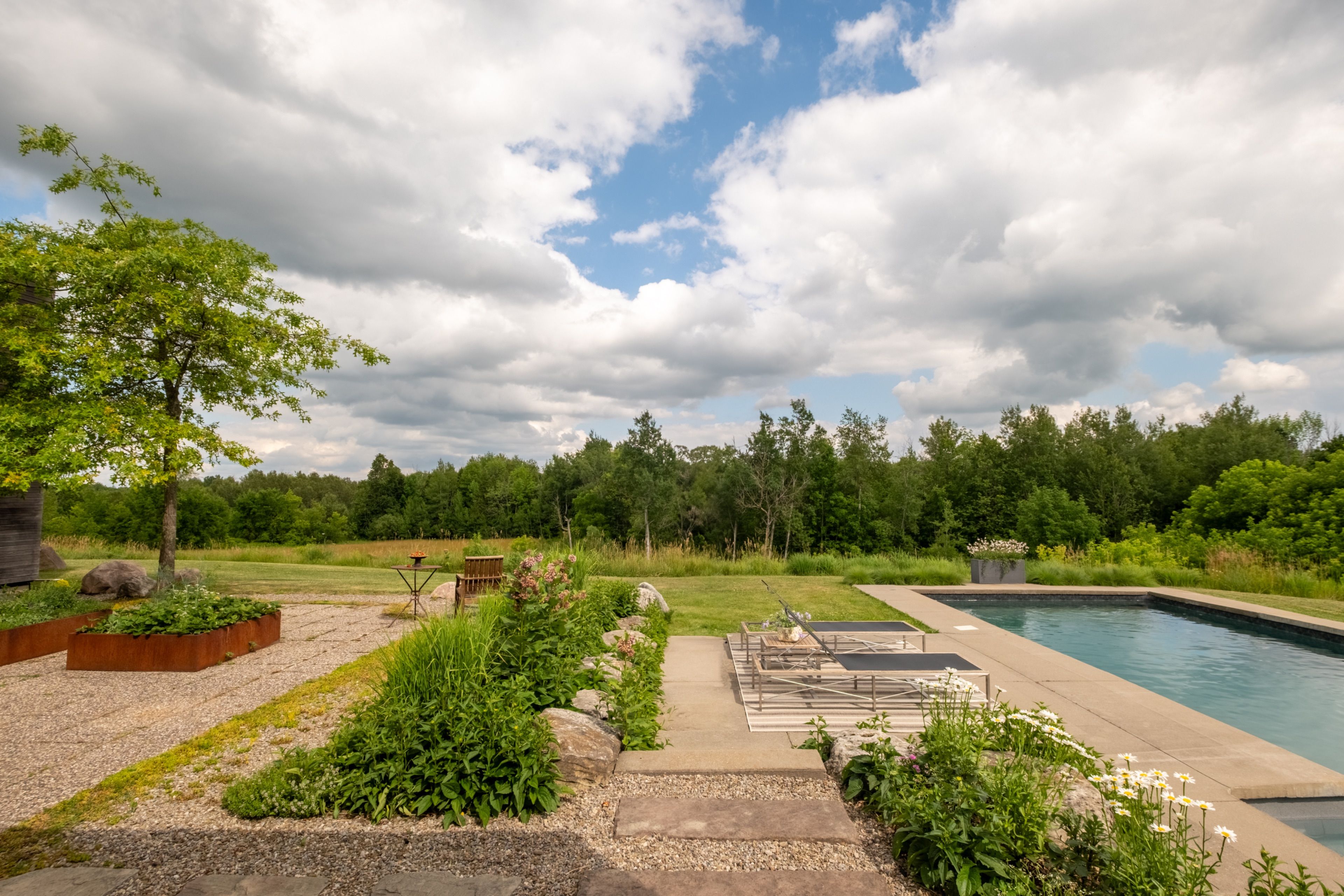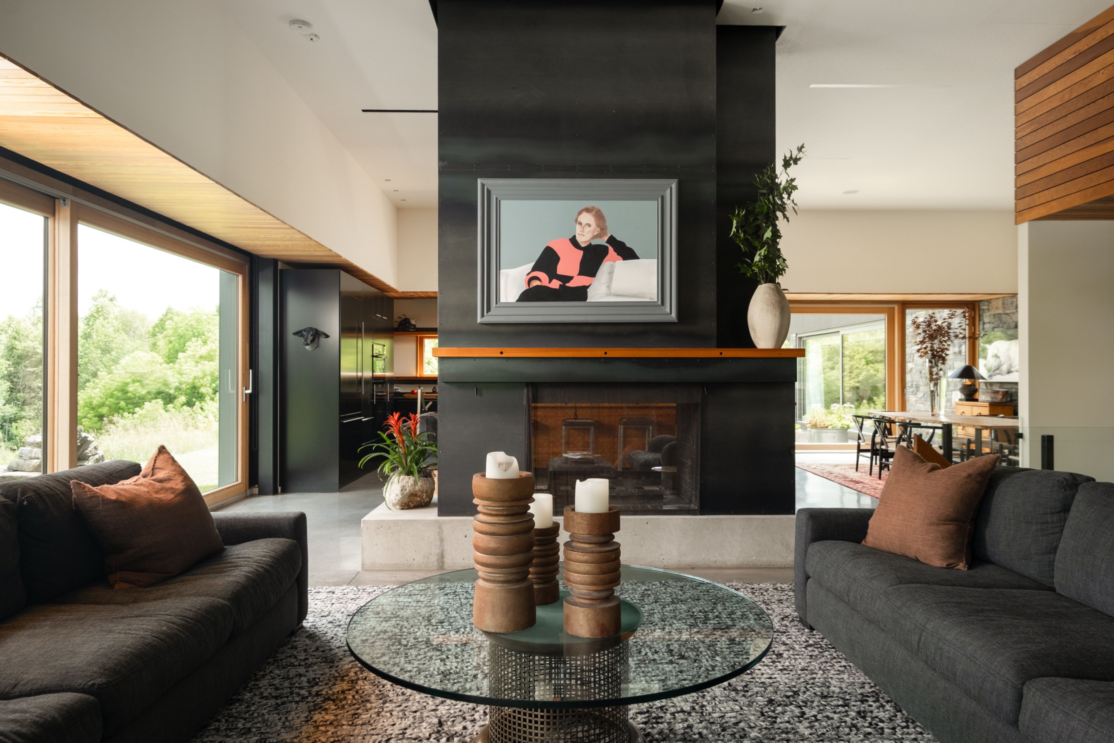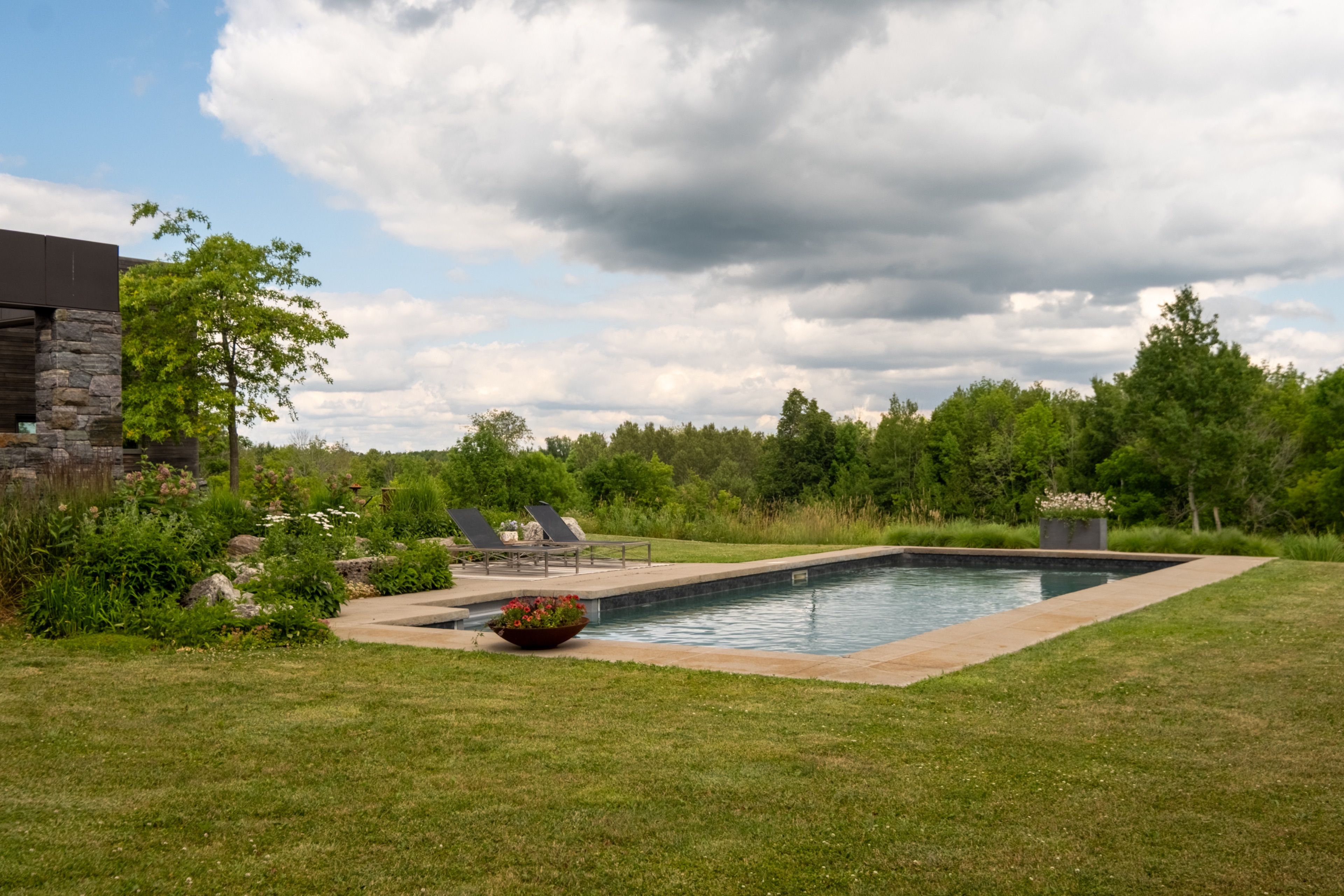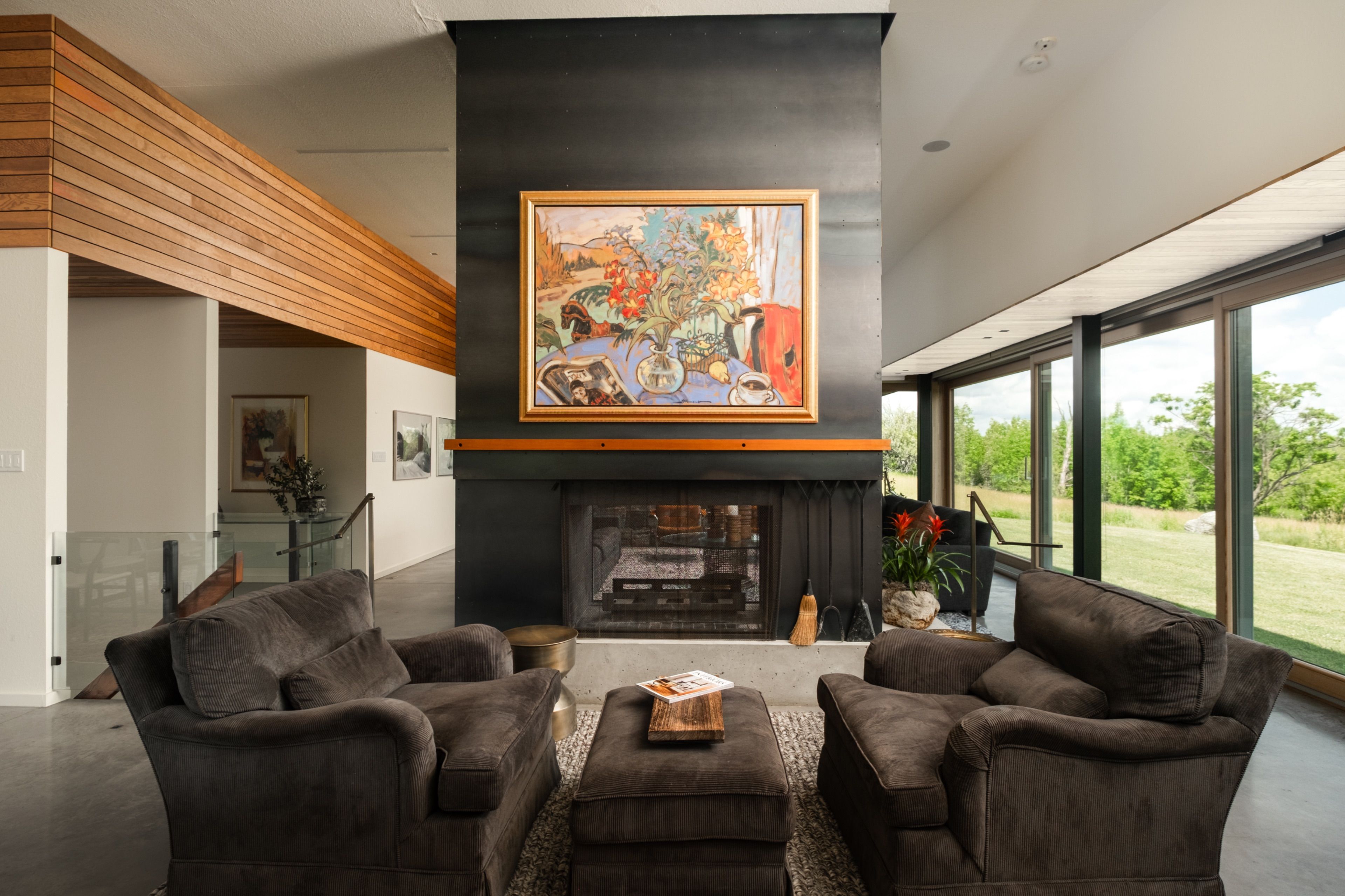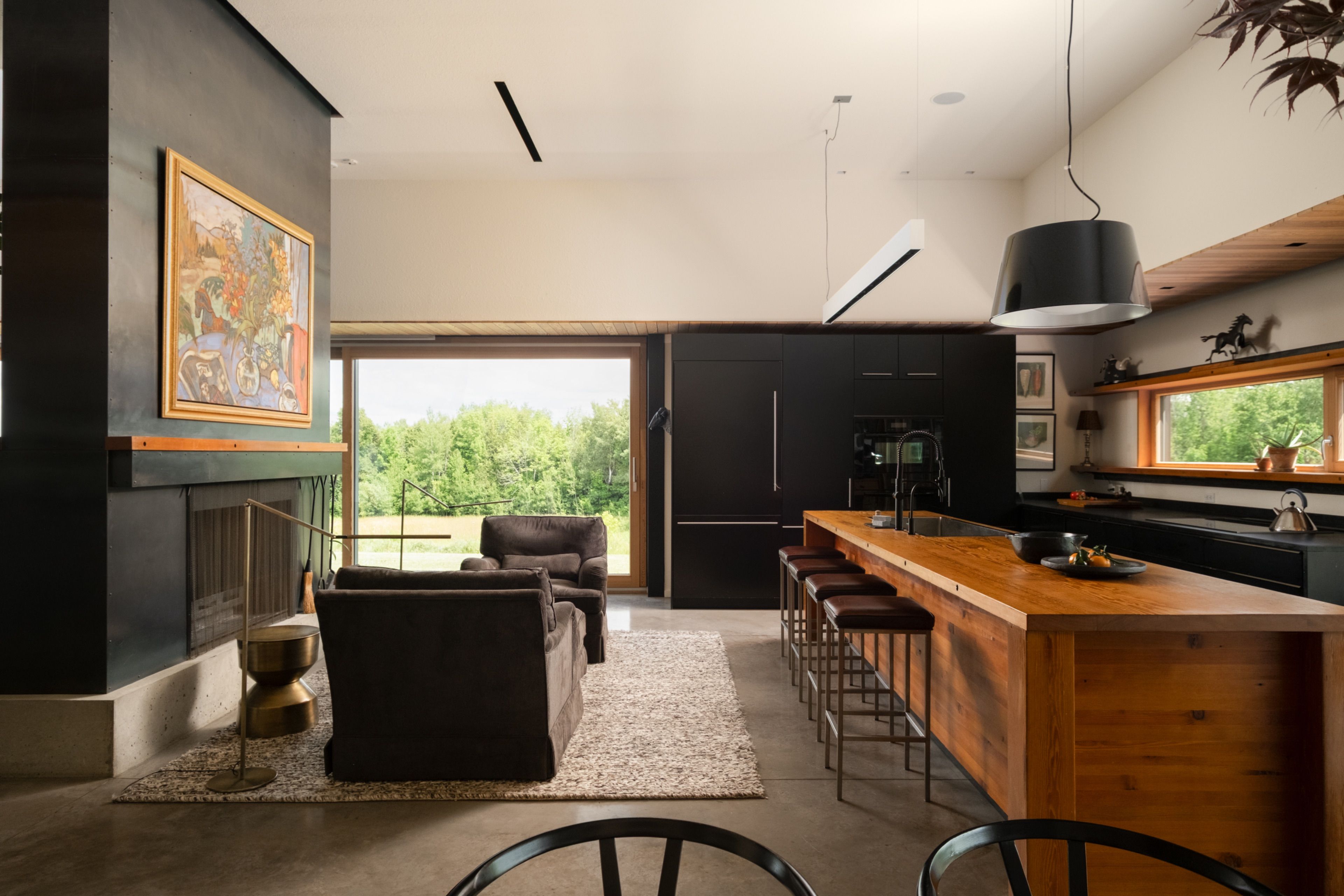 A soulful modern residence designed to sync with the rhythm of the sun, offering incredible vistas from all spaces & making an effortless connection between indoors & out. Nestled on approx. 98 acres in the bucolic countryside of erin, bordering caledon, a long heritage stone wall lined driveway leads to a striking modern masterpiece. Surrounded by organic farmland & woodlands w/ acres of groomed trails, it's a rare find w/ a spectacular 40' pool overlooking the lush landscape & gardens. This remarkable large-footprint family home unfolds w/ a series of dynamic living spaces. 5 bedrooms, 6 bathrooms & over 8500 sq ft including the basement, it is defined by natural materials like heated concrete floors, douglas fir cladded ceilings & stone masonry. A fabulous balance of raw materiality w/ beauty & comfort. The kitchen & dining room are surrounded by glass, connecting the home to the properties incredible sunrises & sunsets. A handsome two-way focal fireplace is in the open-plan living area. The primary wing is a retreat w/ a spa-like ensuite, walk-in closet & a walkout to a garden terrace & the pool. On the other side of the home, several gorgeous sized bedrooms each w/ expansive windows & their own special view. The lower level is a world of its own w/ a separate entrance, home gym, additional family room, & workshop. A thoughtfully designed mudroom w/ custom lockers provides a discreet & organized hub for all gear, from equestrian to ski equipment. Two full baths, including a second primary suite w/ ensuite, create a sanctuary for family or guests. Advanced details include retractable doepfner windows w/ low emissivity glazing, 6 zone radiant floor heating and central air, geothermal pumps for heating & cooling, pu-foamed wall cavities, commercial grade reflective membrane roof, & a propane powered generator w/ automatic switch. Magnificent in every way, a sanctuary of impeccable design, a place where artistry & comfort come together that truly inspires.