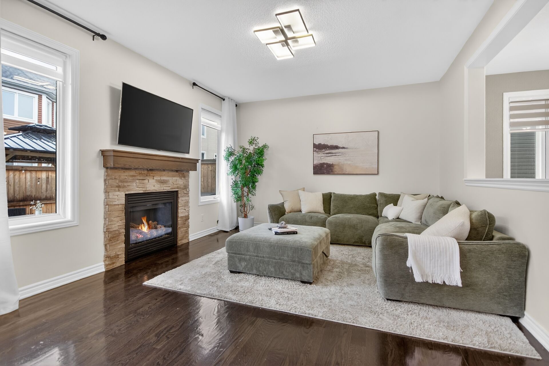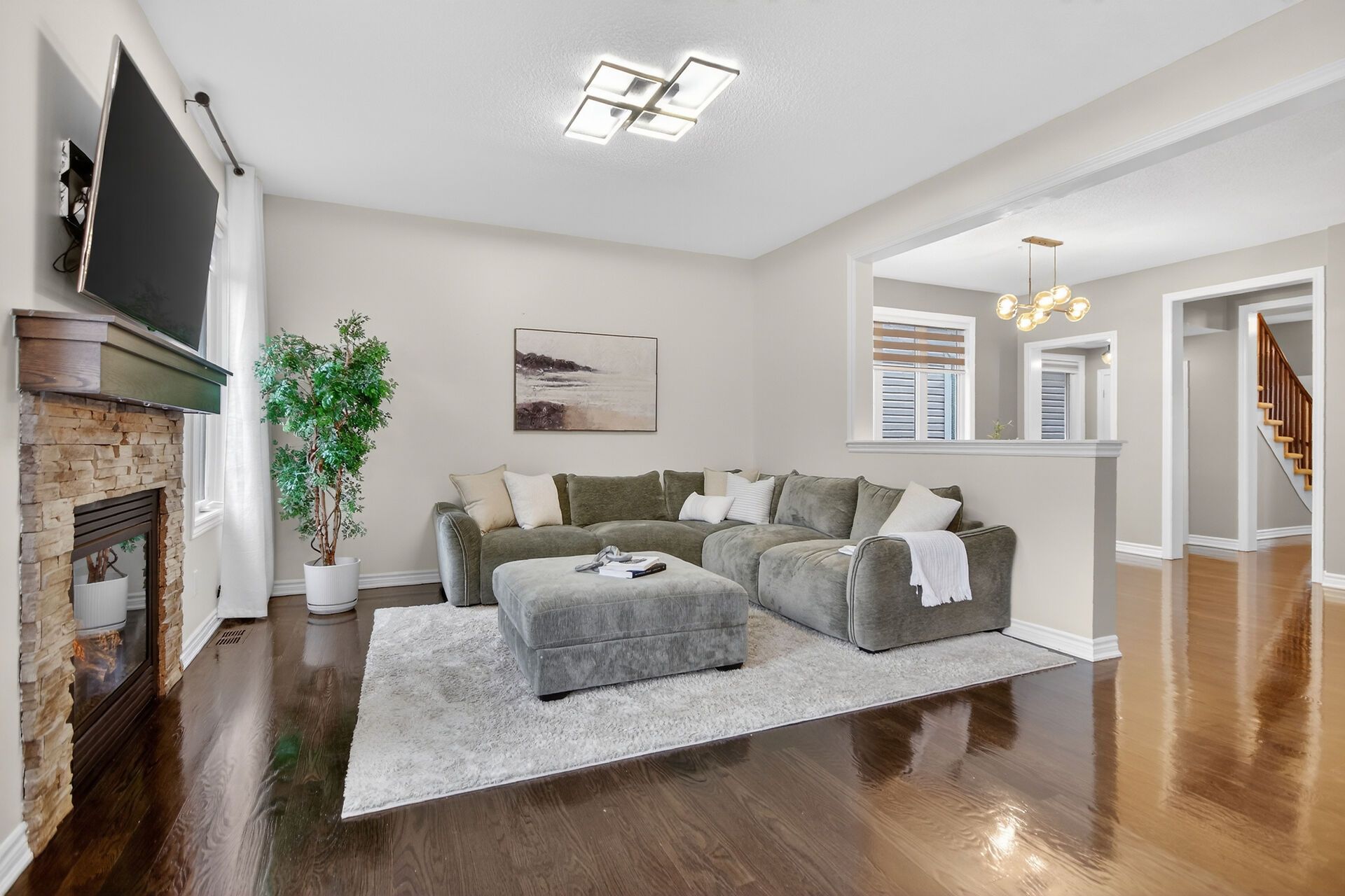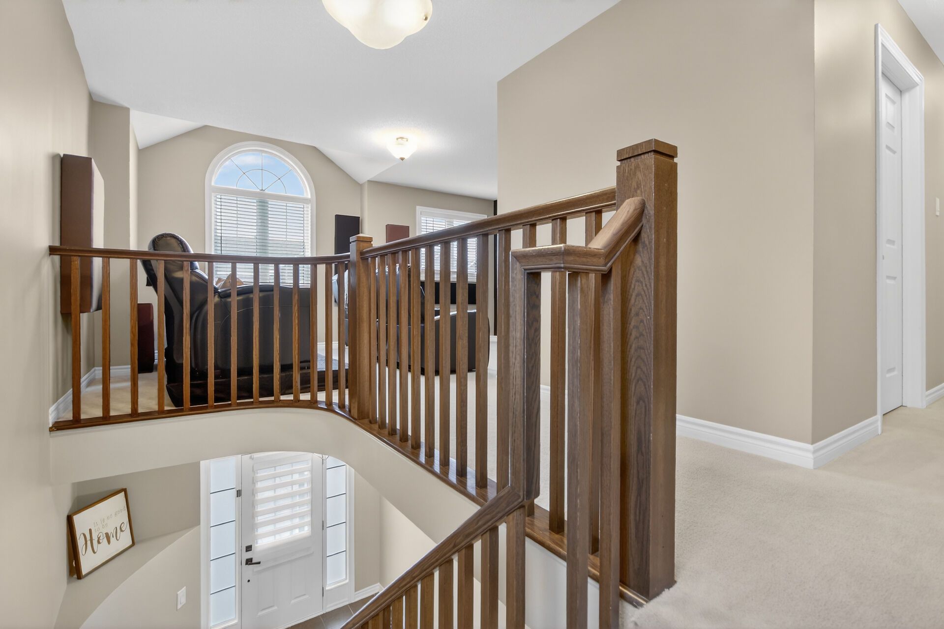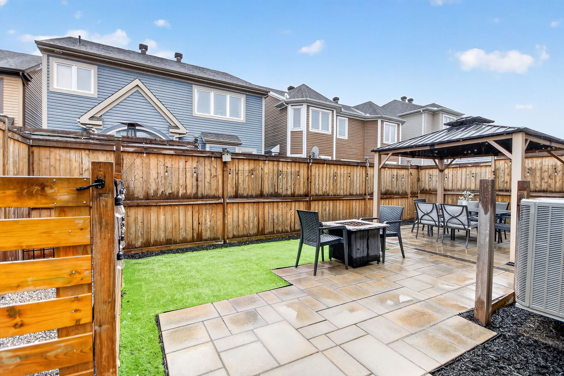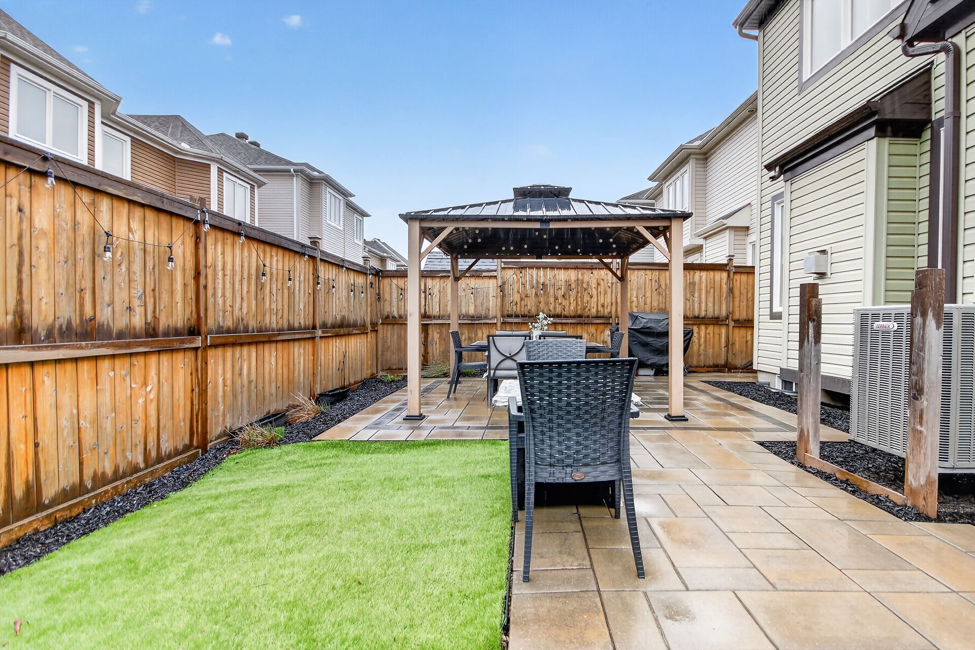 Welcome to this stunning single family home, built in 2013 and ideally located in a highly desirable family-friendly neighborhood. Thoughtfully designed with both style and functionality in mind, this single family home offers spacious living and modern finishes throughout. The main floor features gleaming hardwood floors and impressive 9-foot ceilings, creating a bright and inviting atmosphere. Enjoy a versatile main floor den perfect for a home office alongside a formal dining room ideal for hosting family gatherings and special occasions. The spacious kitchen is the heart of the home, complete with ample floor to ceiling cabinetry, separate island with breakfast bar, quartz countertop, stainless steel appliances and bench window seating with a beautiful view overlooking the professionally landscaped backyard. Step outside to the outdoor retreat featuring an interlock patio, charming gazebo, and a dedicated dog run, perfect for relaxing or entertaining. A convenient 2 pce powder room, and inside access to double car garage complete the main level. Second level, you'll find four generously sized bedrooms plus a versatile loft space with cathedral ceilings currently used as a home theatre. Second level also offers a well-appointed 4-piece family bathroom and the convenience of second-floor laundry. Primary suite is a true retreat, featuring a walk-in closet and a private 5-piece ensuite with separate shower, soaker tub and double sinks. The spacious, unspoiled lower level offers endless potential, ready to be customized to suit your needs whether it be a recreation room, gym, or additional living space. This exceptional home blends comfort, style, and practicality. Book your showing today!