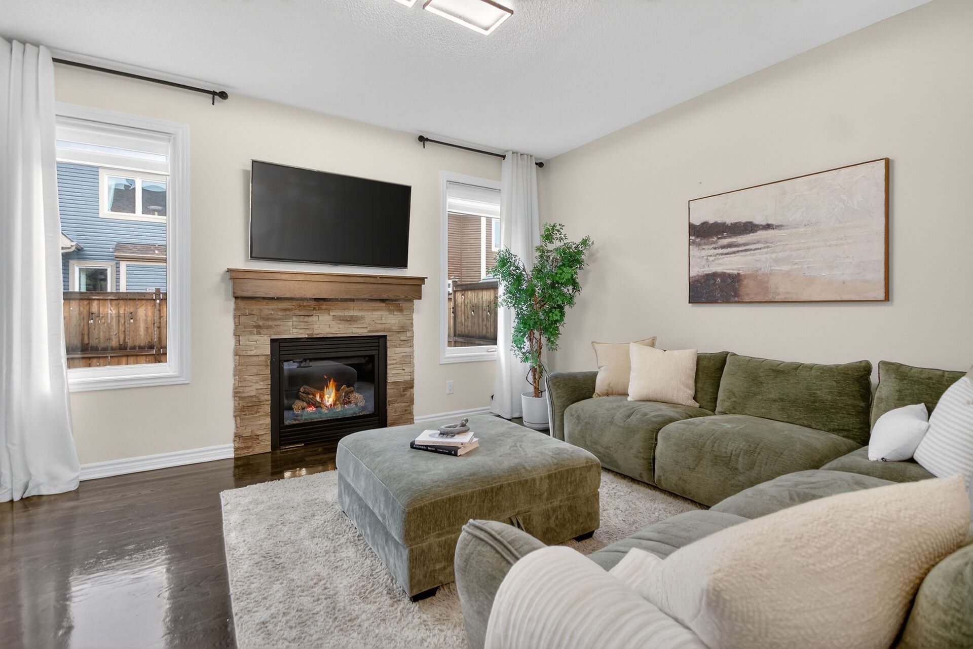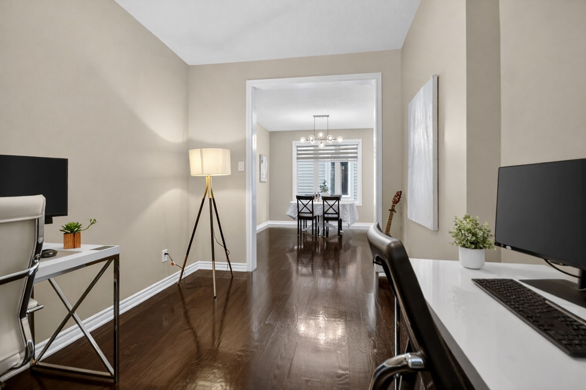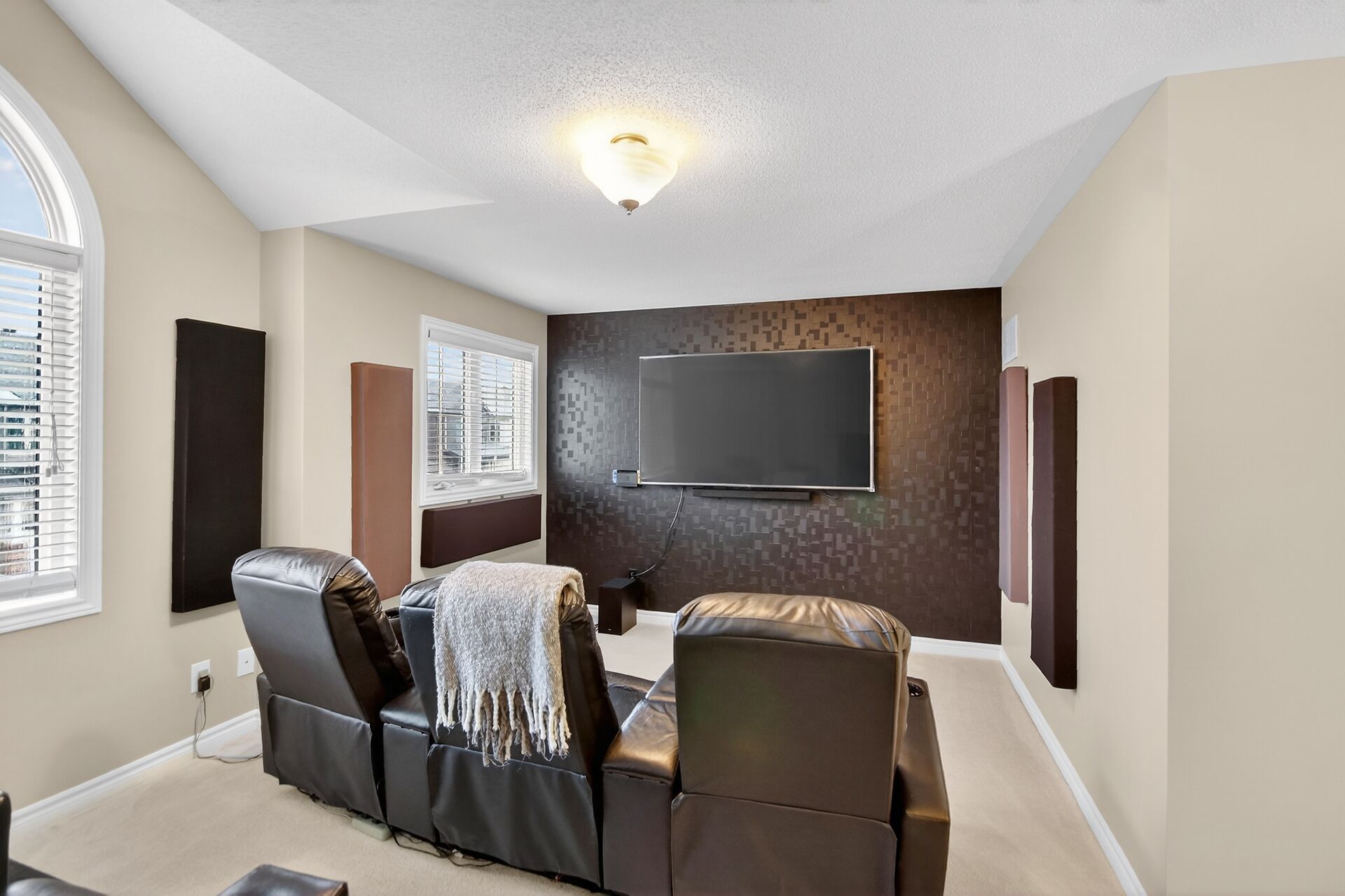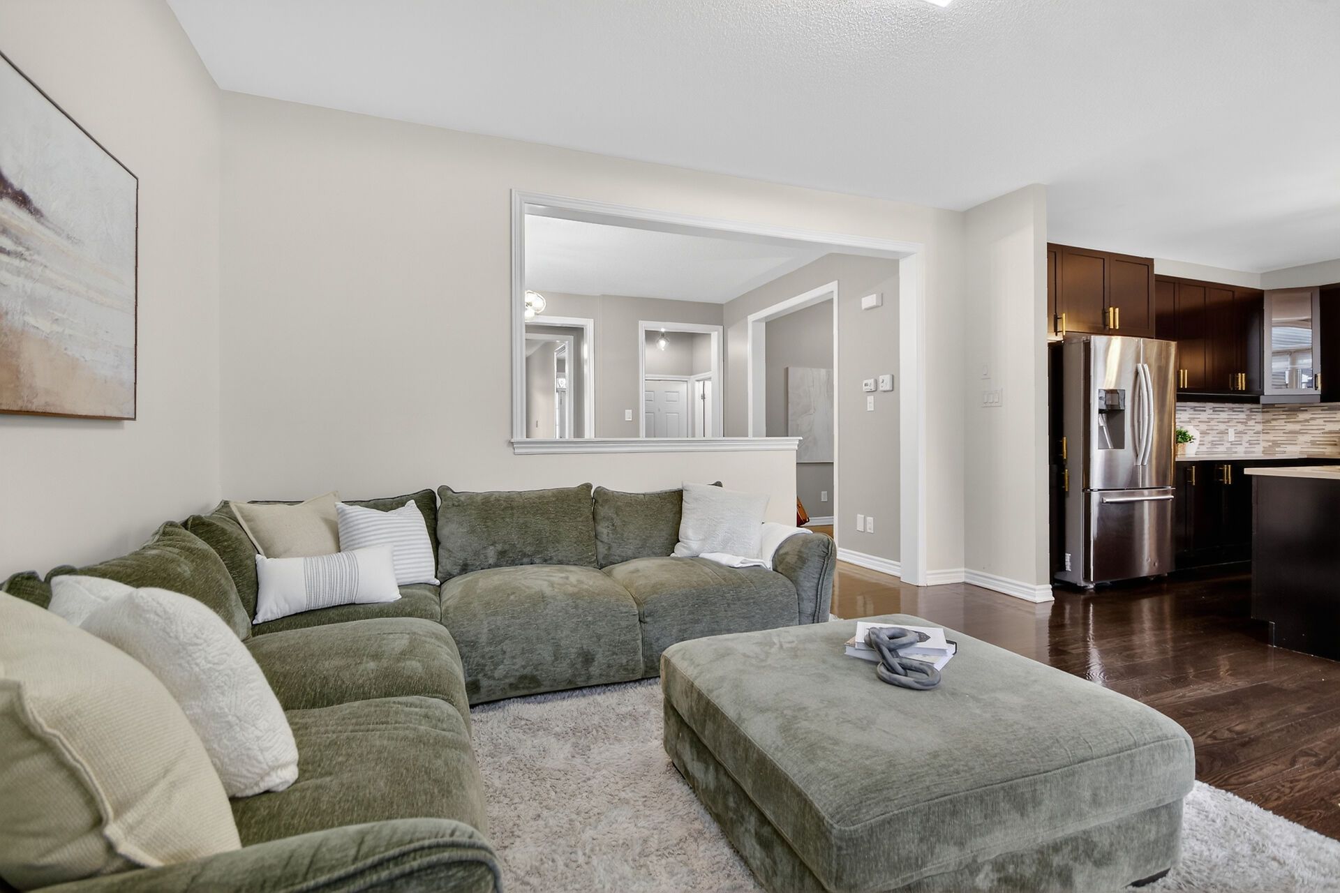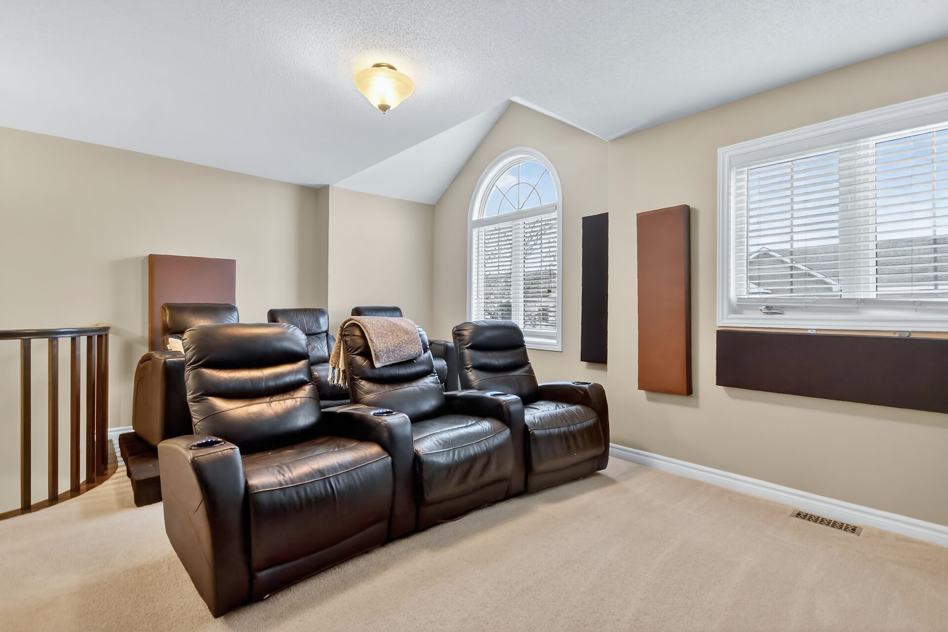 Welcome to this stunning single family home, built in 2013 and ideally located in a highly desirable family-friendly neighborhood. Thoughtfully designed with both style and functionality in mind, this single family home offers spacious living and modern finishes throughout. The main floor features gleaming hardwood floors and impressive 9-foot ceilings, creating a bright and inviting atmosphere. Enjoy a versatile main floor den perfect for a home office alongside a formal dining room ideal for hosting family gatherings and special occasions. The spacious kitchen is the heart of the home, complete with ample floor to ceiling cabinetry, separate island with breakfast bar, quartz countertop, stainless steel appliances and bench window seating with a beautiful view overlooking the professionally landscaped backyard. Step outside to the outdoor retreat featuring an interlock patio, charming gazebo, and a dedicated dog run, perfect for relaxing or entertaining. A convenient 2 pce powder room, and inside access to double car garage complete the main level. Second level, you'll find four generously sized bedrooms plus a versatile loft space with cathedral ceilings currently used as a home theatre. Second level also offers a well-appointed 4-piece family bathroom and the convenience of second-floor laundry. Primary suite is a true retreat, featuring a walk-in closet and a private 5-piece ensuite with separate shower, soaker tub and double sinks. The spacious, unspoiled lower level offers endless potential, ready to be customized to suit your needs whether it be a recreation room, gym, or additional living space. This exceptional home blends comfort, style, and practicality. Book your showing today!