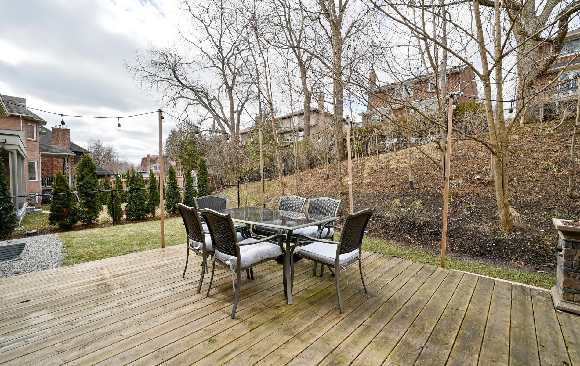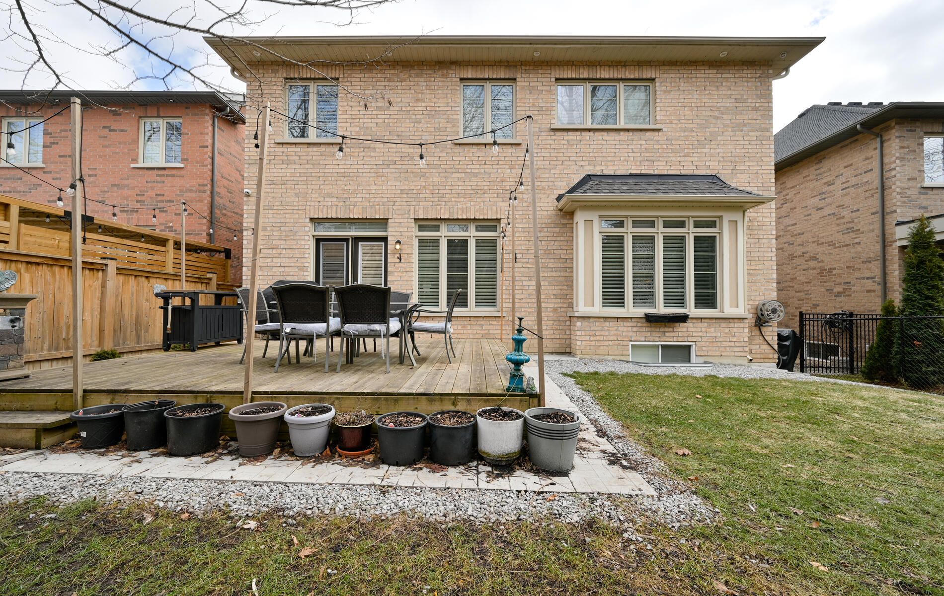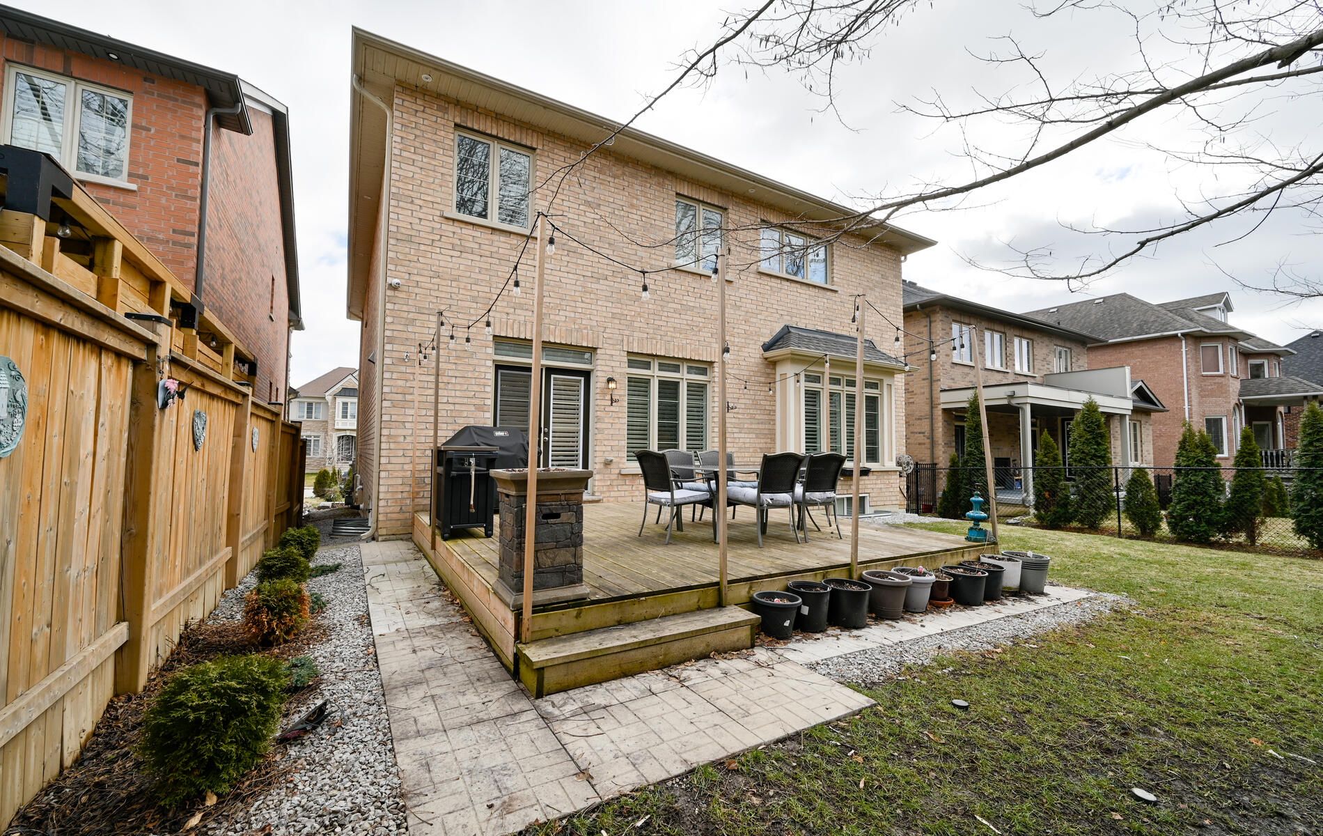 • Private backyard with a deck and mature landscaping for relaxation.