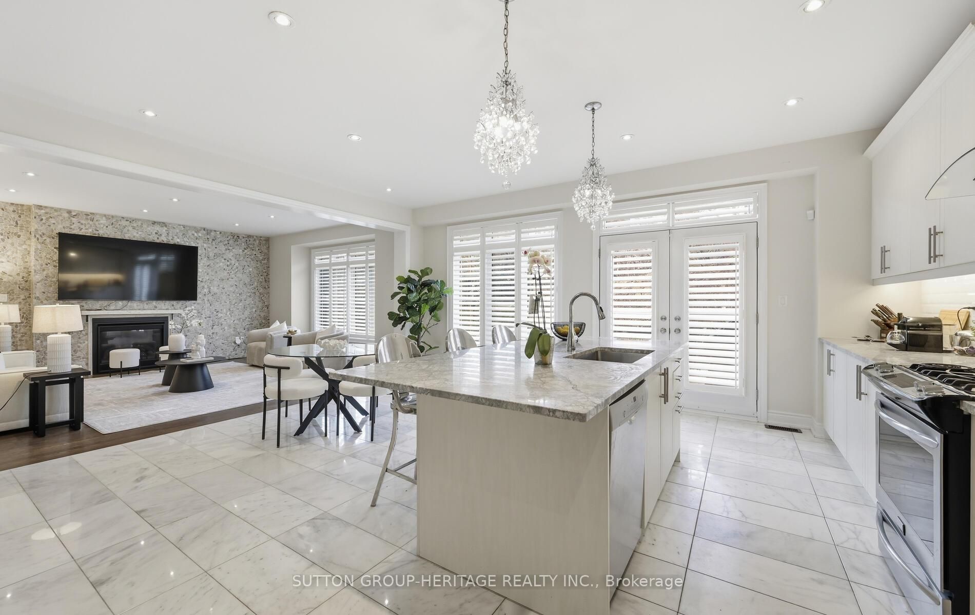 • Inviting family room with gas fireplace and large windows.