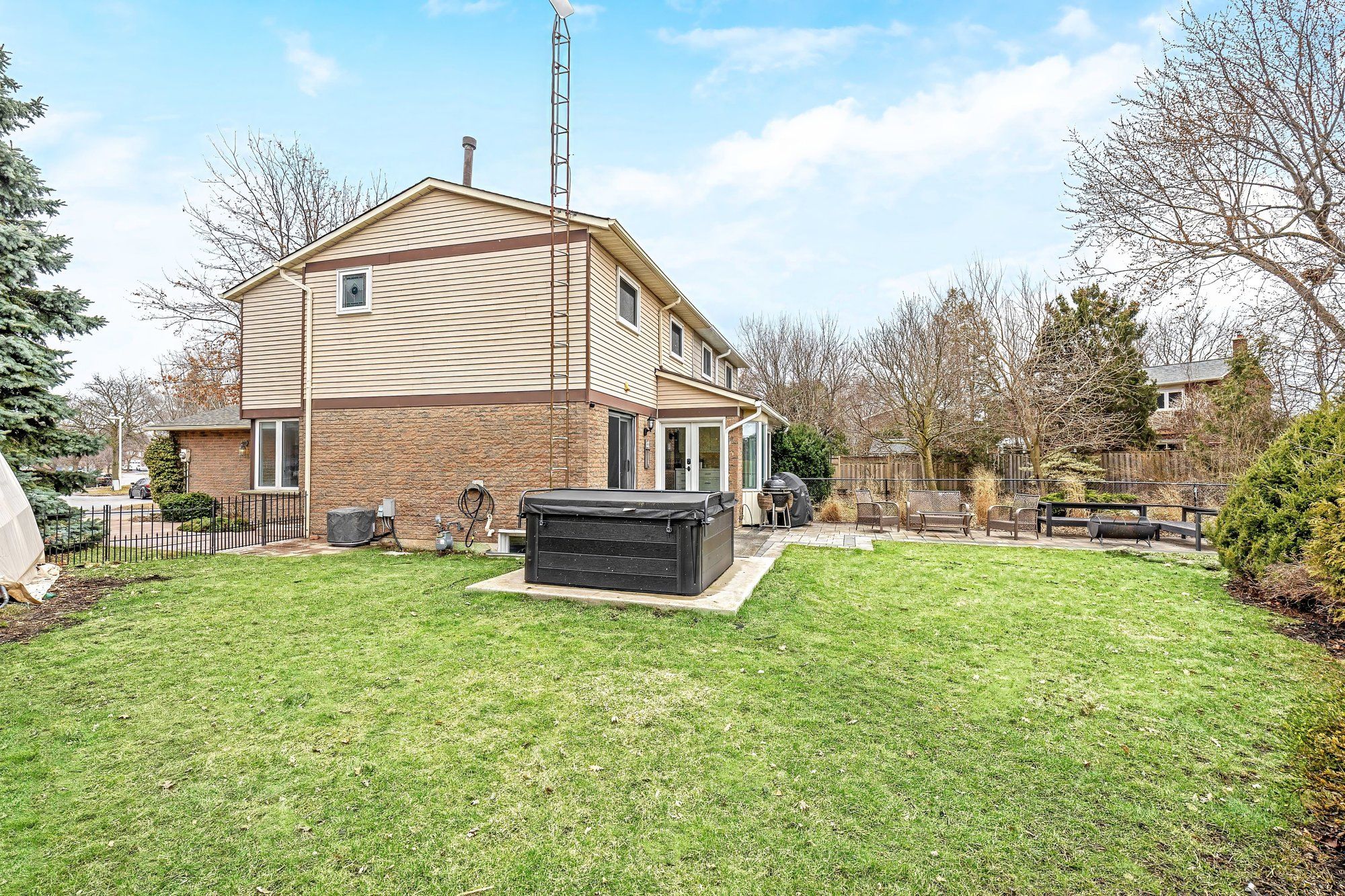 Located in milton's highly sought after 'timberlea' neighbourhood, this recently updated home sits on a huge 124ft deep pie-shaped lot that that backs directly onto the beautiful laurier park (large playground, splashpad, sports field, and walking trail). Just an 8 minute walk to sam sherratt elementary school (jk-grade 8), the home's terrific location is just the tip of the iceberg. Renovated throughout, this 3+1 bedroom home is move-in ready! The main level features trendy modern décor, highlighted by the stunning open concept kitchen w/ stainless steel appliances, quartz counters, custom backsplash, & dual walk-out doors to the backyard patio. This level also boasts a bright and airy living room with custom fireplace and an elegant 2-pc bath. Heading upstairs, you will be treated to an updated 4-pc bath & 3 large bedrooms, including a spacious primary bedroom with his & her closets. The recently finished basement offers a large rec room, as well as, a private home office / guest bedroom. The basement is completed with a private laundry room and multiple storage areas. Stepping outside to the backyard, you will enjoy a huge professionally installed stone patio with natural gas bbq hook-up that overlooks the park. The yard also offers a large storage shed and lots of greenspace for kids & pets to run around and play. This lovely home is completed with a single car garage and 2 car driveway, allowing for comfortable 3-car parking at all times. The terrific central location will also allow you to enjoy quick access to all of milton's major amenities, including the milton go-station, milton hospital, milton sports center, highway 401, & a variety of popular parks and shopping plazas! Extra info: new furnace & a/c (2018), new roof (2019), updated windows (2016), backyard patio (installed 2022), & new storage shed on concrete pad (built 2022).