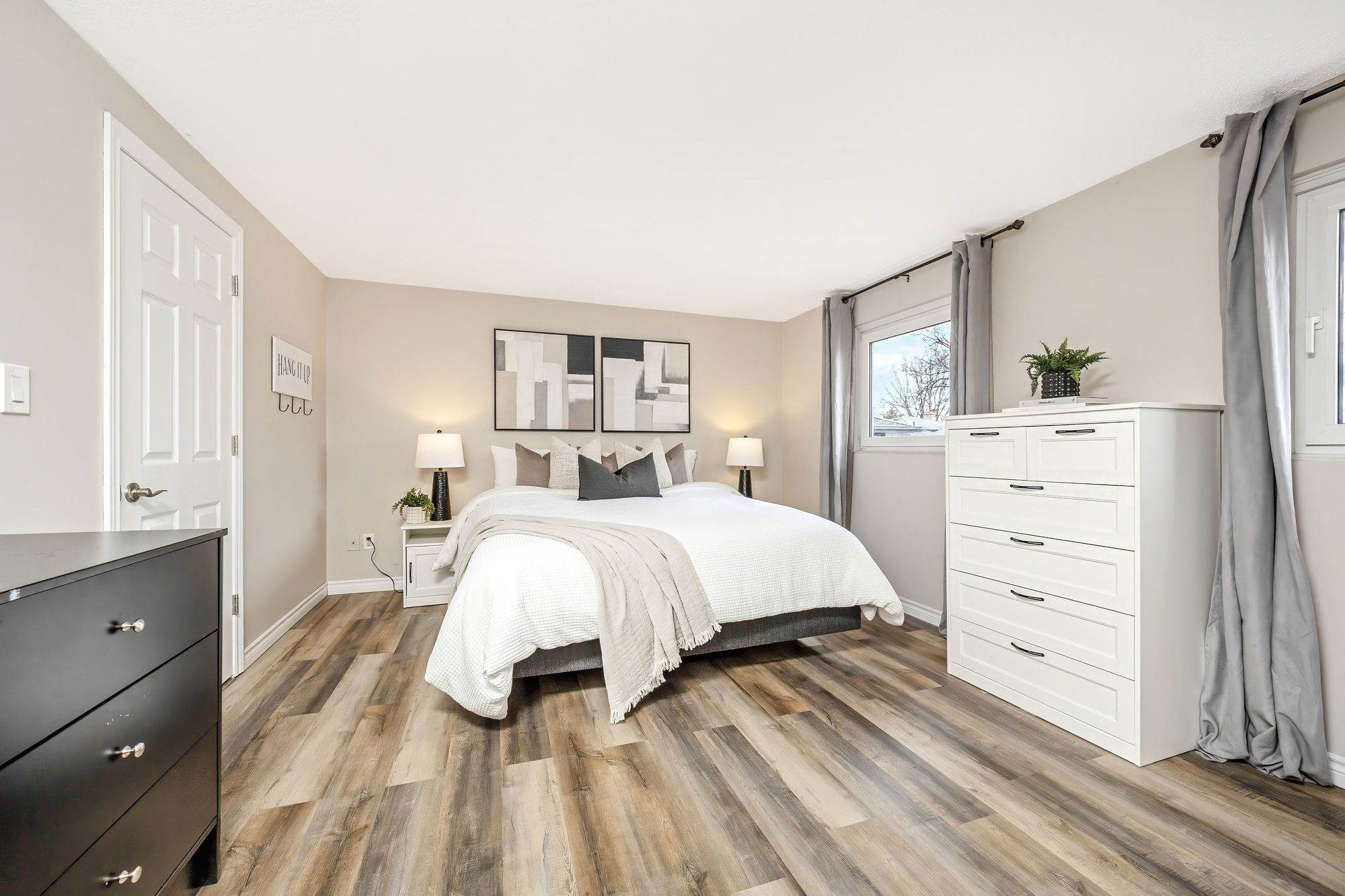 Located in milton's desirable timberlea neighbourhood, this recently updated home sits on a huge 124ft deep pie-shaped lot that that backs directly onto the beautiful laurier park (large playground, splashpad, sports field, and walking trail). Just an 8 minute walk to sam sherratt elementary school (jk-grade 8), this 3+1 bedroom home has been updated throughout and is move-in ready! The main level features trendy modern décor, highlighted by the stunning open concept kitchen w/ stainless steel appliances, quartz counters, custom backsplash, formal dining area, & dual walk-out doors to the backyard patio. This level also boasts a bright and airy living room with pot lights & custom fireplace, as well as, an elegant 2-pc bath. Heading upstairs, you will be treated to an updated 4-pc bath & 3 large bedrooms, including a spacious primary bedroom with his & her closets. The recently finished basement offers a rec room, a private home office / guest bedroom. The basement is completed with a private laundry area and multiple storage rooms. Stepping outside to the large backyard, you will enjoy a huge professionally installed stone patio with natural gas bbq hook-up that overlooks the park. The yard also offers a large storage shed and lots of greenspace for kids & pets to run around and play. This lovely home is completed with a single car garage and 2 car driveway, allowing for comfortable 3-car parking at all times. The terrific central location will also allow you to enjoy quick access to all of milton's major amenities, including the milton go-station, milton hospital, milton sports center, highway 401, & a variety of popular parks and shopping plazas! Extra info: new furnace & a/c (2018), new roof (2019), updated windows (2016), backyard patio (installed 2022), & new storage shed on concrete pad (built 2022).
