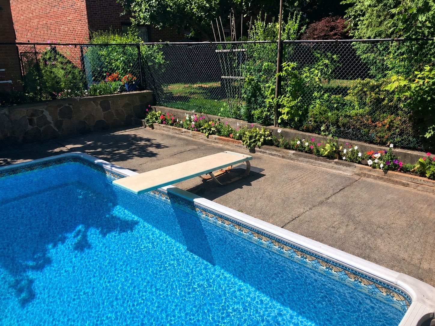 • Beautiful private backyard featuring an in-ground swimming pool for summer fun.