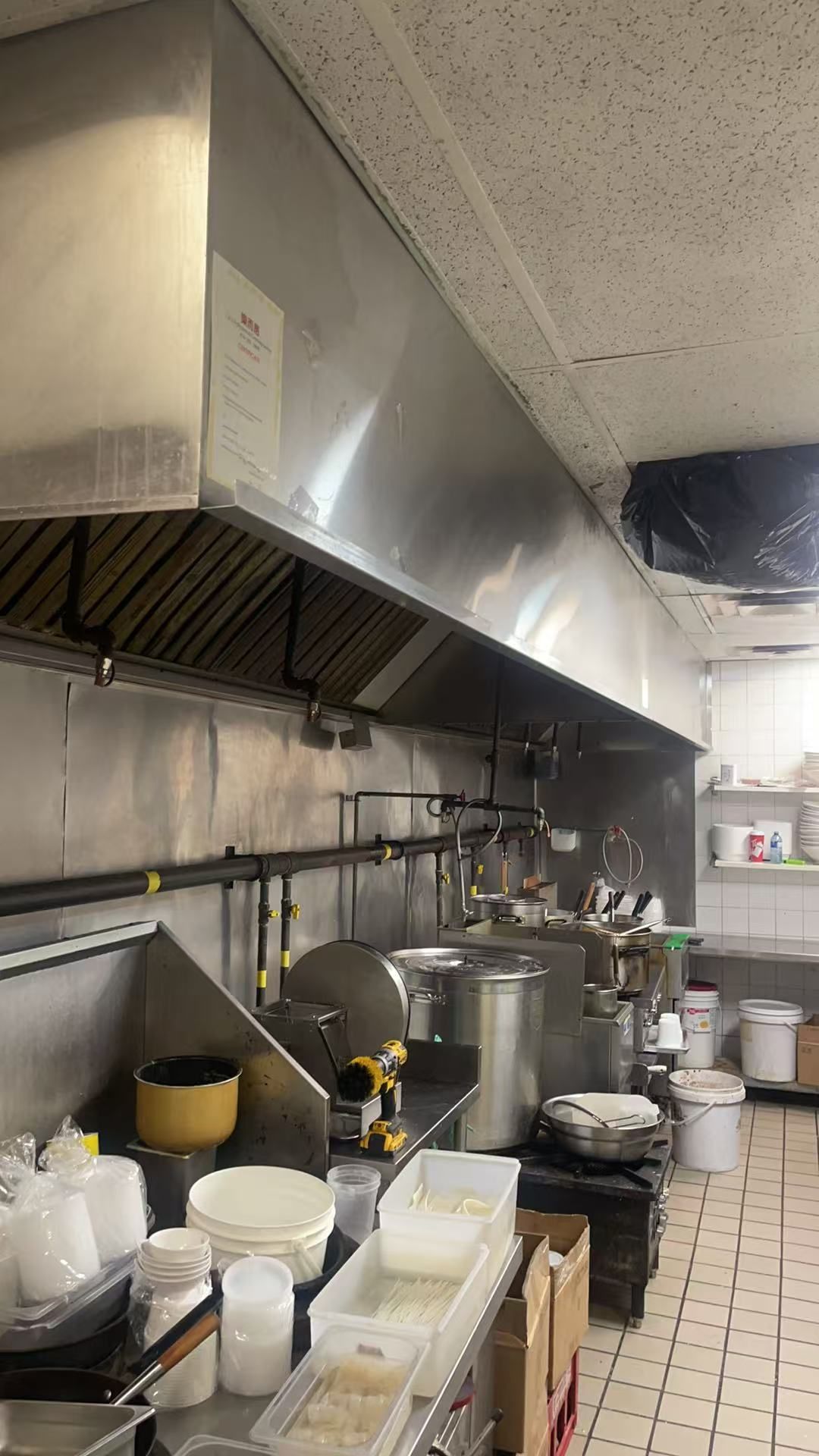 • Fully equipped commercial kitchen with a walk-in cooler.