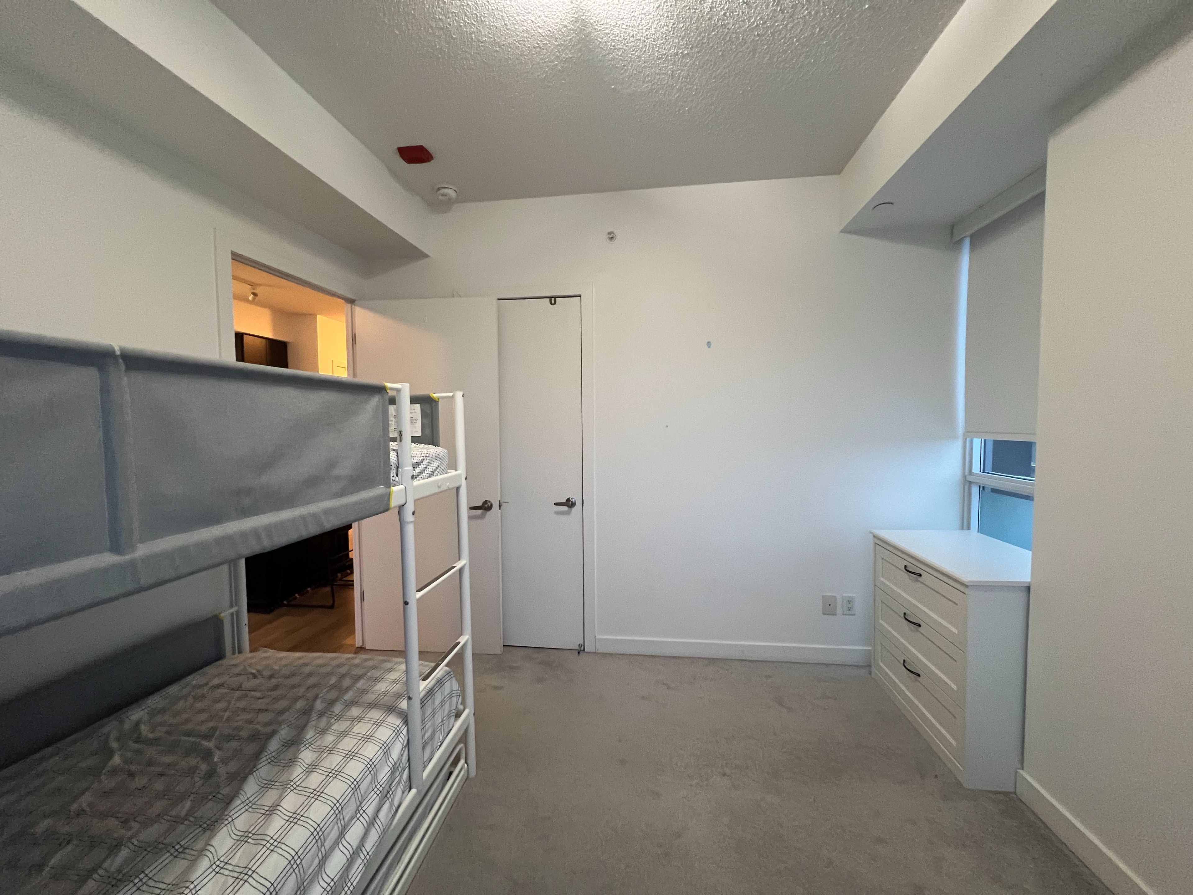 Welcome to this bright and well maintained end-unit condo in the heart of burlington. This beautifully designed residence offers 2 bedrooms and 2 bathrooms, floor-to-ceiling windows, an open-concept layout, and a walk-out to a private balcony showcasing a serene and relaxing view. Residents enjoy an impressive collection of premium amenities, including concierge and security services, sauna, hot and cold plunge pools, a fully equipped fitness centre and a landscaped courtyard. Unbeatable location with shops at your doorstep and convenient access to public transit, highways 407 and qew, restaurants, shopping, parks, and schools. Option to keep the bunk bed, table, and drawer in one bedroom.