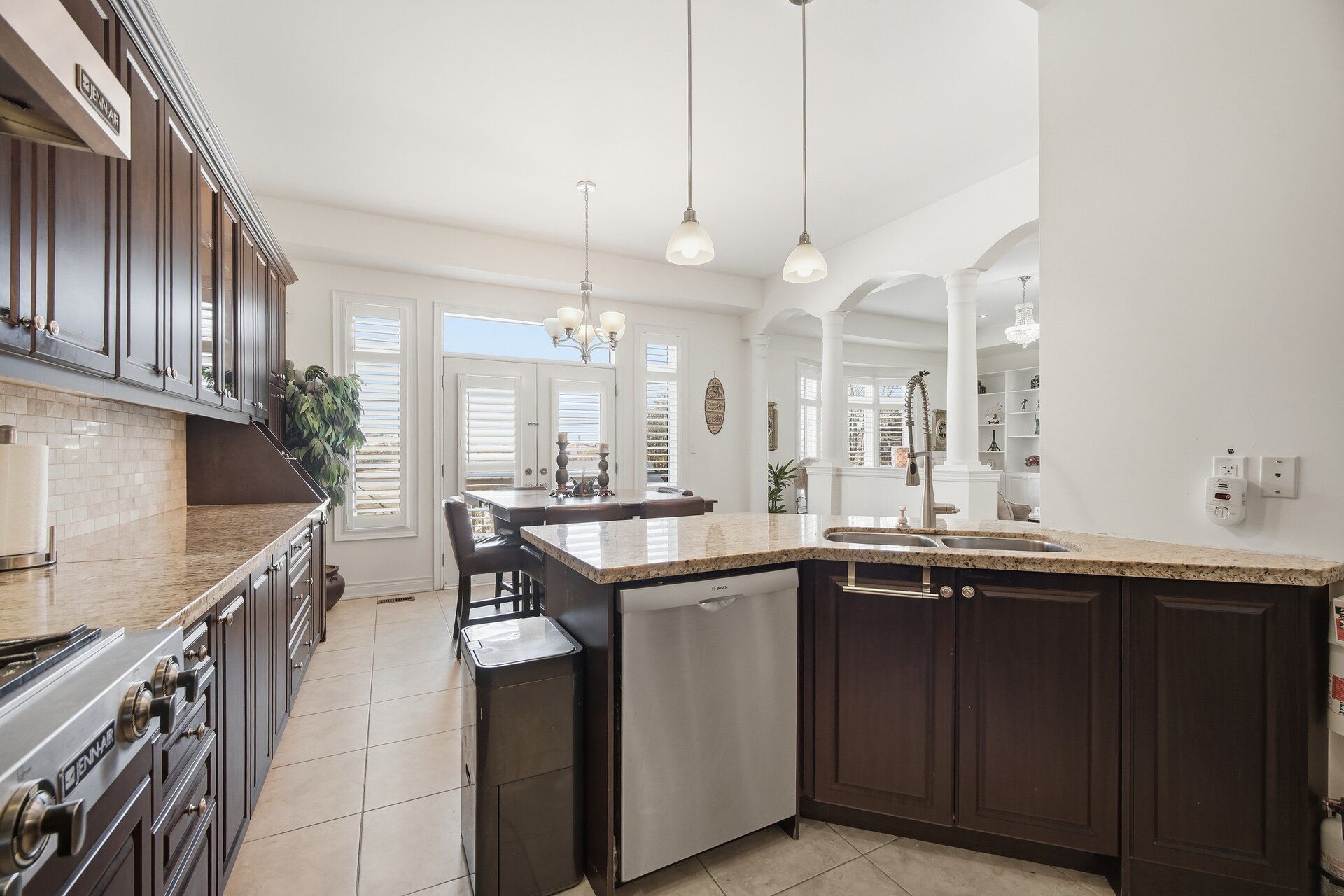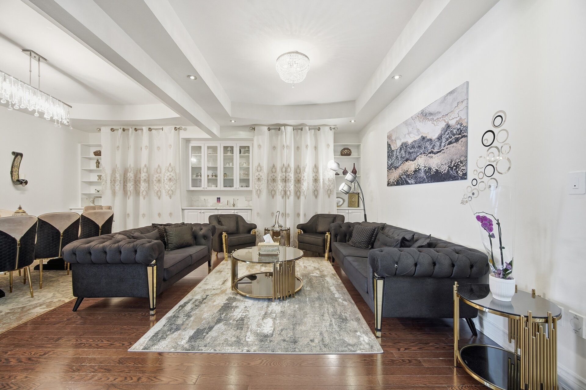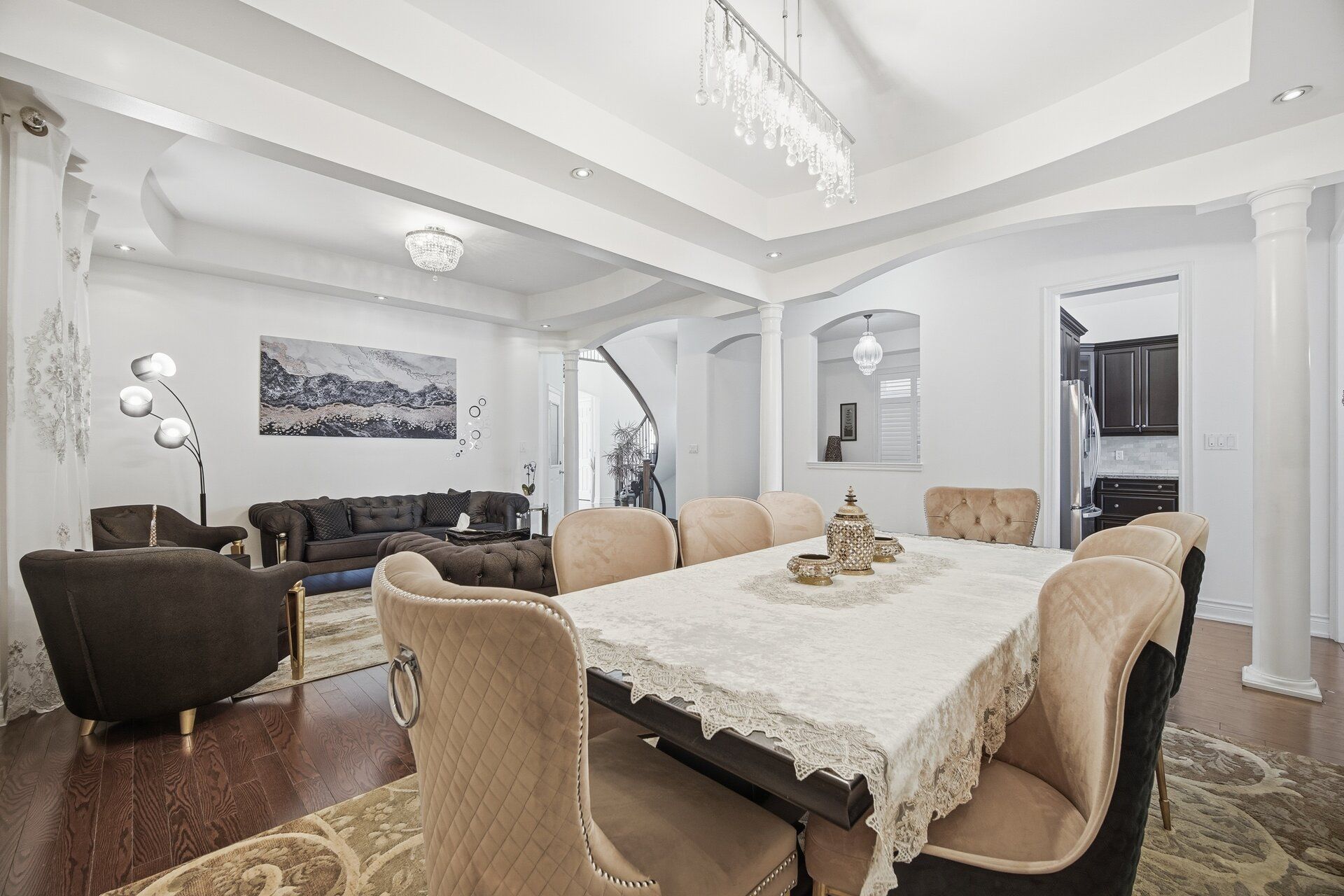 Absolutely stunning executive estate home positioned on the most exclusive and finest street in churchill meadows, quietly nestled on a prestigious cul-de-sac offering unmatched privacy and distinction. This meticulously maintained residence showcases a rare three-car driveway and two-car garage equipped with an ev charger, soaring ten-foot ceilings on the main level, nine-foot ceilings on the second level, and a professionally finished walk-out basement designed for elevated living. The home features four full bathrooms plus a powder room, smooth ceilings throughout, and convenient upper-level laundry with brand new machines. The chef's kitchen is crafted for luxury entertaining, featuring smart samsung appliances under warranty, an elegant breakfast area with walk-out to a two-tier deck, and a gas hookup for seamless indoor-outdoor hosting. The grand primary retreat boasts a fireplace, two expansive walk-in closets, and a spa-inspired five-piece ensuite designed for ultimate relaxation. Secondary bedrooms are equally impressive, offering a jack and jill five-piece bath and a private ensuite suite complete with walk-in closet and three-piece bathroom. California shutters throughout provide timeless elegance and refined privacy. The lower level unveils a newly built apartment-style living space finished to an exceptional standard, highlighted by a massive home theatre, two executive offices, and direct walk-out access to the landscaped yard - ideal for extended family, guests, or sophisticated entertaining. Furniture available for purchase. A rare opportunity to acquire a grand, impeccably appointed luxury residence on the most coveted street in one of mississauga's most sought-after communities.