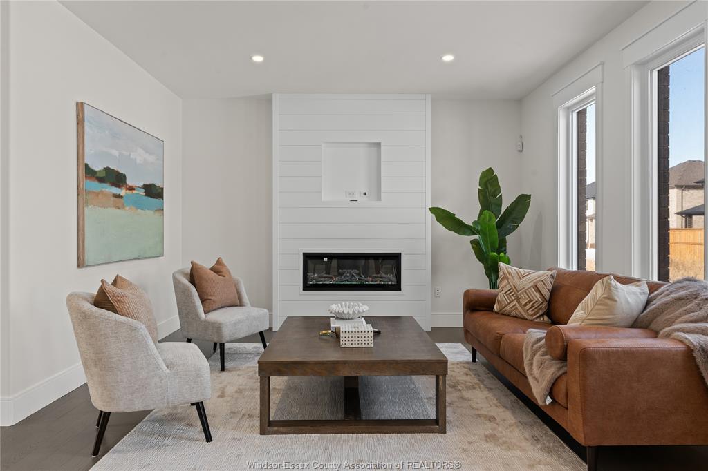 Built by hd development group, proudly named wehba 2025 builder of the year, this to-be-built home in the highly anticipated oldcastle heights development offers the perfect blend of modern design, quality craftsmanship, and family-friendly function. This contemporary 2-storey features an open-concept layout with upscale finishes throughout. The main floor showcases 9-foot ceilings, a beautifully designed kitchen with granite or quartz countertops, centre island, and walk-in pantry, flowing seamlessly into the dining area and family room with an elegant electric fireplace. A covered rear porch extends the living space outdoors, while main floor laundry and a grade entrance to the basement add everyday convenience and future potential. Upstairs offers 4 spacious bedrooms, including a luxurious primary suite with walk-in closet and spa-inspired ensuite featuring a soaker tub, double sinks, and glass-enclosed tile shower. Additional highlights include engineered hardwood flooring, tile in the foyer and kitchen, a striking contemporary exterior, covered front porch, and a full 2-car garage. Ideally located near excellent schools, shopping, and major highways, this home is an outstanding opportunity to customize your dream home in one of the area’s most exciting new developments. Photos are from a previously completed model and are for illustration purposes only.