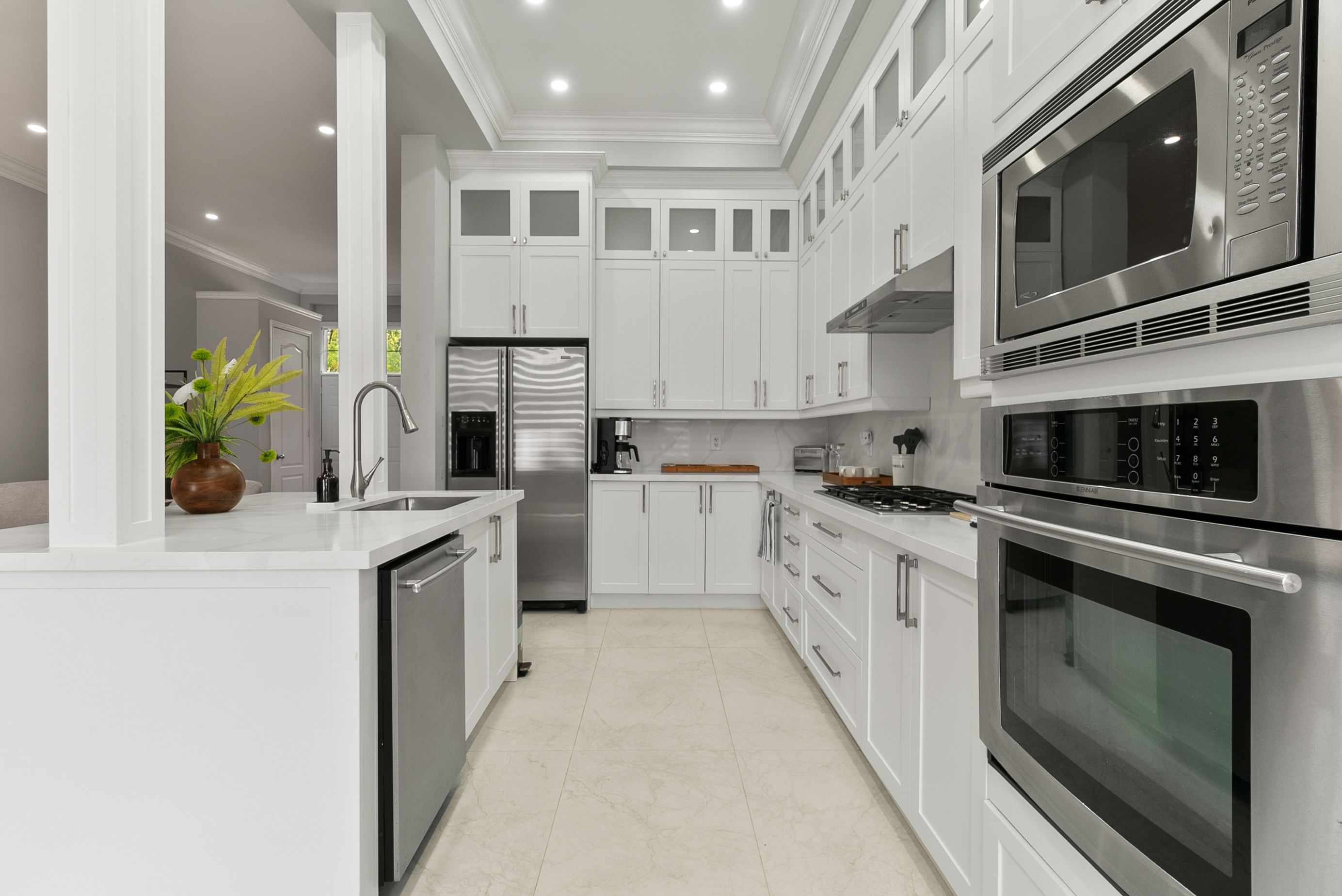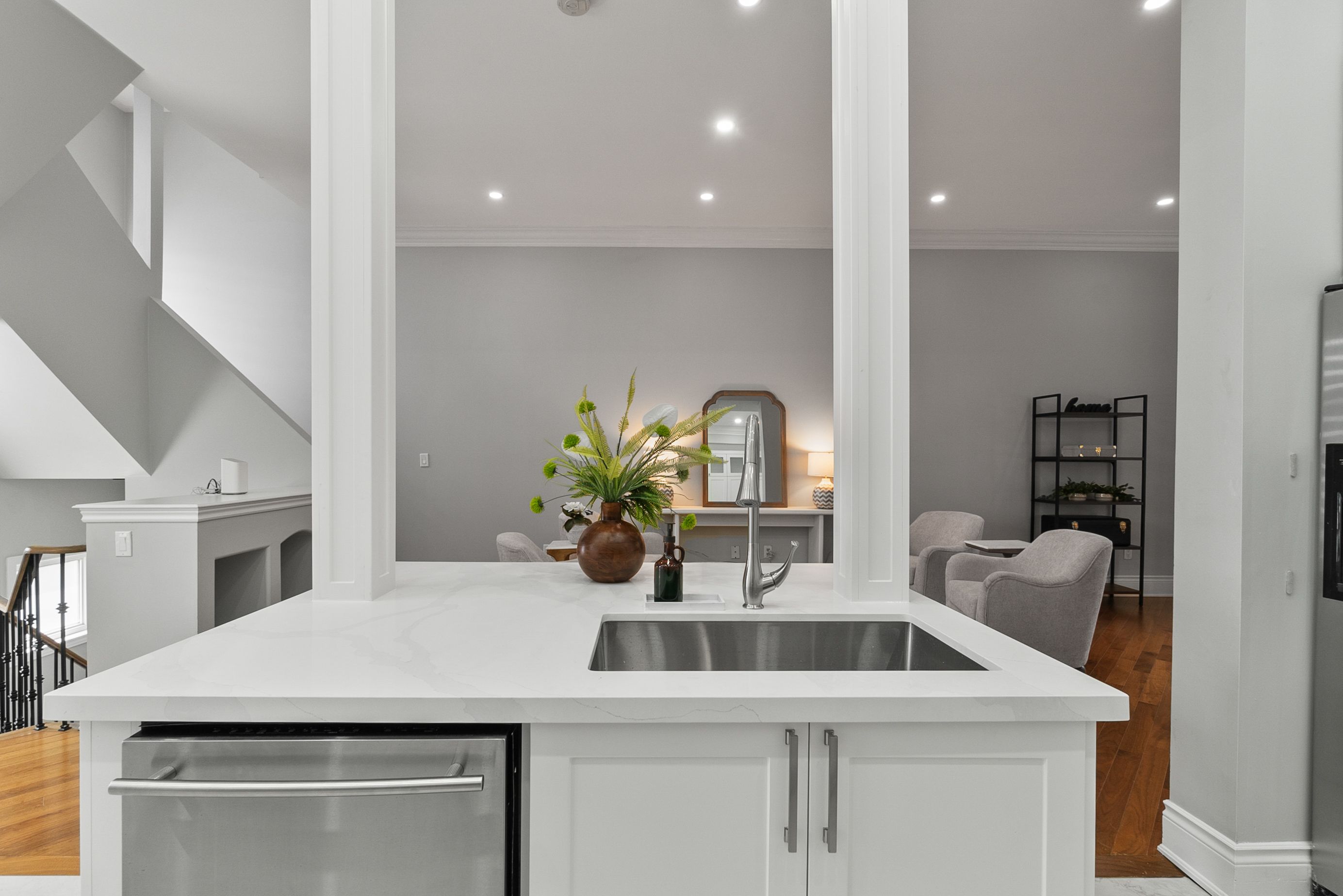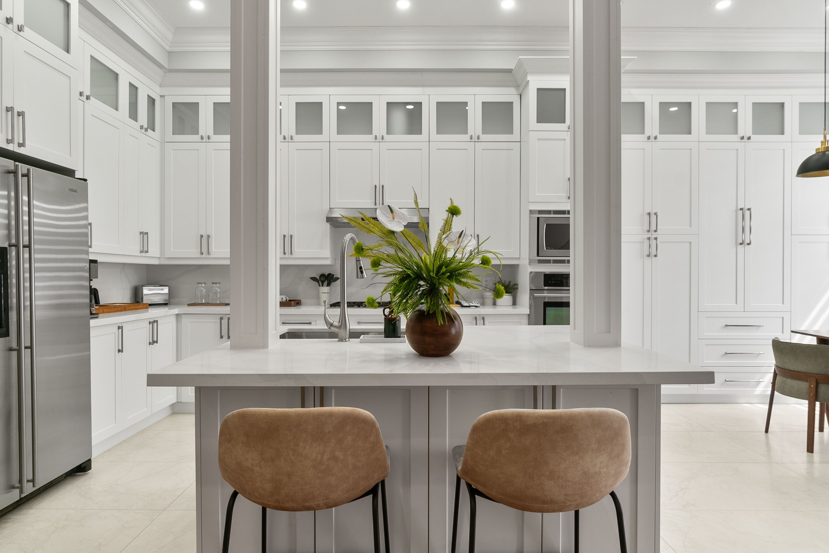 • Gourmet kitchen with top-of-the-line appliances and quartz countertops.