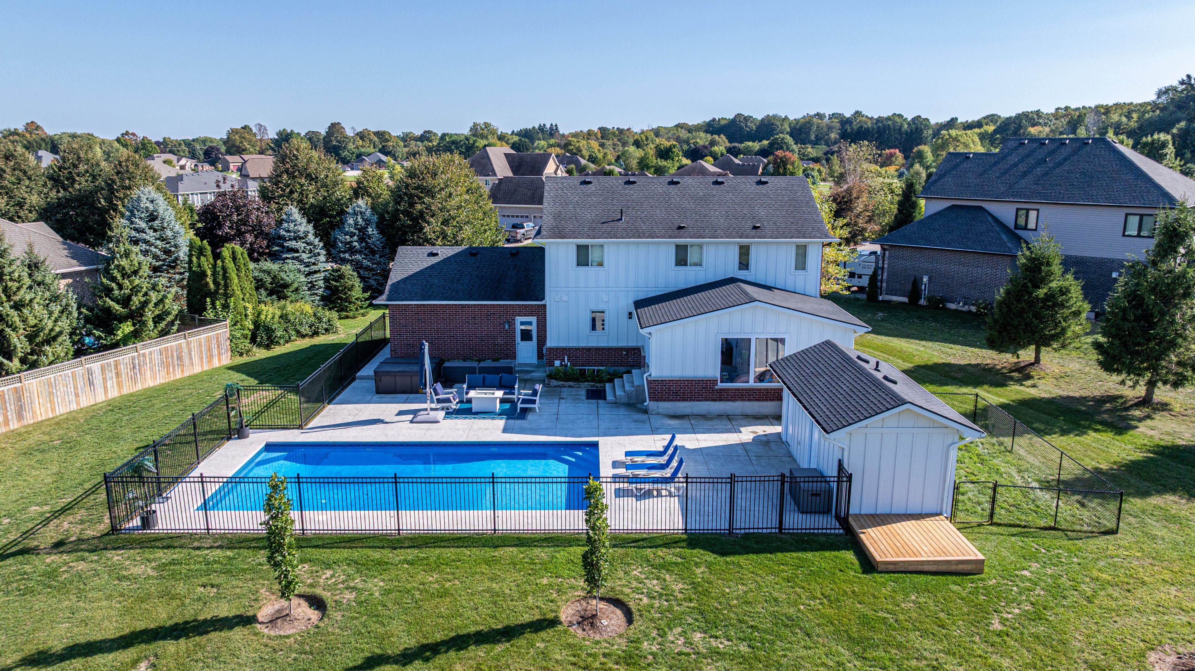 Discover this stunning custom-built colonial 2 storey home, perfectly situated on a beautiful 1. 01 acre pie-shaped lot complete with an 18' x 36' in-ground pool. Built by hayhoe homes and located in the desirable wales subdivision in the village of copenhagen, this exceptional property offers rural tranquility with convenient access to local amenities and just minutes south of aylmer and north of the lake erie beaches of port bruce. Step inside from the charming covered front porch to a welcoming foyer leading to a bright, south-facing den and a spacious open-concept diningroom with a cozy gas fireplace. The adjoining dream kitchen will impress any home chef with quartz countertops, an oversized quartz island with sink, a pantry & 3 stainless steel appliances including a gas stove with a pot-filler faucet. Entertaining is effortless in the expansive familyroom, highlighted by backyard views and a garden door opening to the patio and pool area. A convenient 2-piece bath near the main floor laundry room which offers interior access to the heated 2 car garage, with flecked epoxy flooring and auto door opener. Upstairs, you'll find 4 generous bedrooms and a central 4-piece bath. The primary suite offers abundant closet space and a 4 piece ensuite bath. The full basement offers excellent potential for future finishing to suit your family's needs. Outdoors, enjoy the front perennial gardens - accented with stacked limestone boulders, a double-wide paved driveway with room for 6 vehicles, and a massive fenced yard overlooking the peaceful countryside. Summer living is at its finest as your family and friends splish-splash in the resort quality 18' x 36' in-ground pool surrounded by a concrete patio, 5' black steel fencing and the 10' x 20' pool shed offers a convenient 3-piece seasonal wash/change room. This meticulously maintained executive home offers space, style, and lifestyle - everything you've been looking for. Don't miss this opportunity to make it yours.