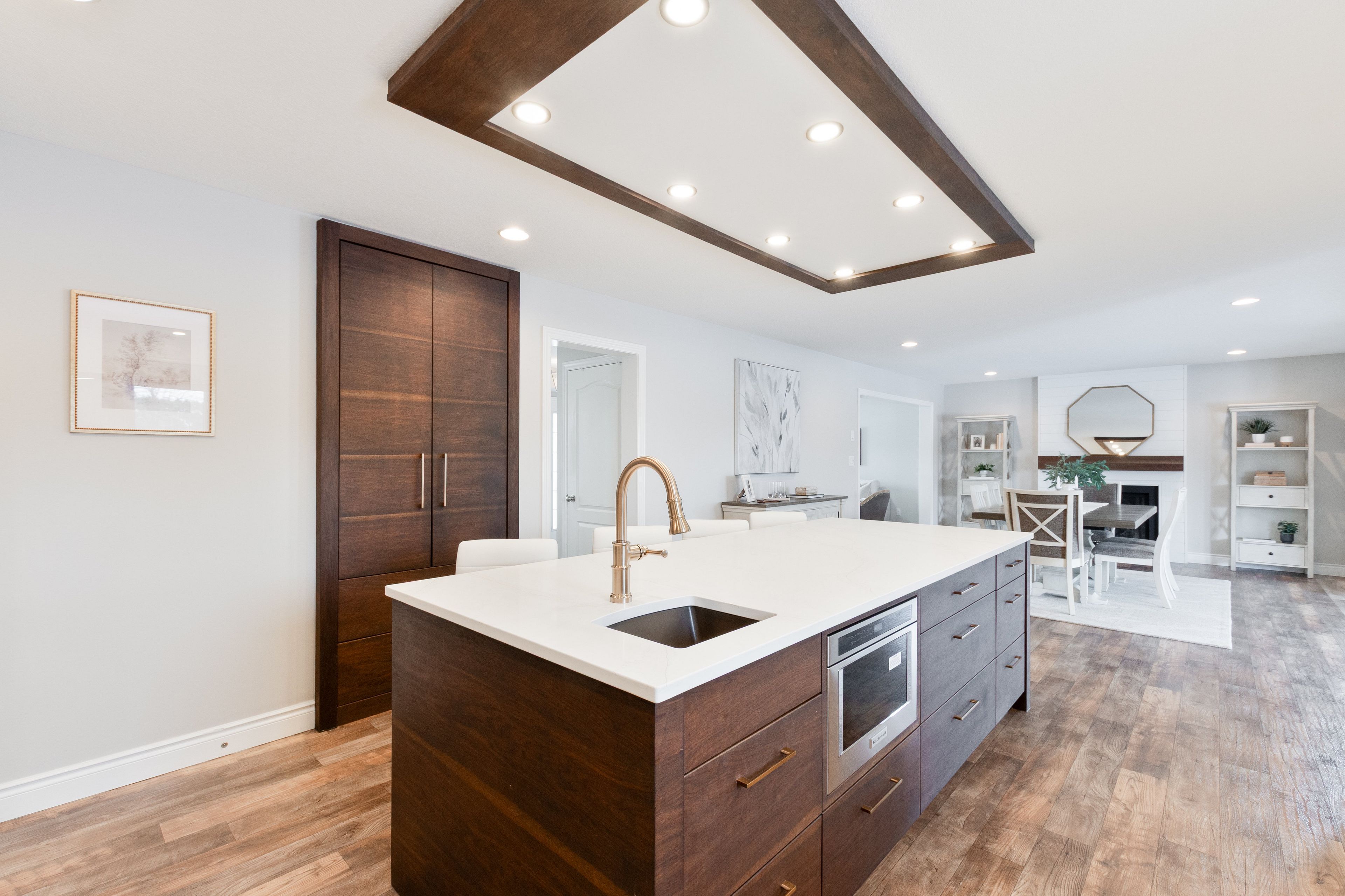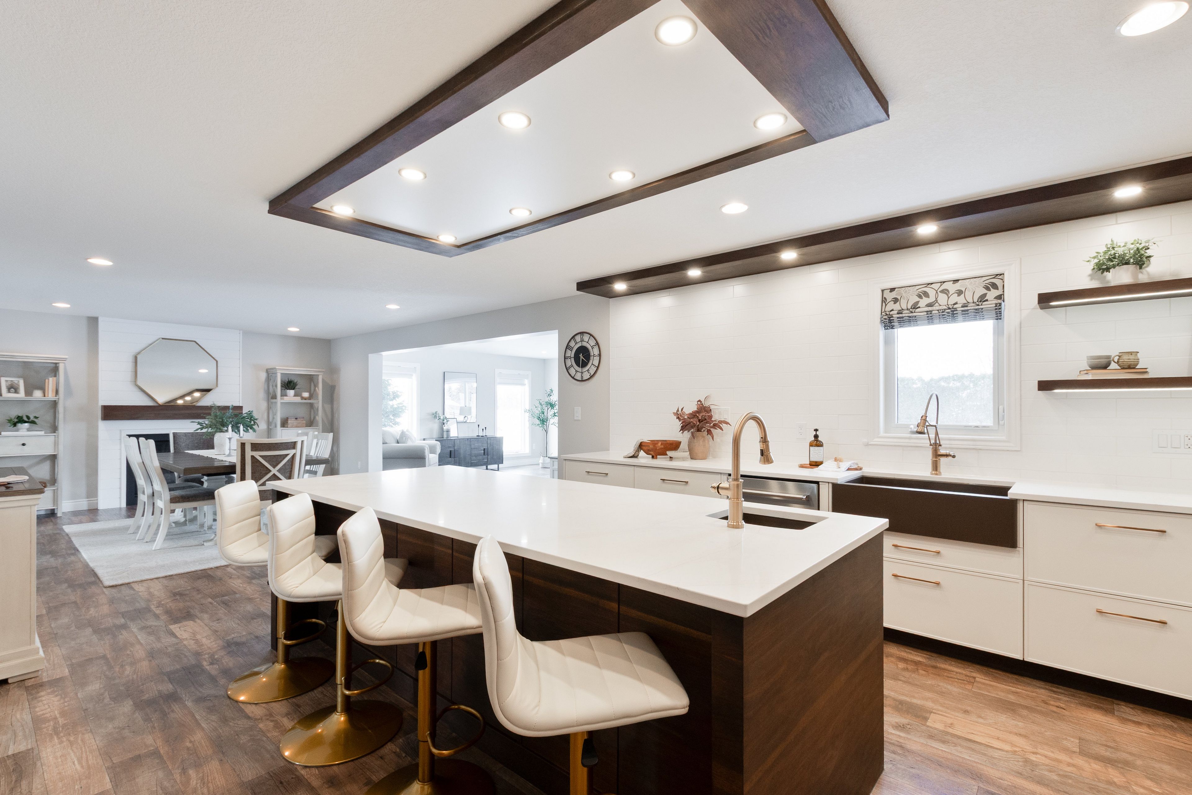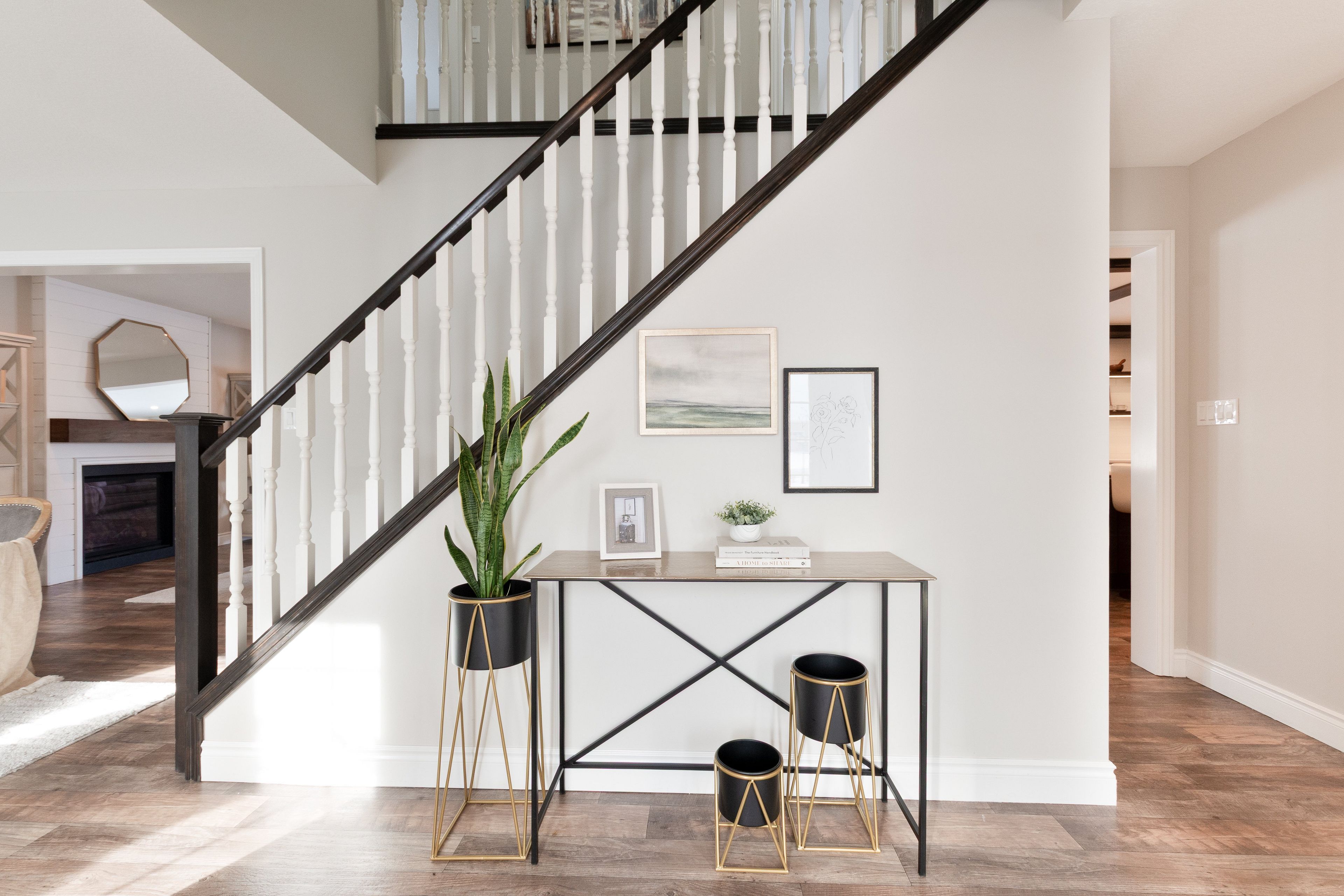 • Bright open-concept design with a cozy gas fireplace in the dining area.