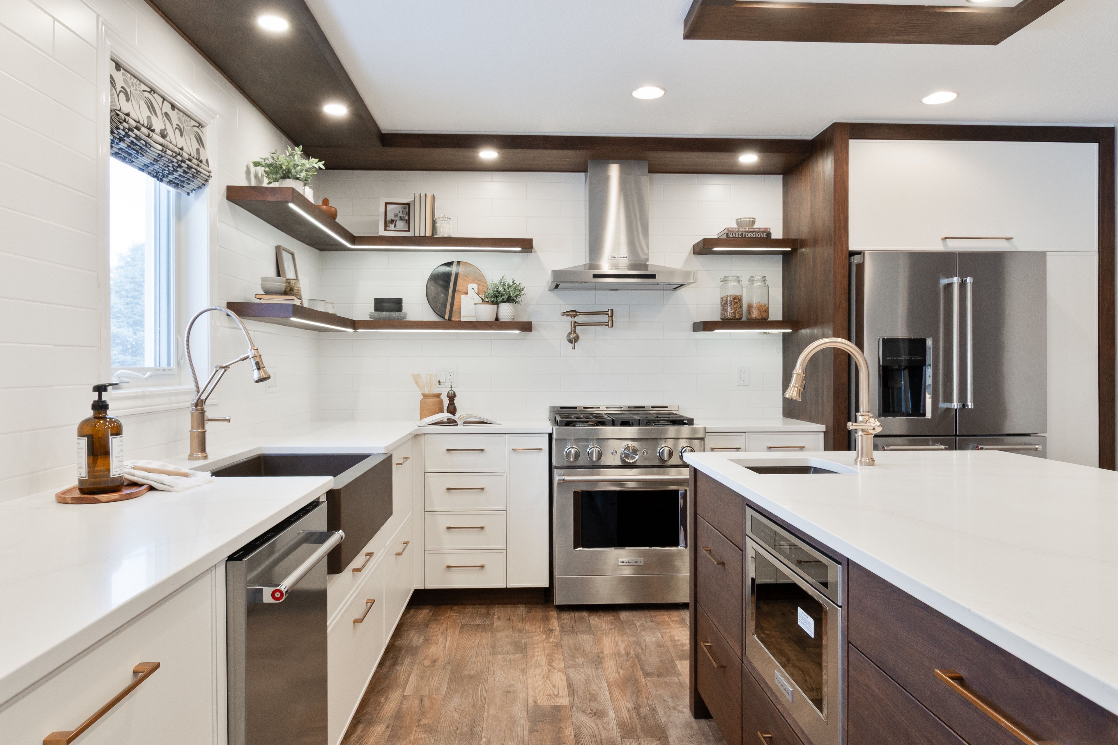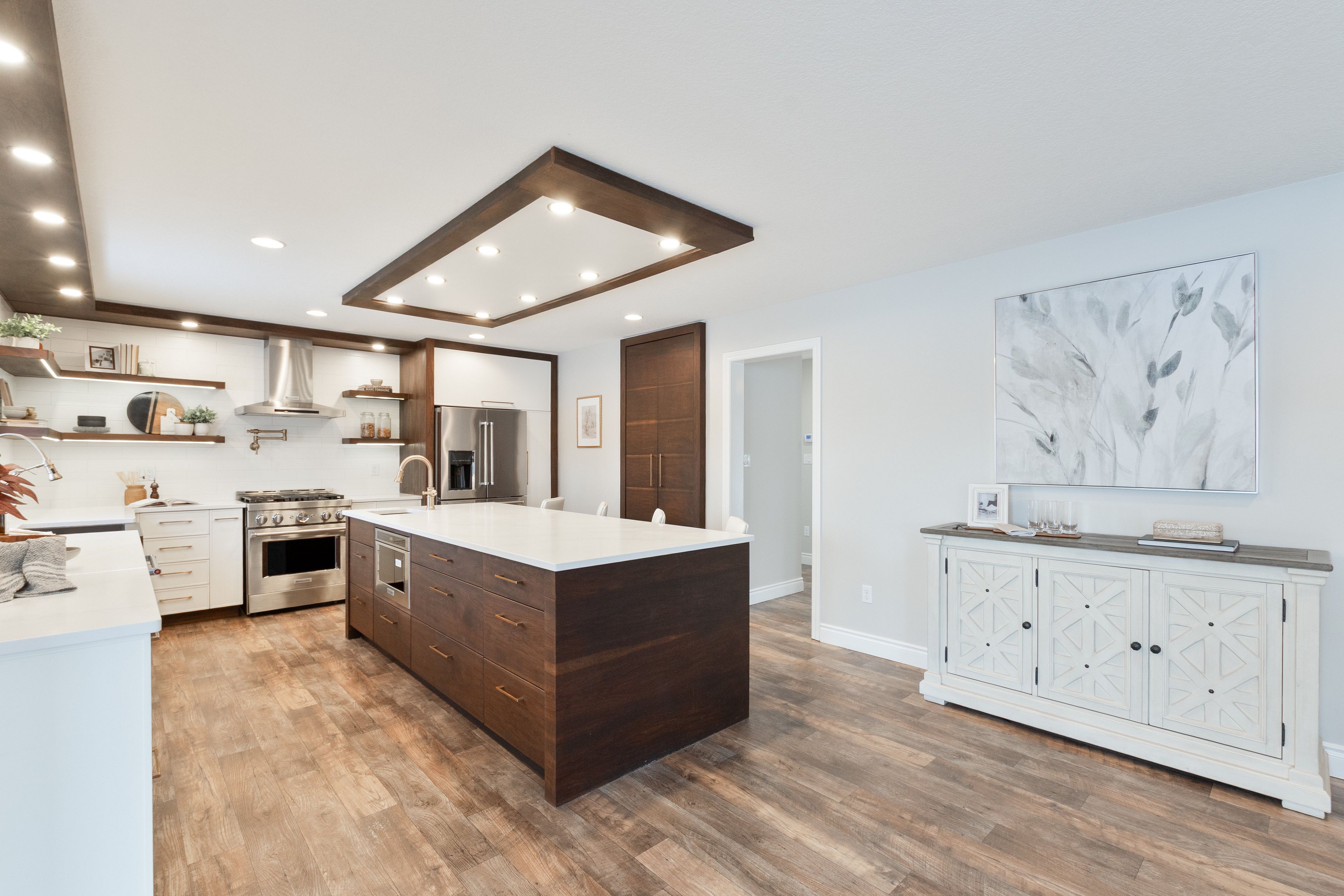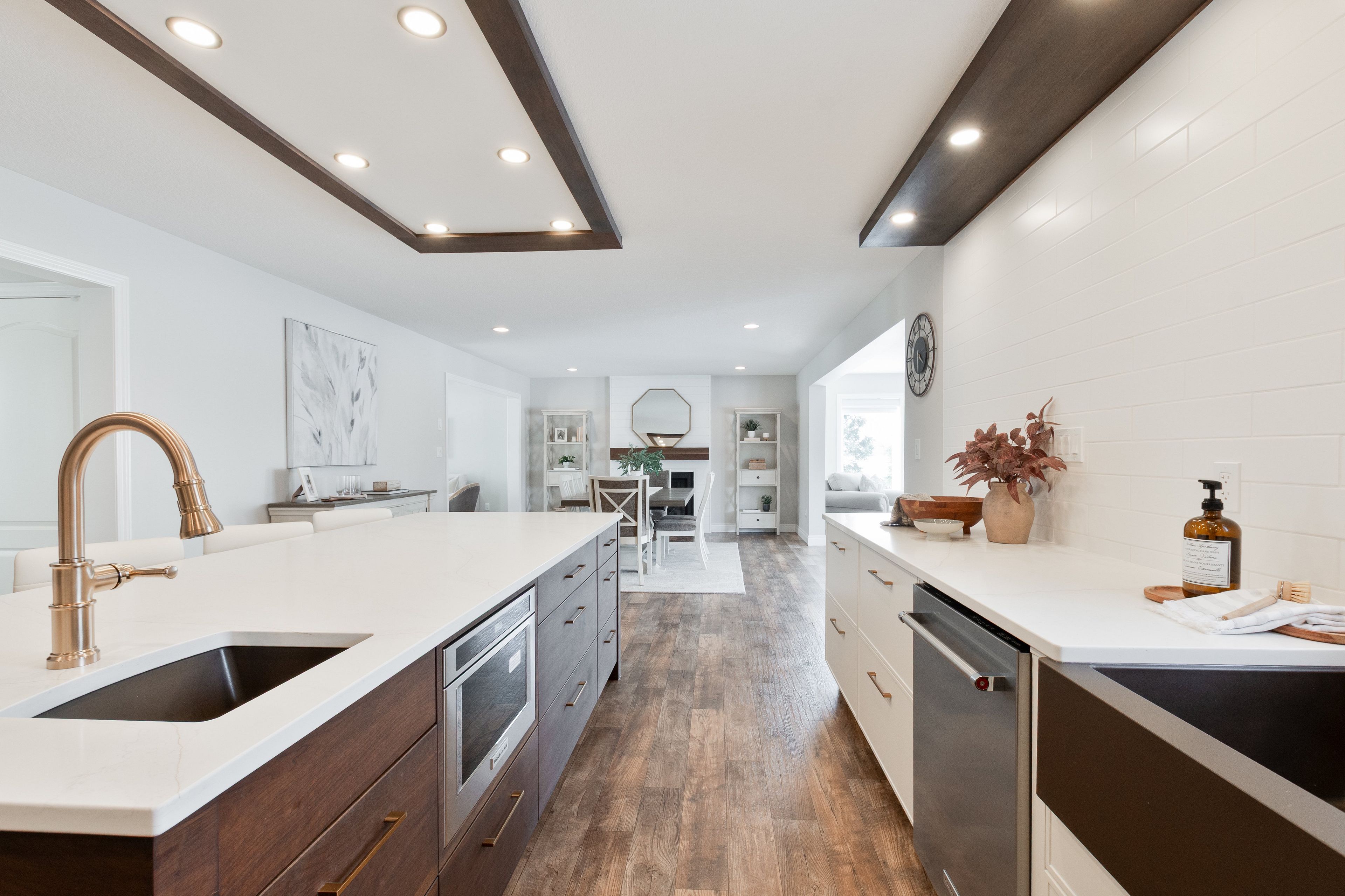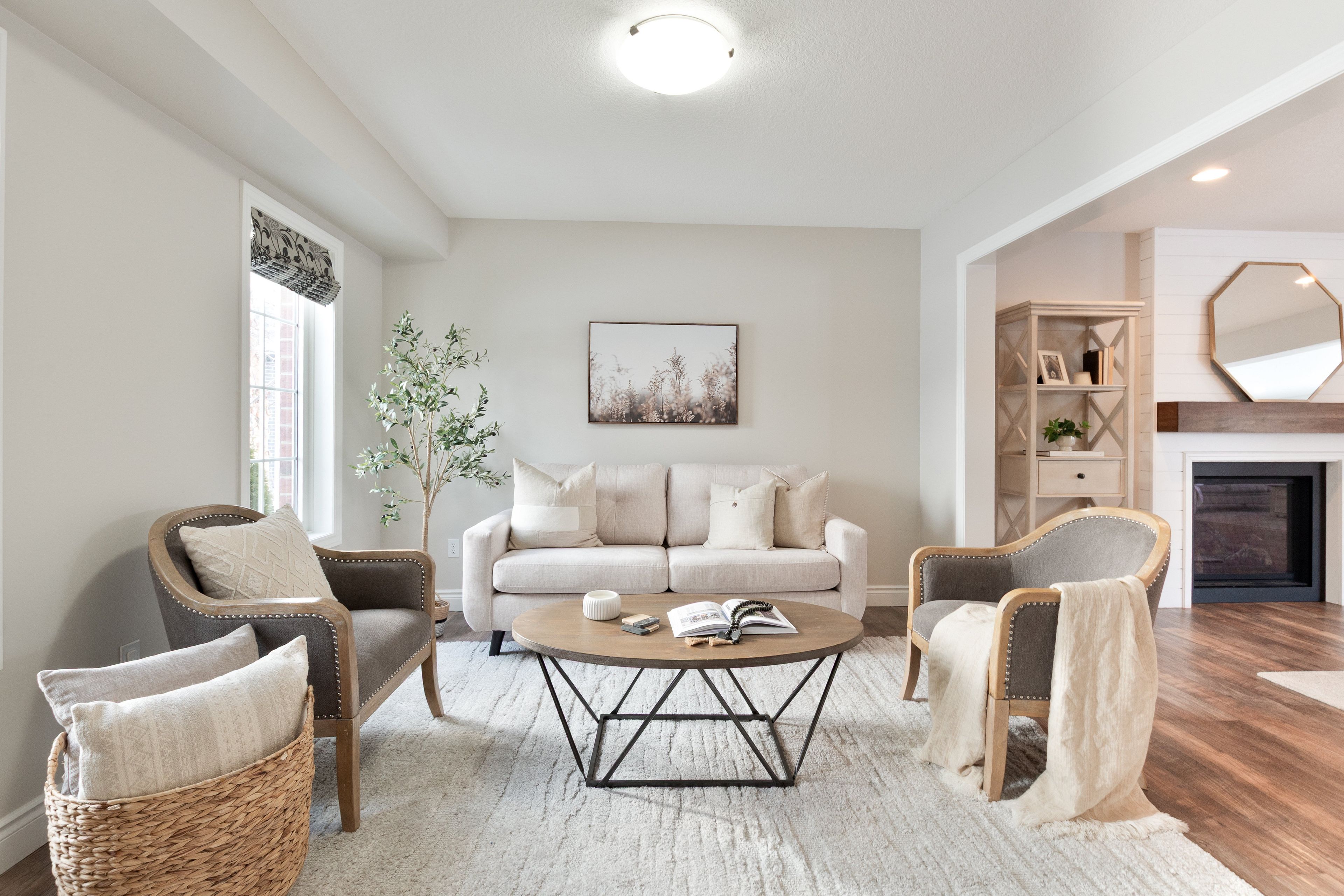 • Bright open-concept design with a cozy gas fireplace in the dining area.