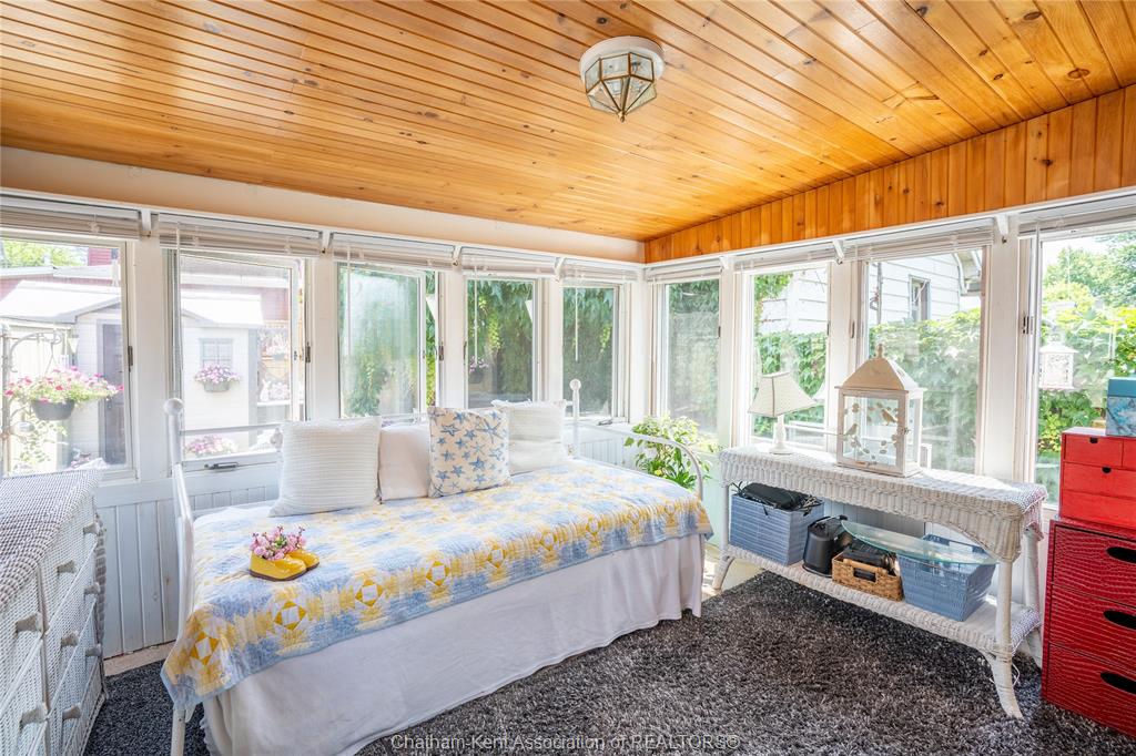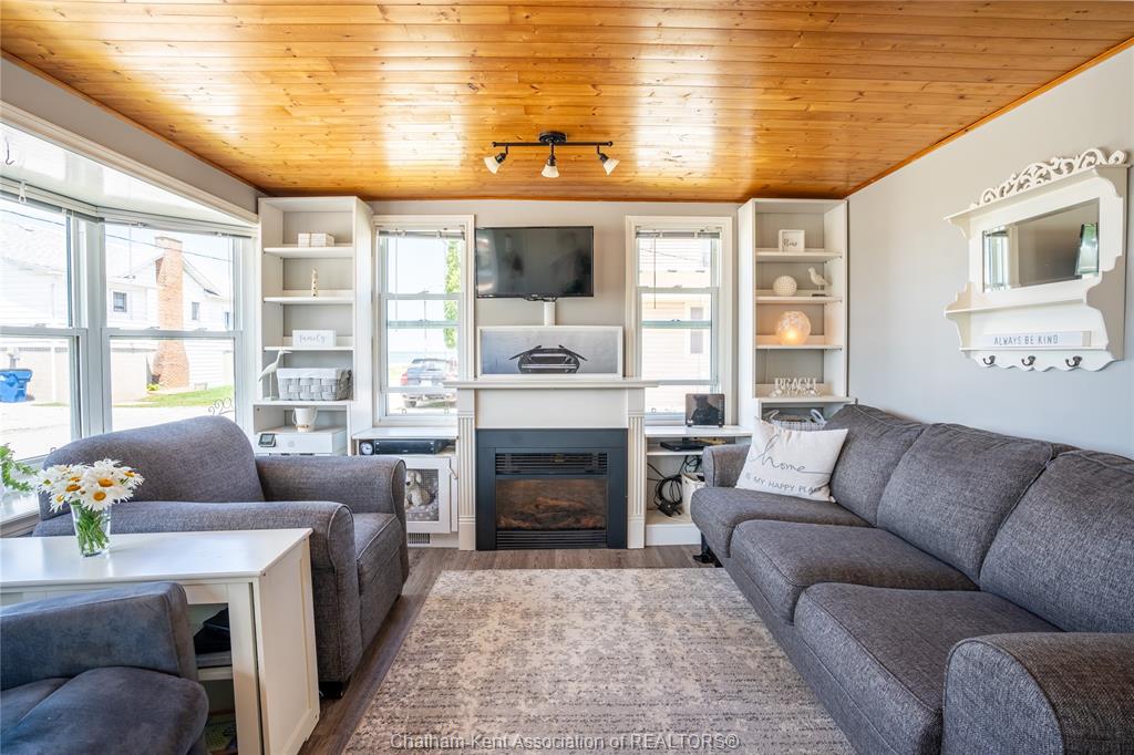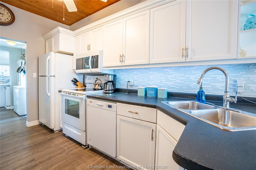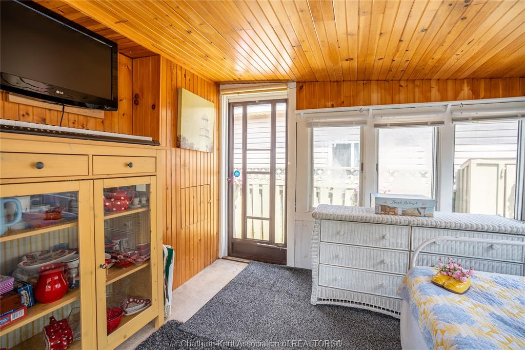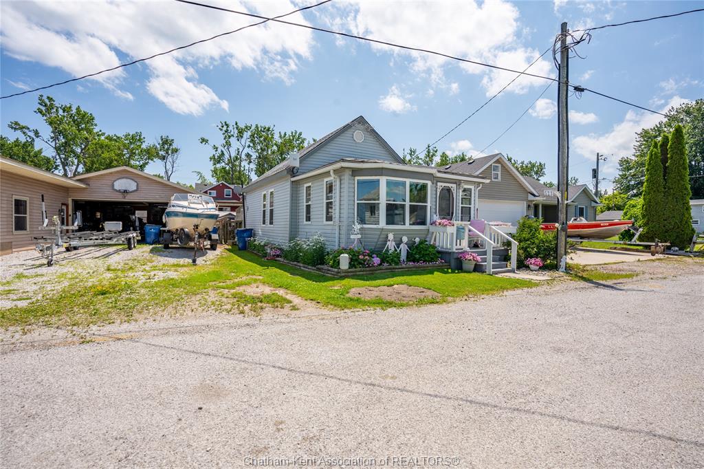 Enjoy easy living in beautiful erieau in this lovely bungalow with incredible views to rondeau bay! This bright open home features charming living room with bay window and built-in shelving, kitchen and dining area with 10 ft ceiling and fresh white shaker cabinets, 2 bedrooms, generous updated bathroom with separate jetted tub and walk-in shower, walk-through pantry and insulated 3-season sunroom. Outside you will find a private fully fenced yard perfect for the lake life with built-in shortage units, 2 sheds, pressure treated decks, covered gazebo and even its very own stainless steel fish cleaning/gardening station! With central air, spray foam insulation in the crawl space and only short walk to all that this lovely village has to offer - gorgeous lake erie sandy beach, restaurants, marina and quaint shops this one is a must see! Call, text or email for your private showing.