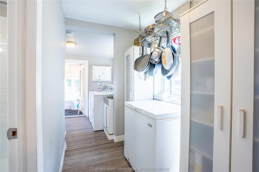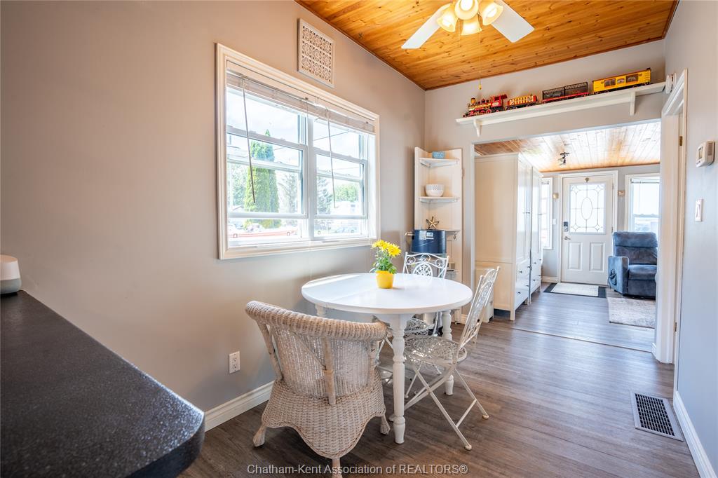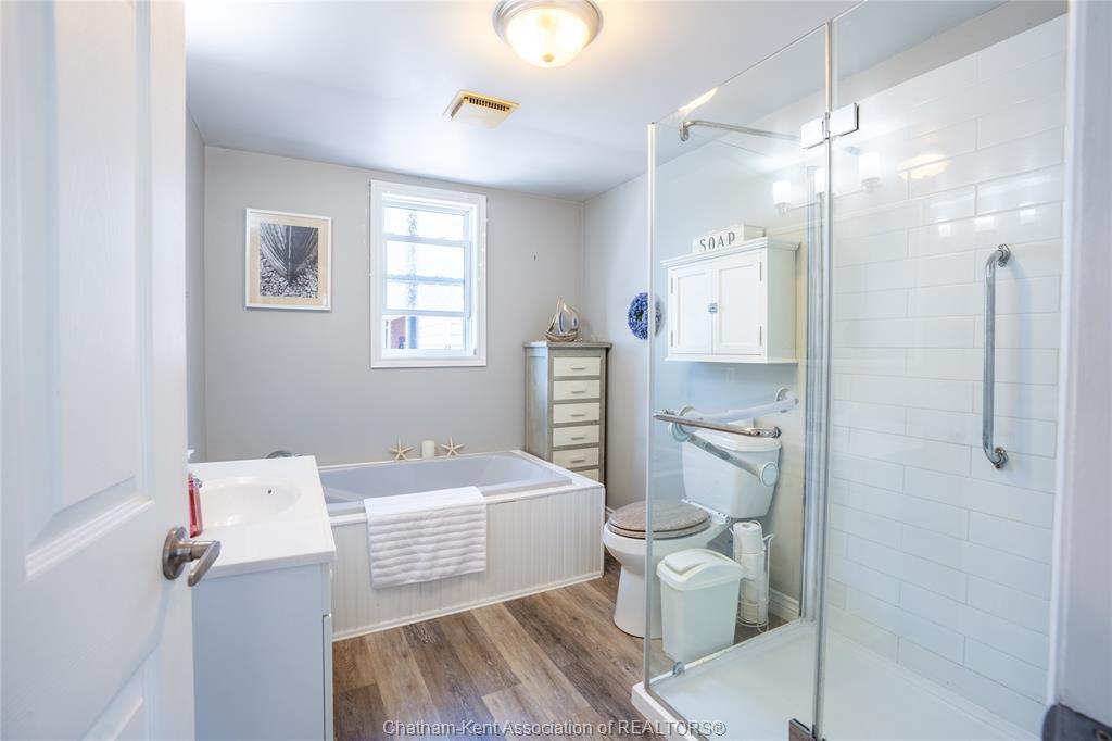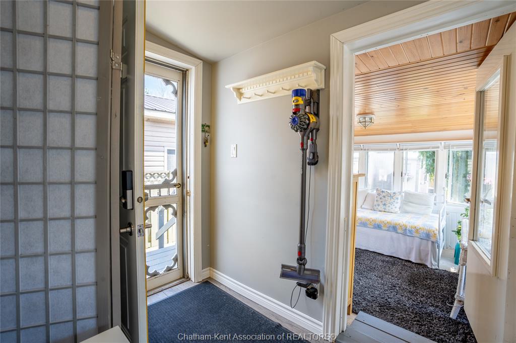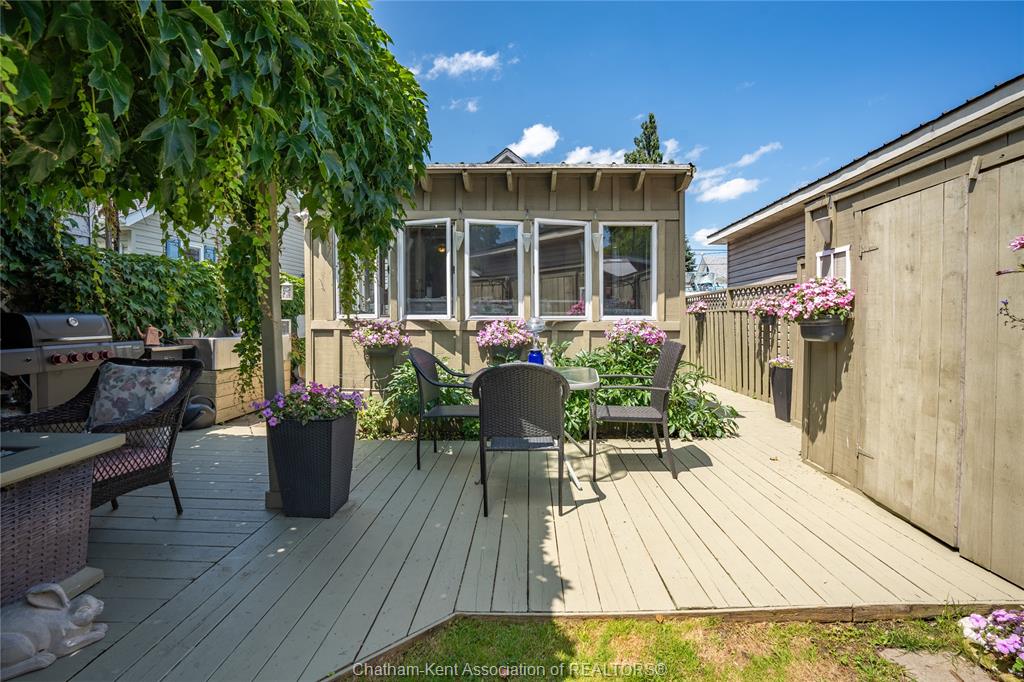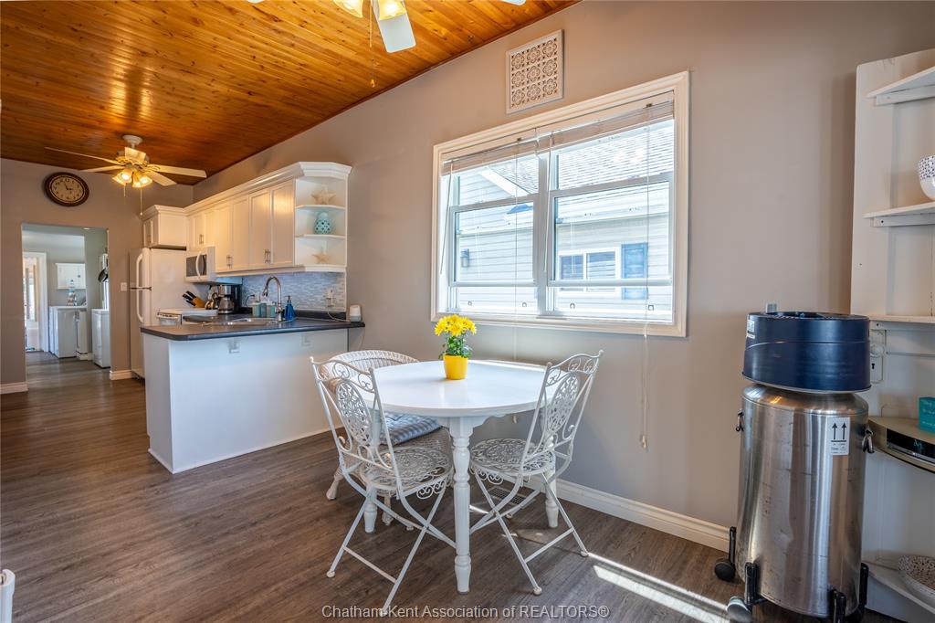Enjoy easy living in beautiful erieau in this lovely bungalow with incredible views to rondeau bay! This bright open home features charming living room with bay window and built-in shelving, kitchen and dining area with 10 ft ceiling and fresh white shaker cabinets, 2 bedrooms, generous updated bathroom with separate jetted tub and walk-in shower, walk-through pantry and insulated 3-season sunroom. Outside you will find a private fully fenced yard perfect for the lake life with built-in shortage units, 2 sheds, pressure treated decks, covered gazebo and even its very own stainless steel fish cleaning/gardening station! With central air, spray foam insulation in the crawl space and only short walk to all that this lovely village has to offer - gorgeous lake erie sandy beach, restaurants, marina and quaint shops this one is a must see! Call, text or email for your private showing.