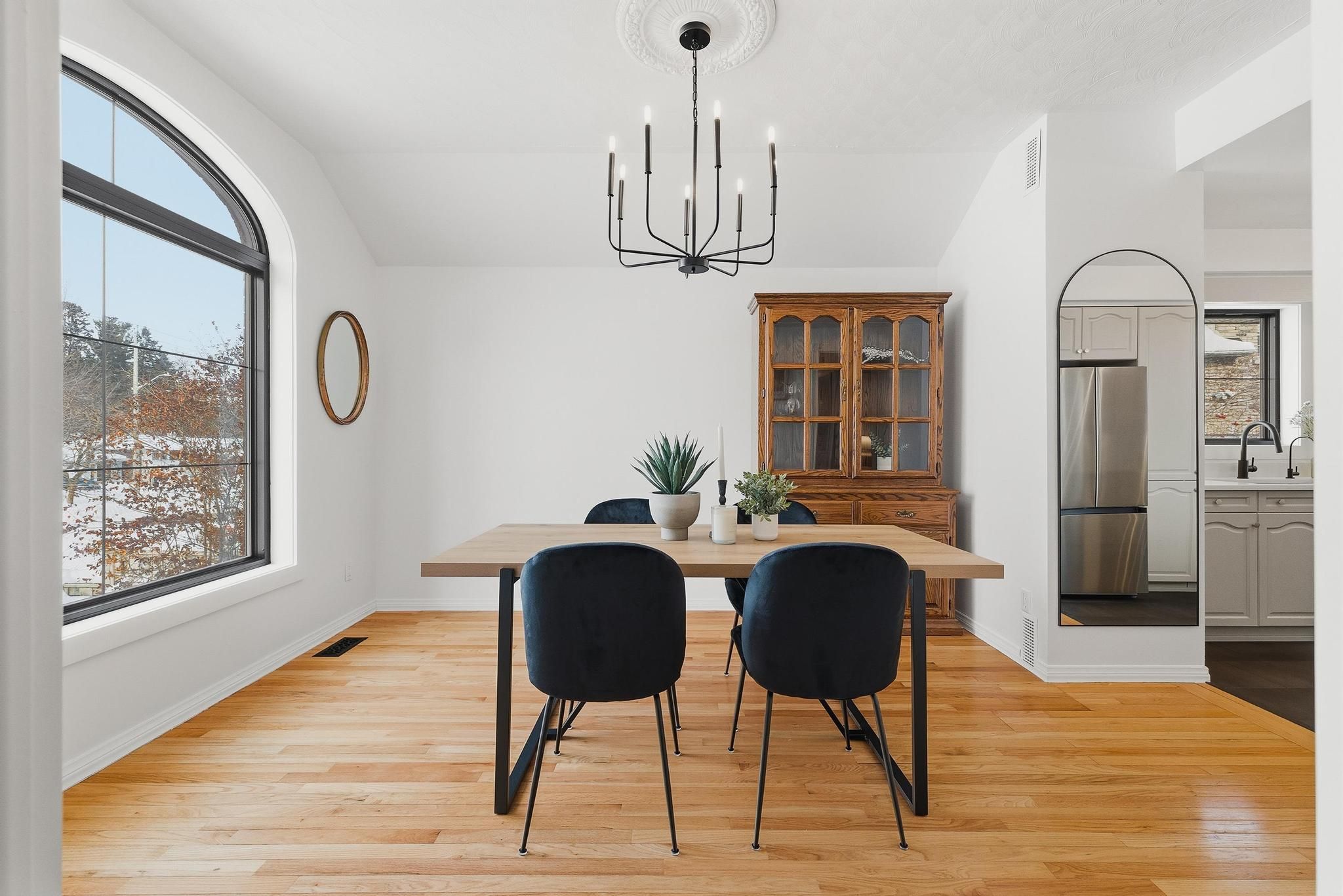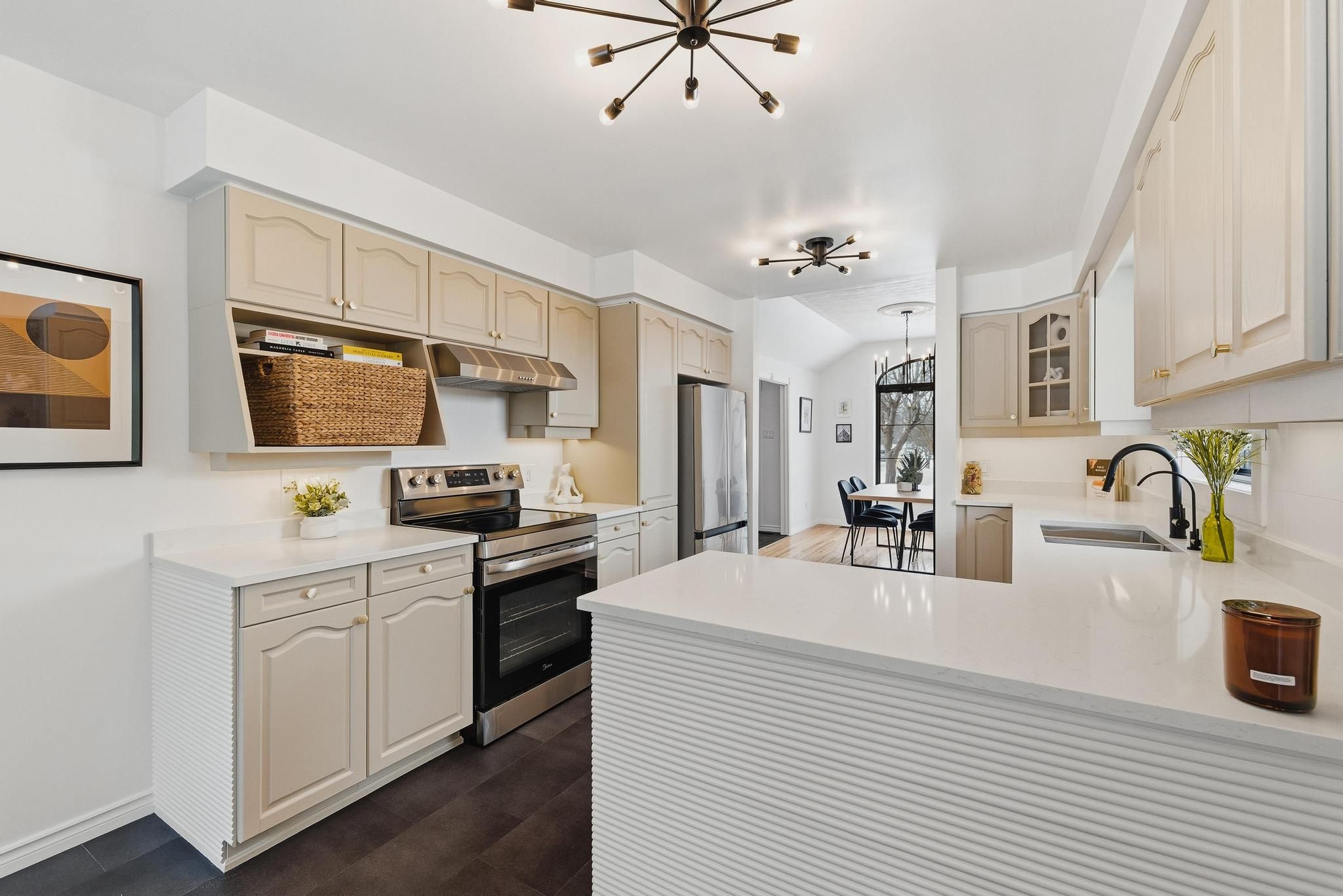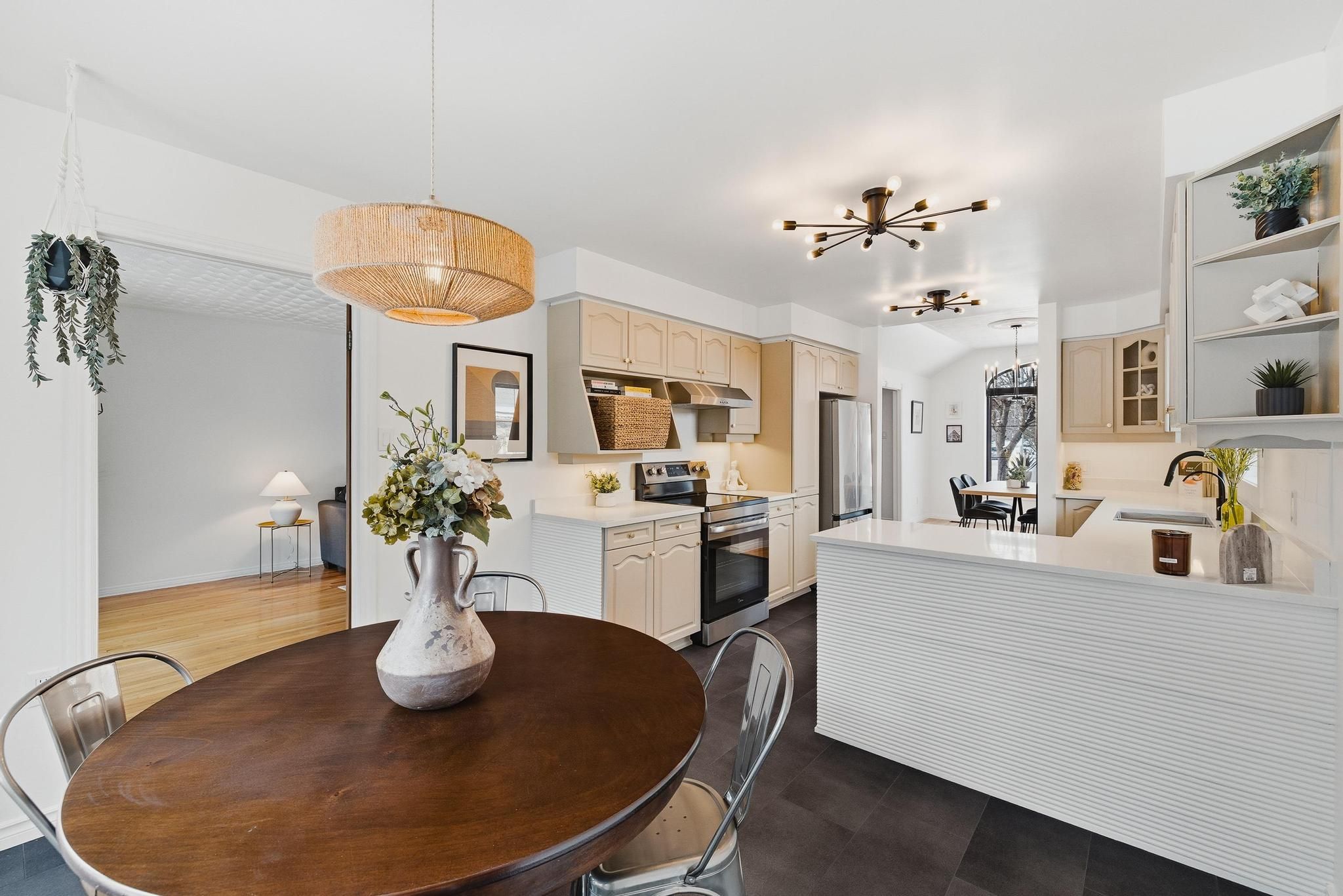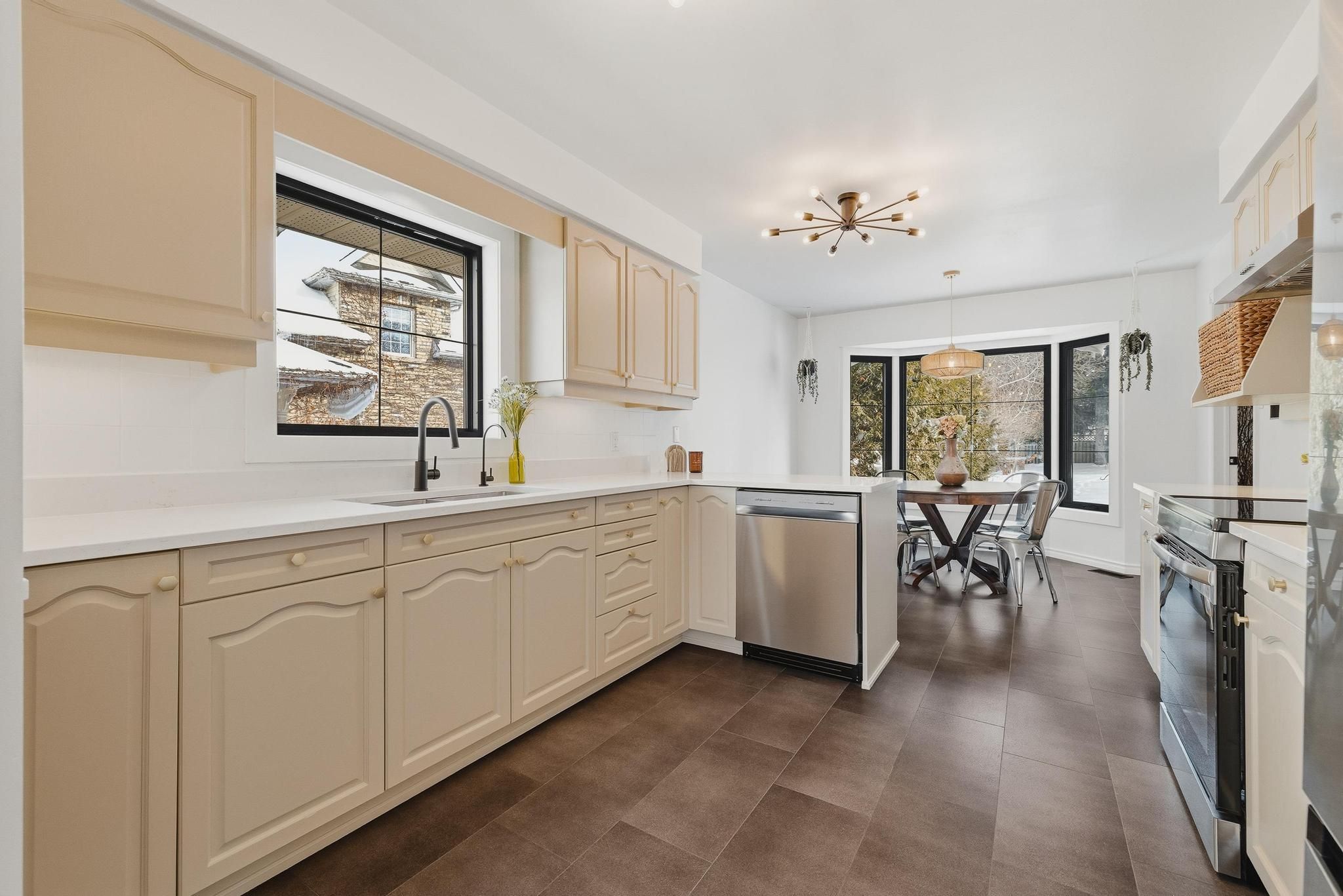 Welcome to 523 forest hill dr - a fully renovated, light-filled bungalow nestled on one of the most generous lots in the city, right in the heart of kitchener's forest hill neighbourhood. With 65x204 ft of property, mature trees, and no rear neighbours, this is a rare opportunity to enjoy privacy, space, and convenience all in one place. Set on a quiet, family-friendly street, this home backs onto one of kitchener-waterloo's top-rated catholic schools, making it possible for kids to walk to class without crossing a single street. With incredible proximity to more schools, parks, trails, shopping, and cafés, this address offers a connected lifestyle just 5 minutes to downtown kitchener and 8 minutes to uptown waterloo. Commuters will love the easy access to the highway, without the noise. A striking fiberglass front door sets the tone for the elegance inside, opening to a large, open foyer with new tile flooring, warm hardwood accents, and modern light fixtures throughout. This home has been thoughtfully updated, including all-new black-trim windows and doors, brand-new appliances, a refreshed kitchen with stone countertops, and a blend of classic charm and modern style. Vaulted ceilings elevate the dining area, while unique ceiling textures add character. Downstairs, the fully finished basement is bright, spacious, and ready to entertain with a dry bar, cozy gas fireplace, den, and a full 3-piece bathroom, perfect for guests or growing families. A new ac system ensures year-round comfort. With its ideal location, generous lot, upscale updates, and serene setting, 523 forest hill dr offers an unbeatable combination of lifestyle, luxury, and livability in the heart of the city.