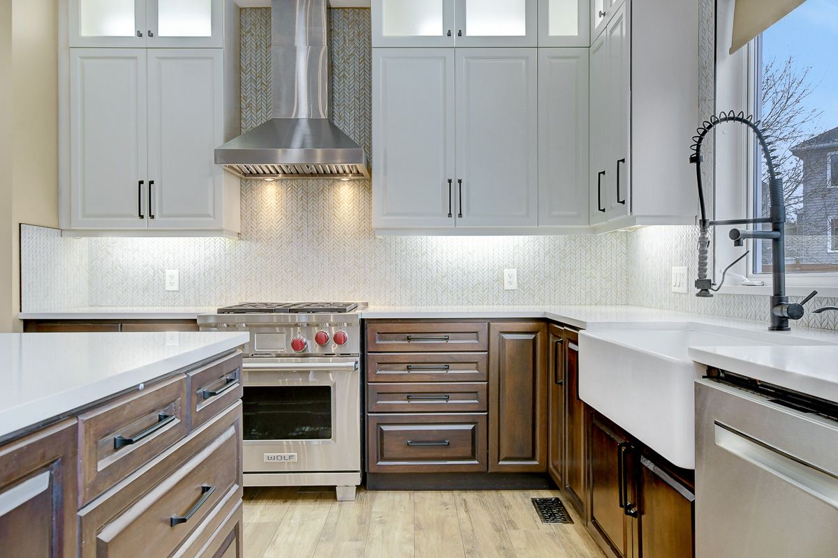• Gourmet kitchen featuring quartz counters, gas stove, and ample storage.