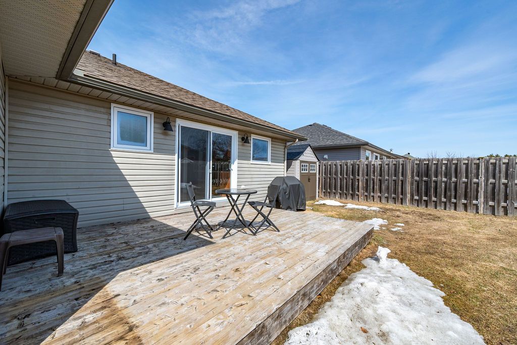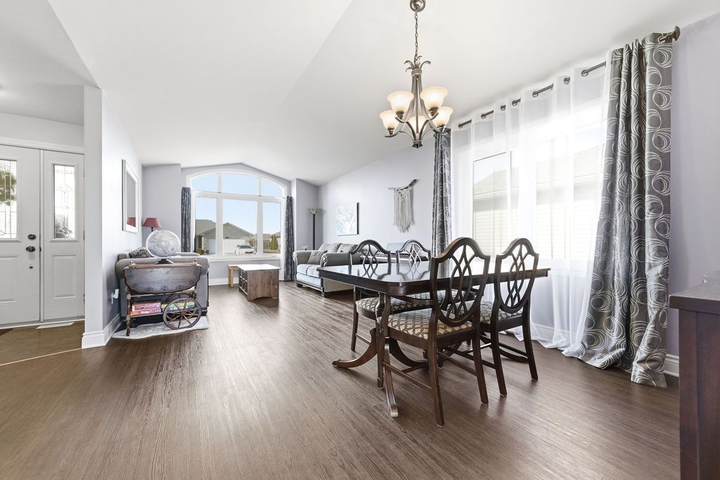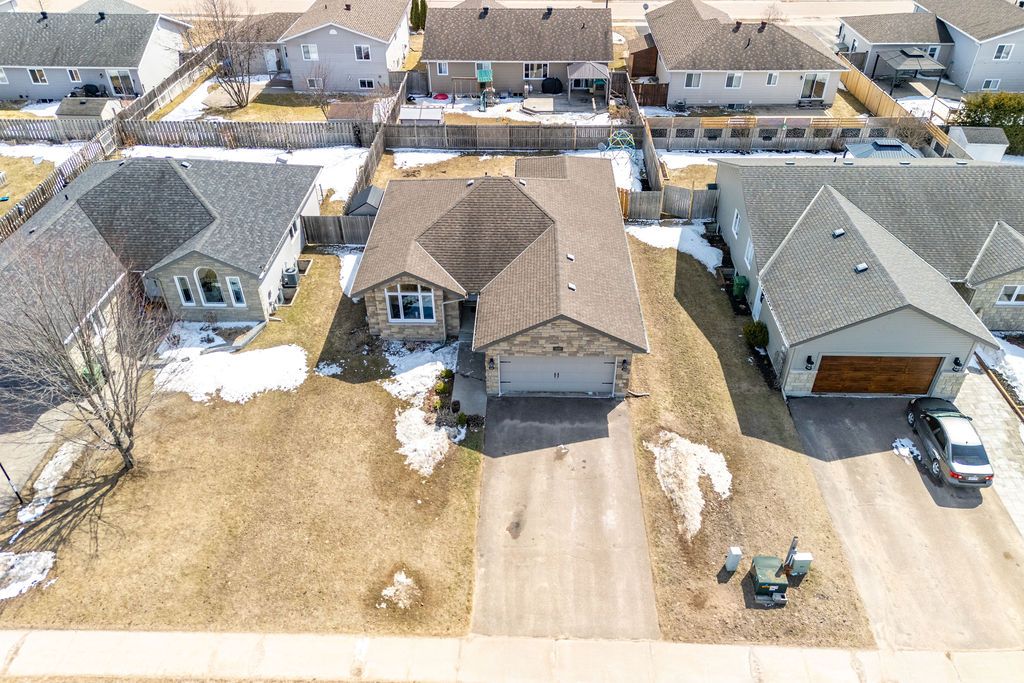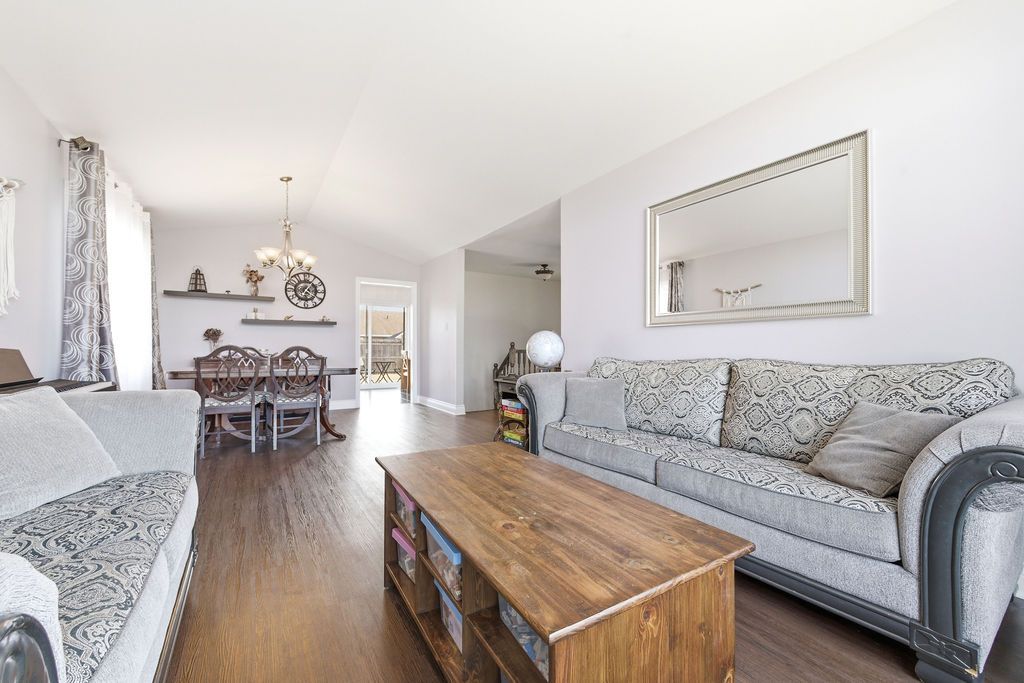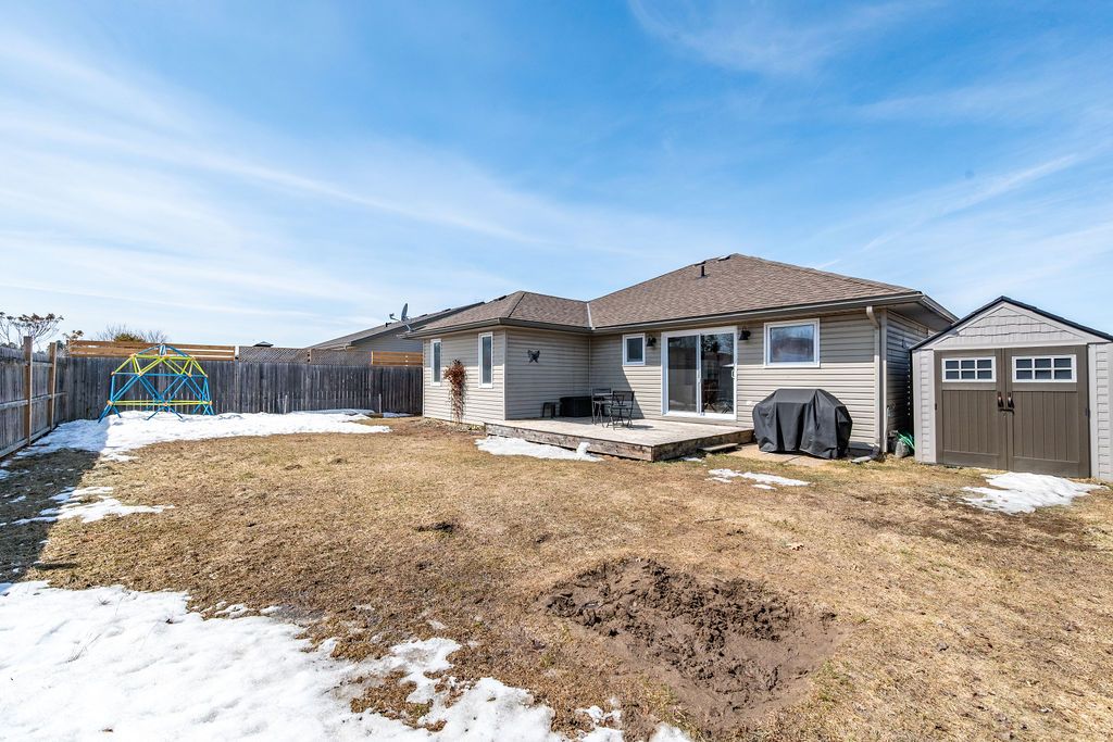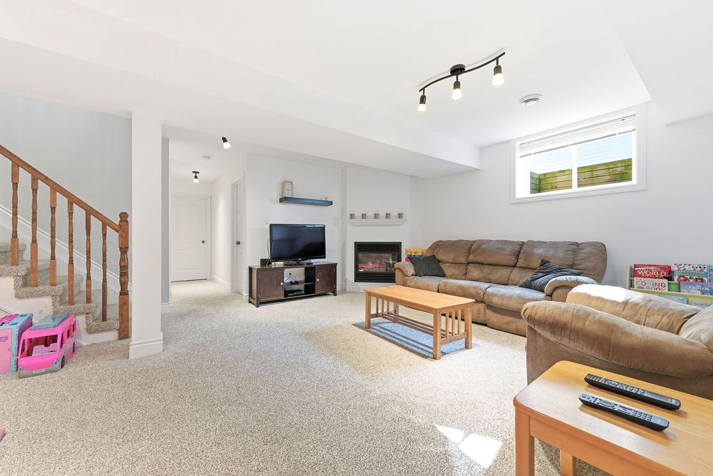Nestled on one of the quietest crescents in the neighborhood, this beautiful bungalow offers a peaceful setting perfect for families-where kids can safely enjoy street hockey or bike rides just outside your door. The main level features updated laminate flooring (2020) throughout the main living areas, complemented by soaring cathedral ceilings, updated light fixtures, and an abundance of natural light streaming through large windows. Three generously sized bedrooms are located on the main floor, including a spacious primary suite with his-and-hers closets. The bright kitchen showcases classic cabinetry, a custom backsplash, and a window overlooking the fully fenced backyard. An adjoining eat-in area with a brand new patio door (2025) leads to a deck and bbq space-ideal for entertaining or relaxing outdoors. Convenience meets functionality with main floor laundry and direct access to the garage through a mudroom. The fully finished lower level expands your living space with a large recreation room featuring a cozy gas fireplace, a fourth bedroom, and a full four-piece bathroom-perfect for guests seeking privacy. Basement carpet was replaced in 2019 for added comfort. Thoughtfully designed with ample storage throughout, this home is as practical as it is inviting. Please note: all offers require 24-hour irrevocable.