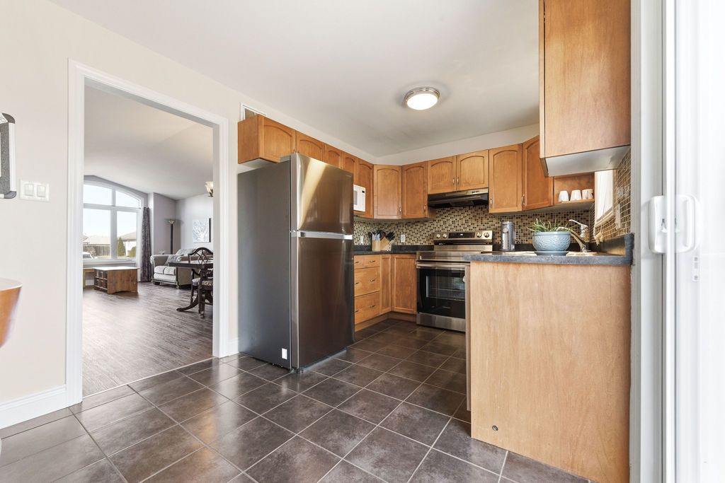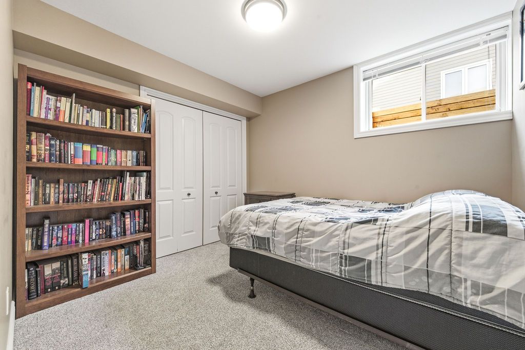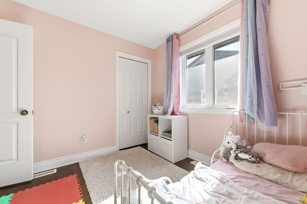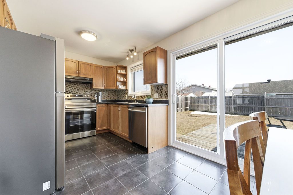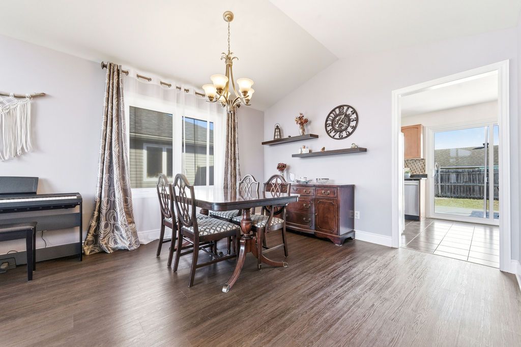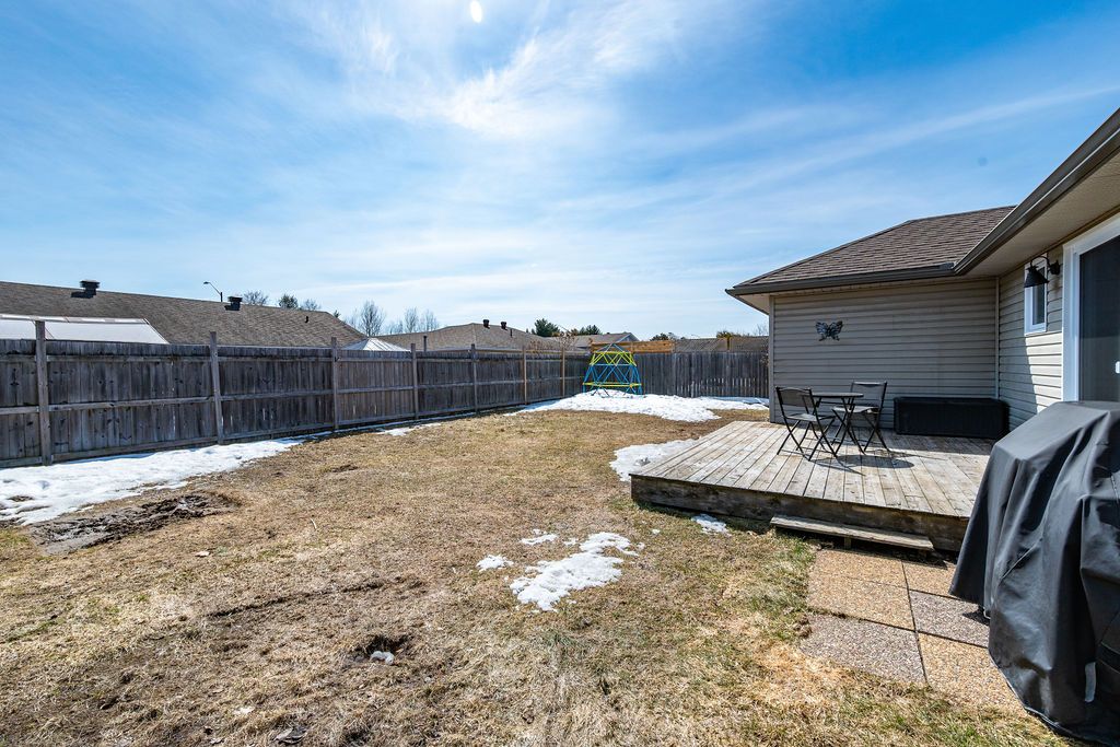 Nestled on one of the quietest crescents in the neighborhood, this beautiful bungalow offers a peaceful setting perfect for families-where kids can safely enjoy street hockey or bike rides just outside your door. The main level features updated laminate flooring (2020) throughout the main living areas, complemented by soaring cathedral ceilings, updated light fixtures, and an abundance of natural light streaming through large windows. Three generously sized bedrooms are located on the main floor, including a spacious primary suite with his-and-hers closets. The bright kitchen showcases classic cabinetry, a custom backsplash, and a window overlooking the fully fenced backyard. An adjoining eat-in area with a brand new patio door (2025) leads to a deck and bbq space-ideal for entertaining or relaxing outdoors. Convenience meets functionality with main floor laundry and direct access to the garage through a mudroom. The fully finished lower level expands your living space with a large recreation room featuring a cozy gas fireplace, a fourth bedroom, and a full four-piece bathroom-perfect for guests seeking privacy. Basement carpet was replaced in 2019 for added comfort. Thoughtfully designed with ample storage throughout, this home is as practical as it is inviting. Please note: all offers require 24-hour irrevocable.