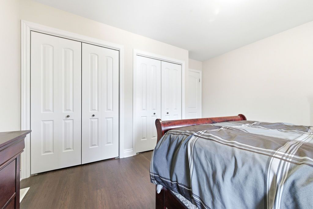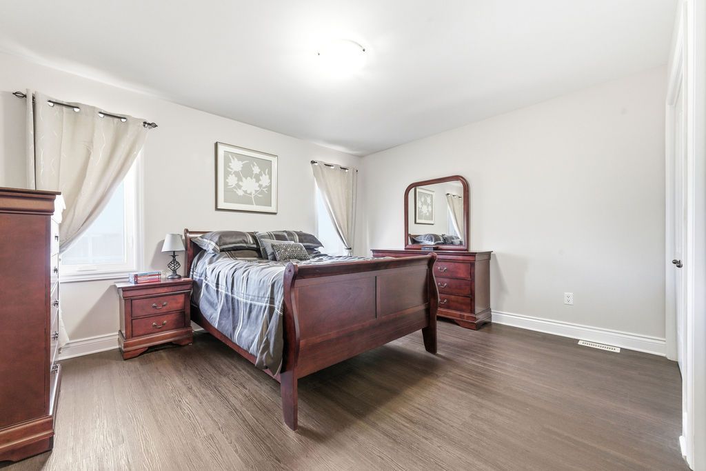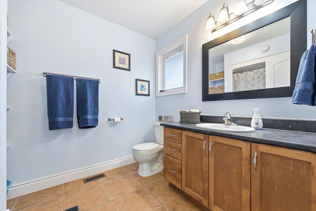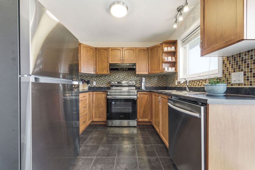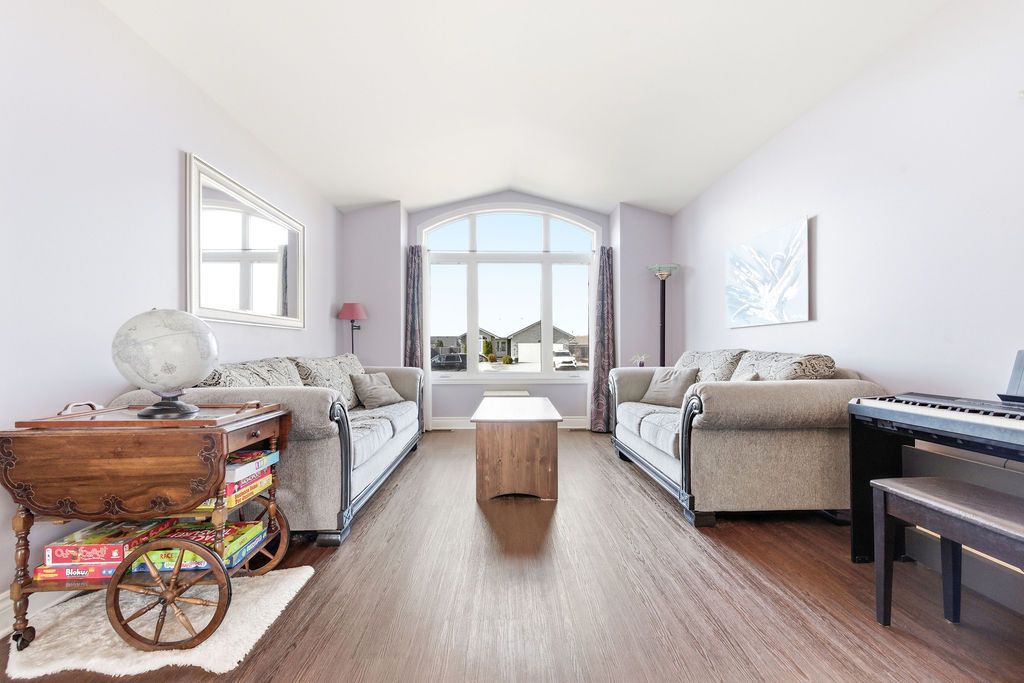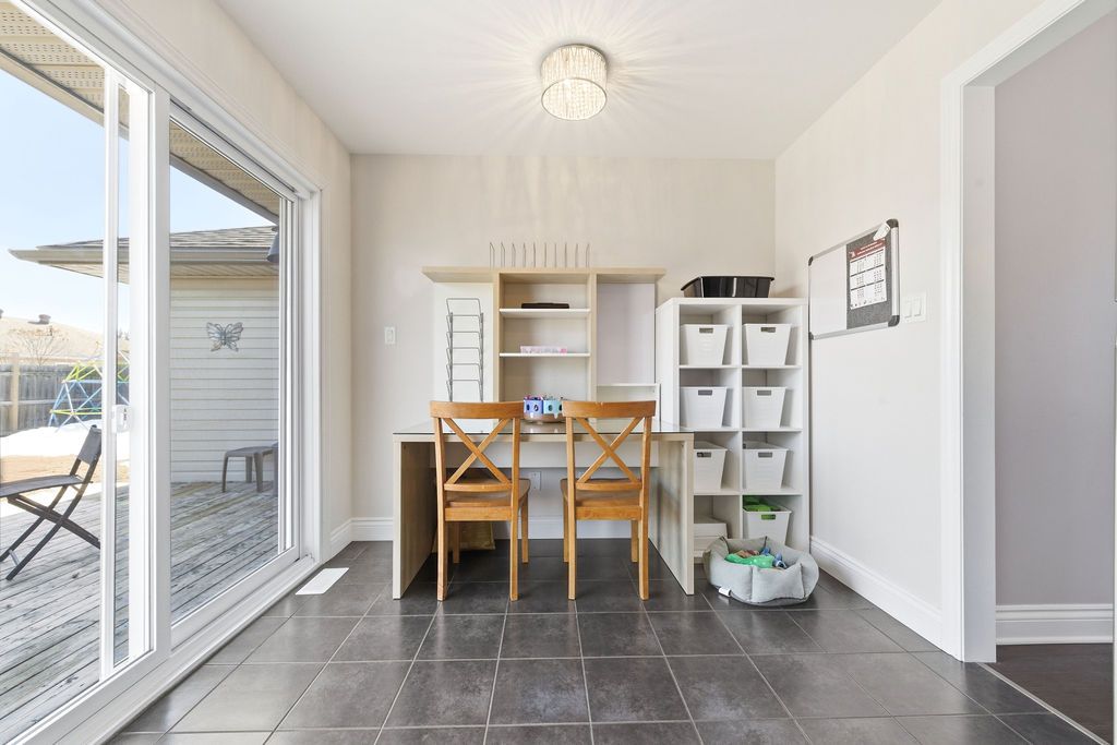 Nestled on one of the quietest crescents in the neighborhood, this beautiful bungalow offers a peaceful setting perfect for families-where kids can safely enjoy street hockey or bike rides just outside your door. The main level features updated laminate flooring (2020) throughout the main living areas, complemented by soaring cathedral ceilings, updated light fixtures, and an abundance of natural light streaming through large windows. Three generously sized bedrooms are located on the main floor, including a spacious primary suite with his-and-hers closets. The bright kitchen showcases classic cabinetry, a custom backsplash, and a window overlooking the fully fenced backyard. An adjoining eat-in area with a brand new patio door (2025) leads to a deck and bbq space-ideal for entertaining or relaxing outdoors. Convenience meets functionality with main floor laundry and direct access to the garage through a mudroom. The fully finished lower level expands your living space with a large recreation room featuring a cozy gas fireplace, a fourth bedroom, and a full four-piece bathroom-perfect for guests seeking privacy. Basement carpet was replaced in 2019 for added comfort. Thoughtfully designed with ample storage throughout, this home is as practical as it is inviting. Please note: all offers require 24-hour irrevocable.