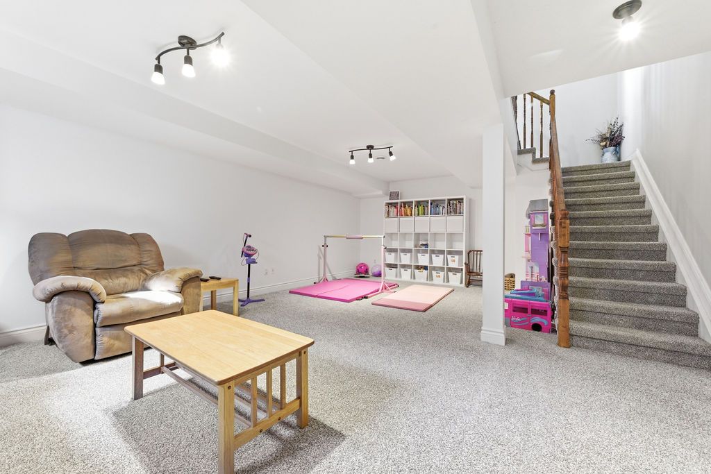 • Fully finished lower level with recreation room, fireplace, and guest bedroom.