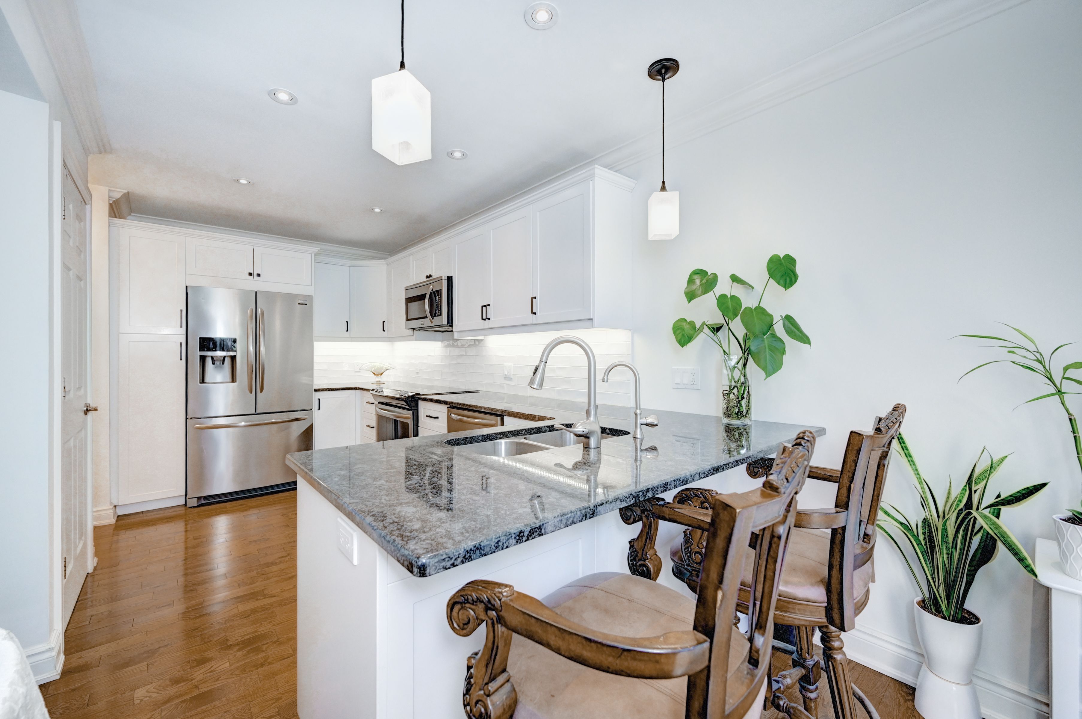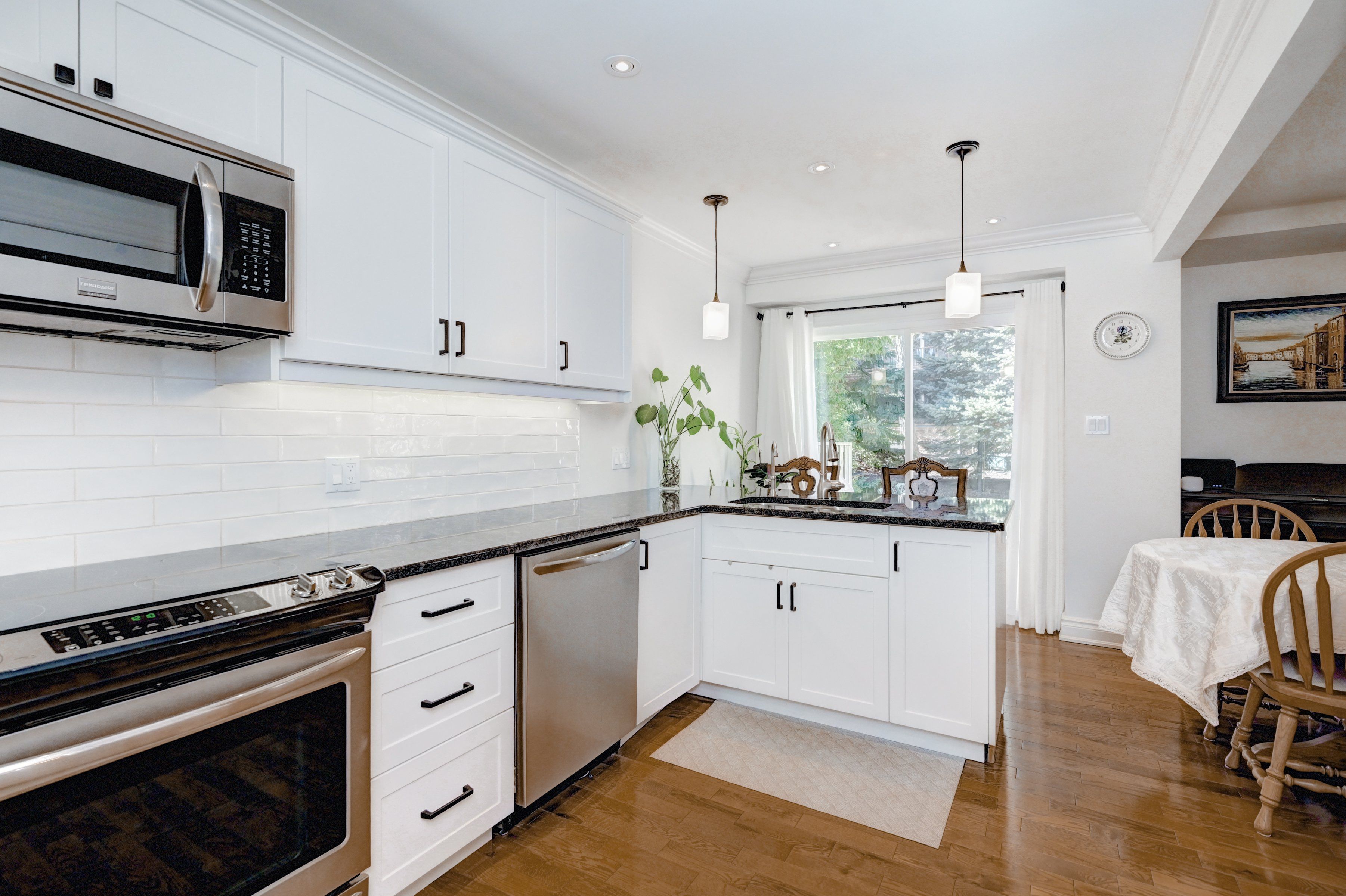 Beautiful end unit in a prime, private location within waterloo's beechwood community. This well-maintained executive townhome offers 2,337 sqft of finished living space, featuring a fully fenced yard and a beautiful private garden. This secluded sanctuary is perfect for families and privacy. Enjoy immediate access to mccrae park and the scenic forest trails of the beechwood south trail system. The interior offers 2 oversized bedrooms and 3 bathrooms, including a primary suite with heated floors, a soaker tub, and dual vanities. The main floor features a modern white shaker kitchen with granite counters, a pantry, and soft-close cabinetry. A rare double car garage and double driveway provide parking for 4 vehicles. Enjoy a low-maintenance lifestyle as condo fees include water, snow removal, and exterior maintenance. Complete with a fully finished basement, private patio, and exclusive resident-only pool access. This freshly painted home is steps from top-tier schools and premium amenities.