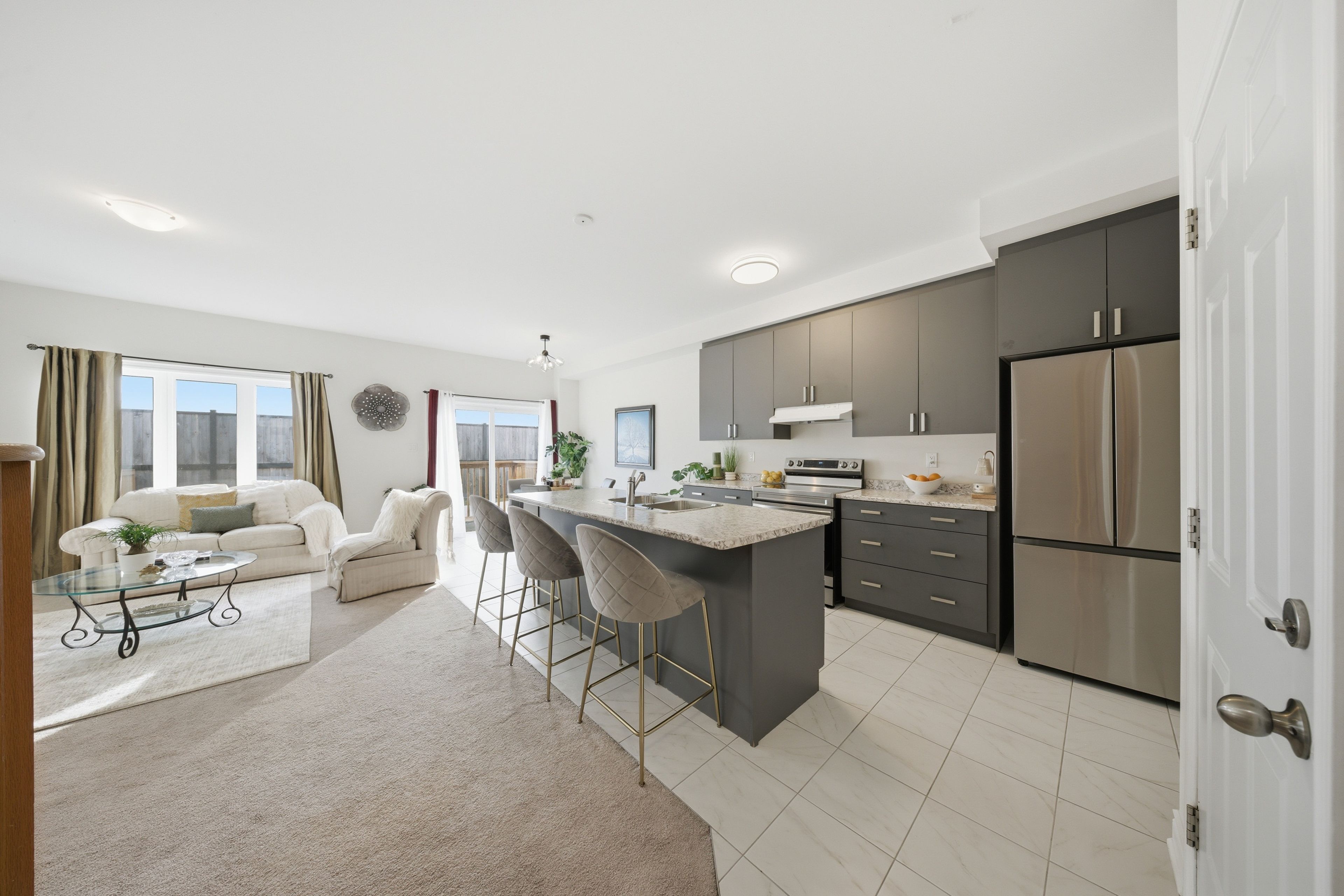 3 bedroom semi-detached located in a quiet family friendly neighborhood* double door entry 9ft ceiling to a bright functional & open concept layout* sun-filled living & dining combined with fireplace kitchen with double sink and breakfast bar* master with closet and 4 pc ensuite* extra privacy in backyard - no neighbours at back!
