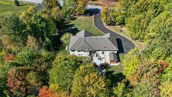 This custom built bungalow is nestled on a private 4 acres with a park like setting featuring numerous species of newly planted vegetation.(list available) landscaped with walking paths, gardens to be proud of and a privacy to be enjoyed. The open backyard offers a spacious deck on summer days, the fire pit area on cooler evenings or the covered screened gazebo for entertaining or a morning coffee. The interior open concept main level includes, stately cathedral ceilings in the living room with a gas fireplace. The hardwood flooring extends throughout the living, dining, kitchen and hallways. The gourmet kitchen w/granite counter tops, commercial style hood fan, gas range, pantry and stainless steel appliances leads to a formal dining area. This main level is a wonderful place to entertain with family and friends. The primary bedroom has a recently renovated ensuite bath , walk in closet area. The two ample sized secondary bedrooms and has easy access the main 4 piece bath. The extensive 3 car garage has inside access leading to well laid out mudroom and laundry. The professionally finished lower level offers recreational space, 4th bedroom/office, full 3 piece bath with heated flooring, office area and major storage space. The fabulous home is located in the exclusive enclave of home in west lake estates and is only minutes to kanata, carp and stittsville. This curb appeal starts at the elegant front door, throughout the entire interior to the meticulously landscaped acreage. Come visit this home today. 24 hrs irrev on offers as per form 244