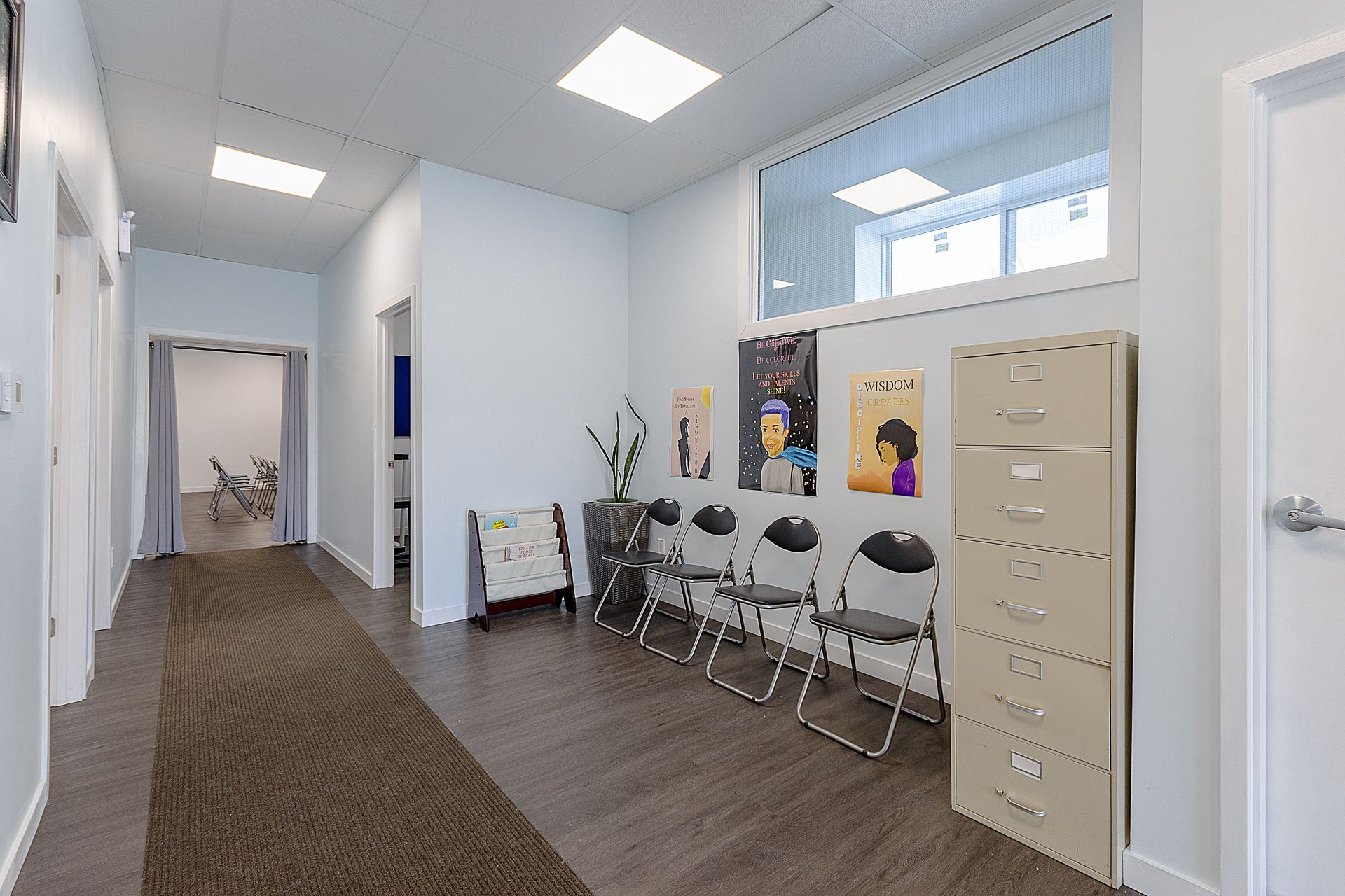 • Features include reception area, therapy rooms, and meeting room.