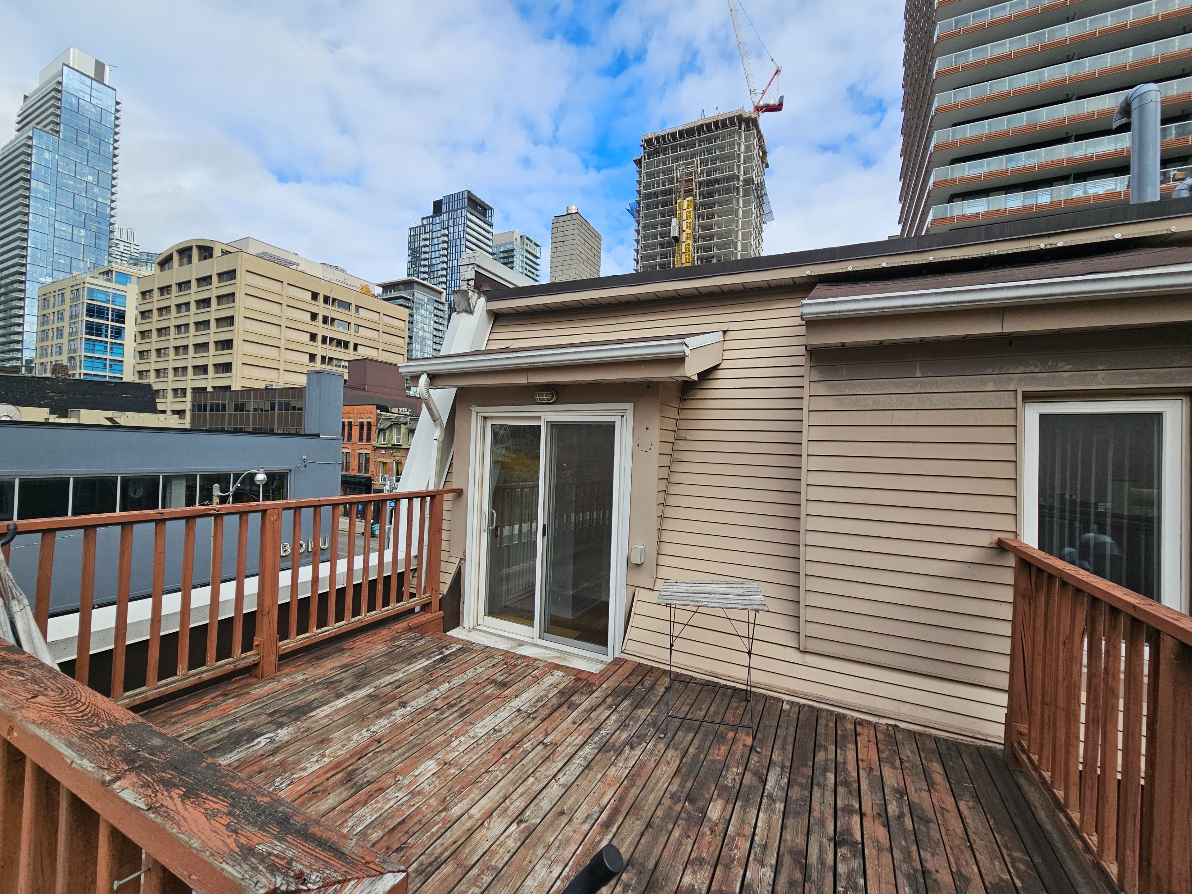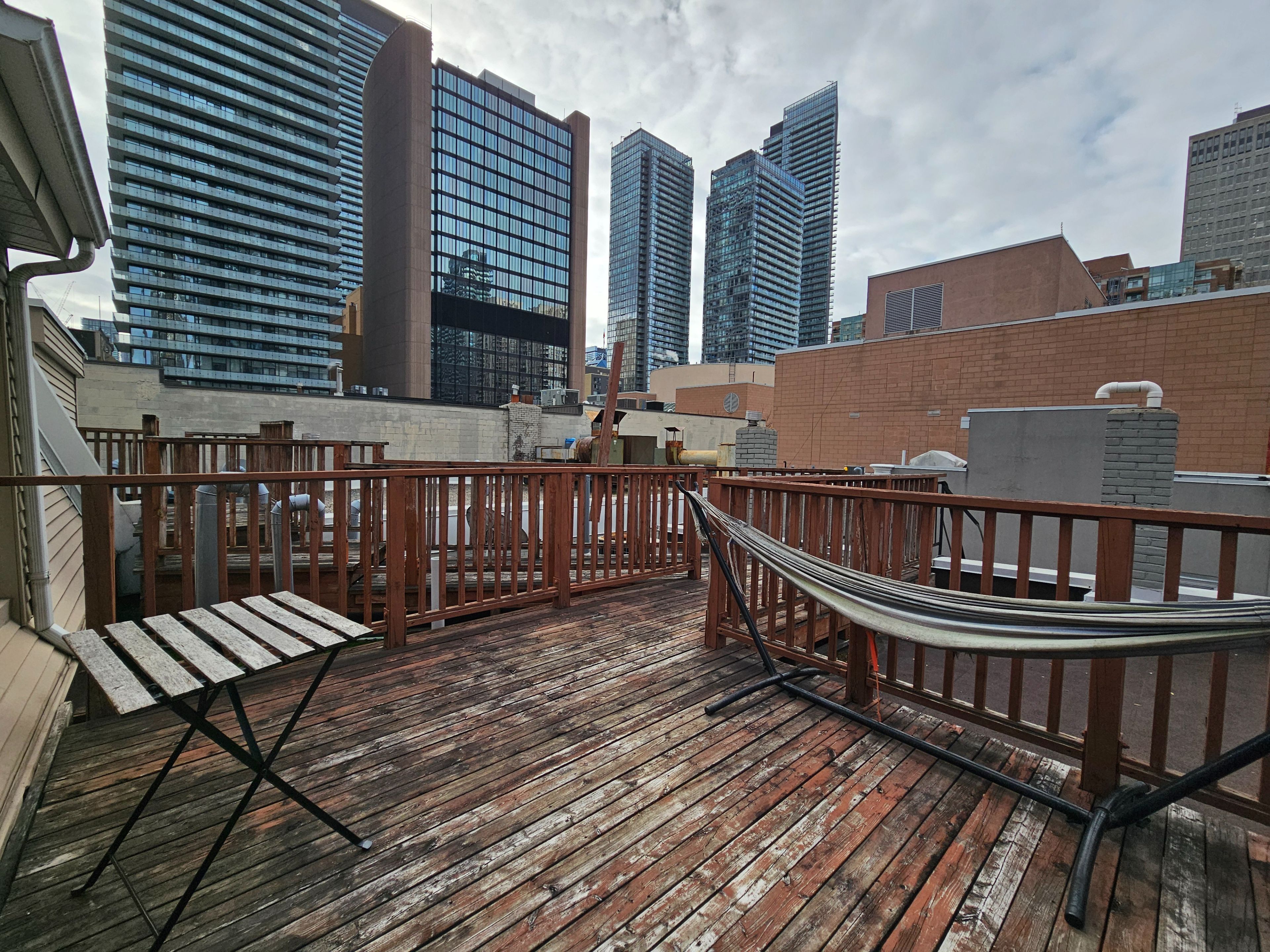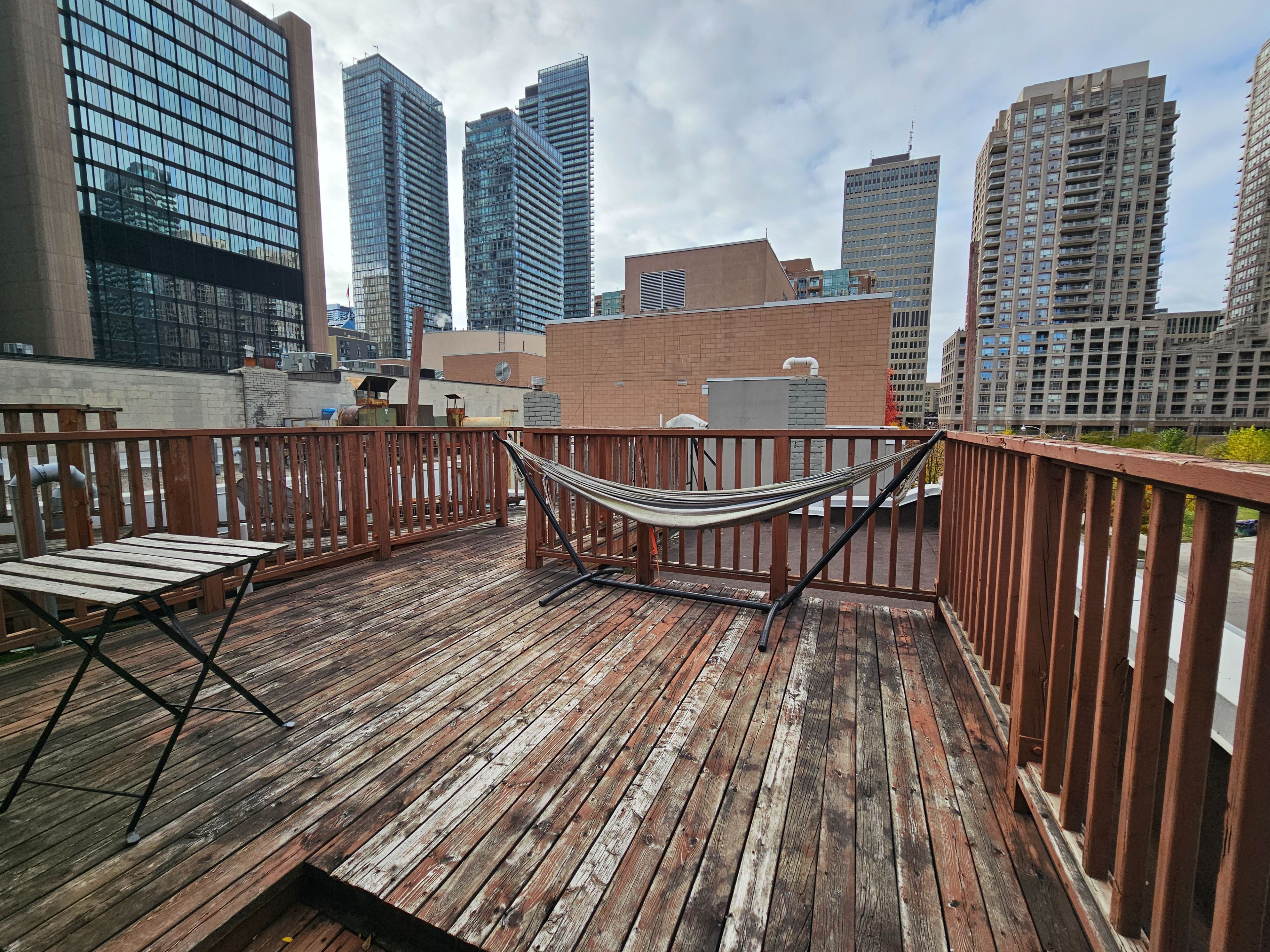 Welcome to this spacious 1 bedroom apartment in the heart of downtown toronto. This unit boasts 10 foot ceilings, ensuite laundry, hardwood floors throughout and a walkout to a large rooftop deck area. It has large windows for natural lighting and has been newly painted. It's ready to move in anytime and is steps to ttc, shops, restaurants, parks, schools, etc. Water is included. Hydro and heat extra with self controlled thermostat. Pet friendly.