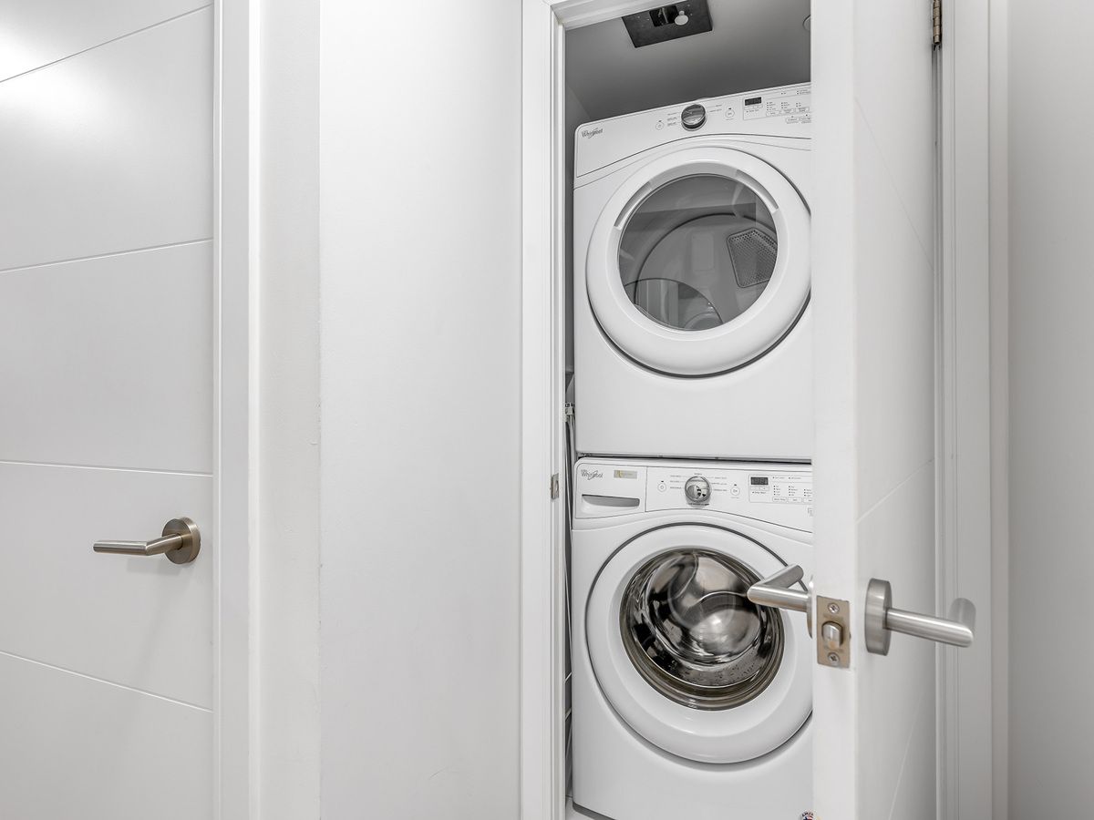 Love the energy of king west but want a quiet escape? This stunning 1+den, 2-bath condo in a well-managed building with low maintenance fees offers the best of both worlds. Tucked into a peaceful pocket with park views, yet steps to king street's buzz, it features a smart, no-wasted-space layout perfect for entertaining. Enjoy an open-concept living area with quartz counters and full-size stainless steel appliances, a spacious primary bedroom with ensuite, and a fully enclosed den ideal as a second bedroom or home office. Thoughtful upgrades include a full-size washer/dryer, custom closet organizers, mirrored closet doors, updated lighting (2023), and a newer dishwasher (2024). Steps to the future ontario line, top restaurants, cafes, shops, trinity bellwoods, the waterfront, and more. Incredible amenities include a pool, gym, party rooms, media room, saunas, steam room, and rooftop terrace with bbq. Parking & locker included. A true king west lifestyle opportunity.