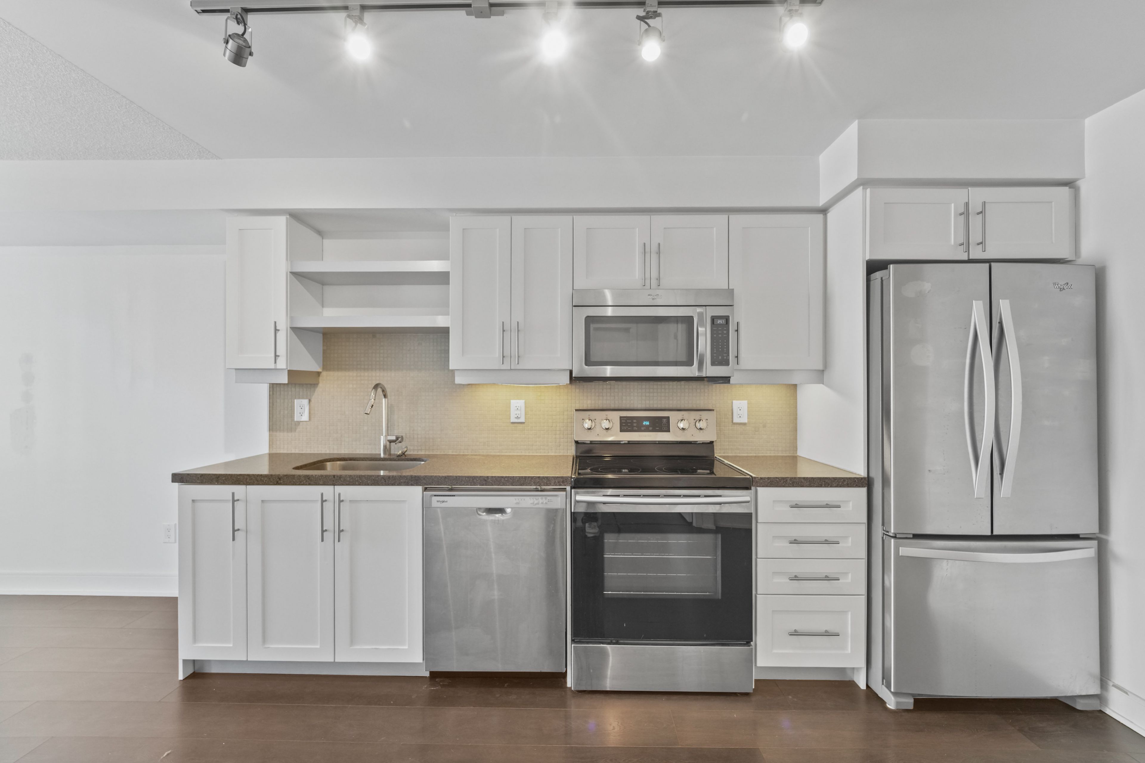 Discover elevated urban living at musée, ideally located in the heart of king west. This beautifully designed suite boasts soaring ceilings and a private terrace, offering a bright, open atmosphere perfect for both relaxing and entertaining. The smart layout features an enclosed den with a door, ideal as a second bedroom, home office, or guest space. The modern white kitchen is equipped with stainless steel appliances and sleek finishes. Neutral wide-plank flooring throughout adds warmth and elegance, the entire unit is in excellent condition. Residents enjoy outstanding amenities, including a swimming pool and fully equipped fitness facilities. Set in toronto's dynamic fashion district, you're just steps from top dining, boutique shopping, nightlife, the financial district, theatres, and the university of toronto. With easy access to multiple streetcar lines (501, 504, 510, and 511), commuting is seamless. Experience sophisticated downtown living with unmatched convenience and vibrant city energy.