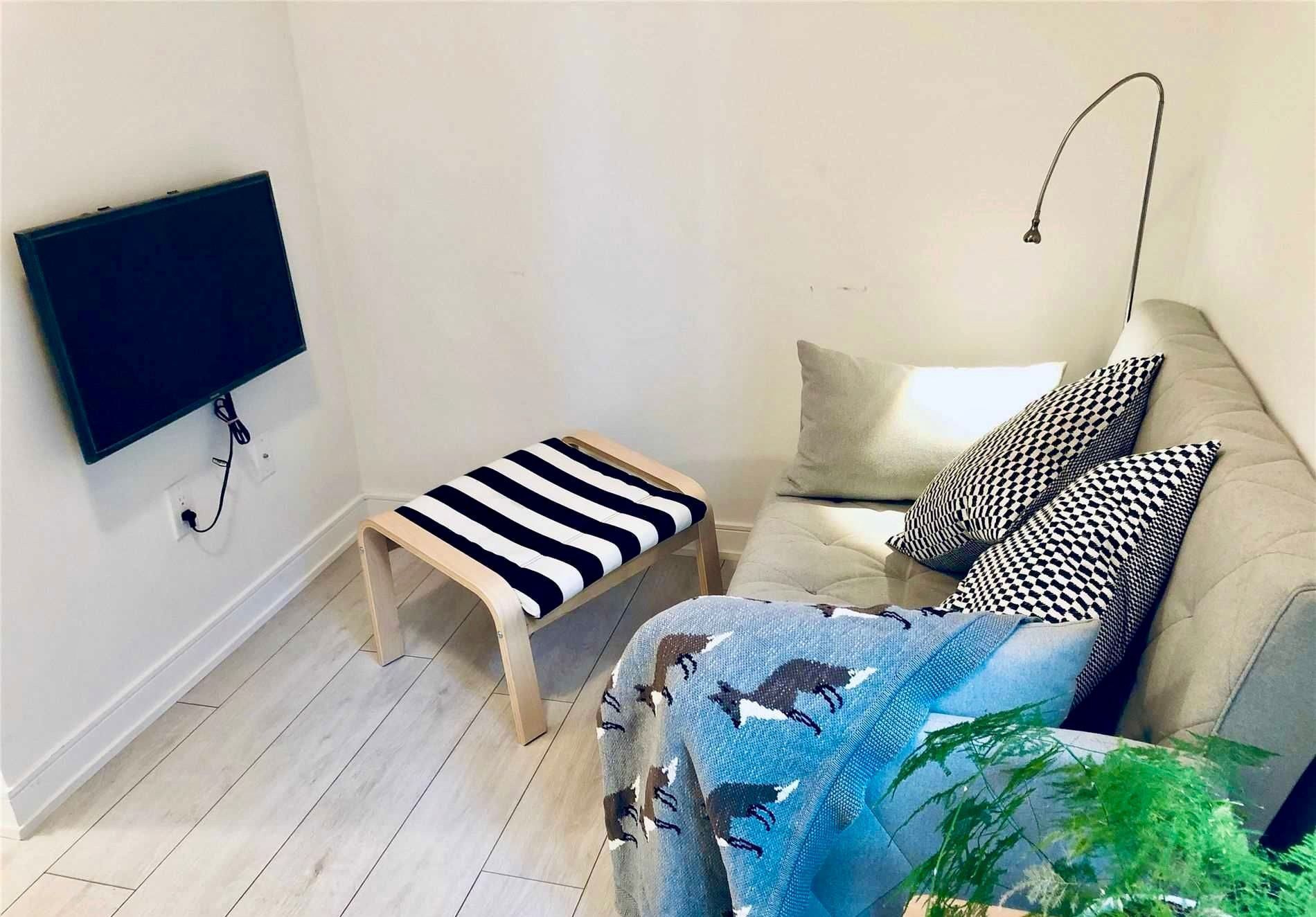 Rare corner suite at musée - two exposures, exceptional natural light, and one of the most sought-after layouts in the building. This 1-bedroom + den, 2-bathroom condo spans 721 sq ft with floor-to-ceiling windows, wide-plank hardwood floors, and 9-ft ceilings throughout. The open den works perfectly as a home office or guest nook. The kitchen features dark walnut cabinetry, floating shelves, stone countertops, and a full suite of stainless steel appliances. The primary bedroom includes a private ensuite. Step out from the living room onto your private balcony. Two full bathrooms - a genuine rarity at this price point. One locker included. Resort-style amenities include an outdoor pool, hot tub, rooftop deck with bbqs, fully equipped gym, party room, theatre, and guest suites - with 24-hr concierge. Tucked in the heart of king west, steps to the city's best dining, cafés, and nightlife, with ttc at your door. Available partially furnished - inquire for details.