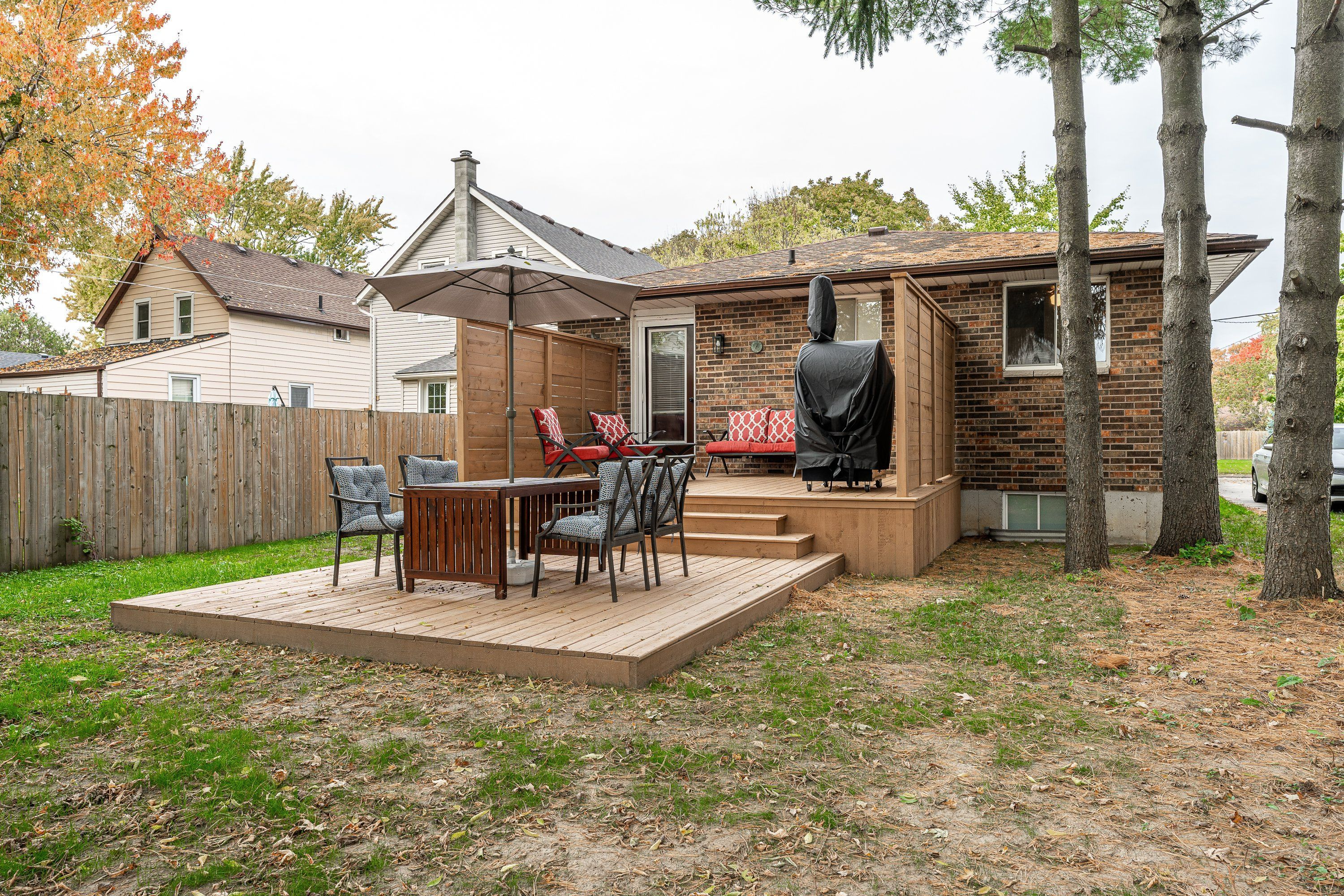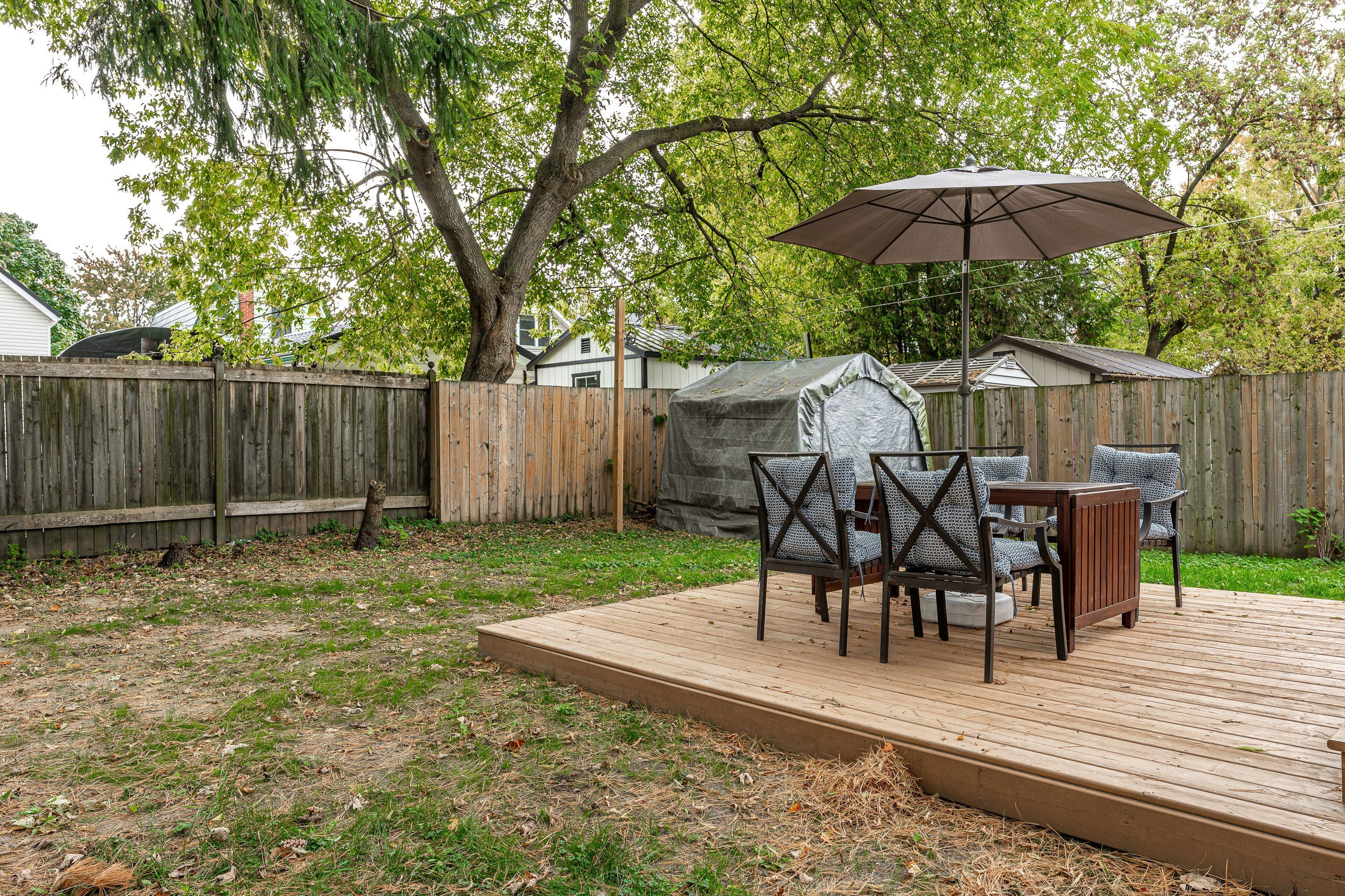 • Spacious backyard accessible from back bedroom's deck door.