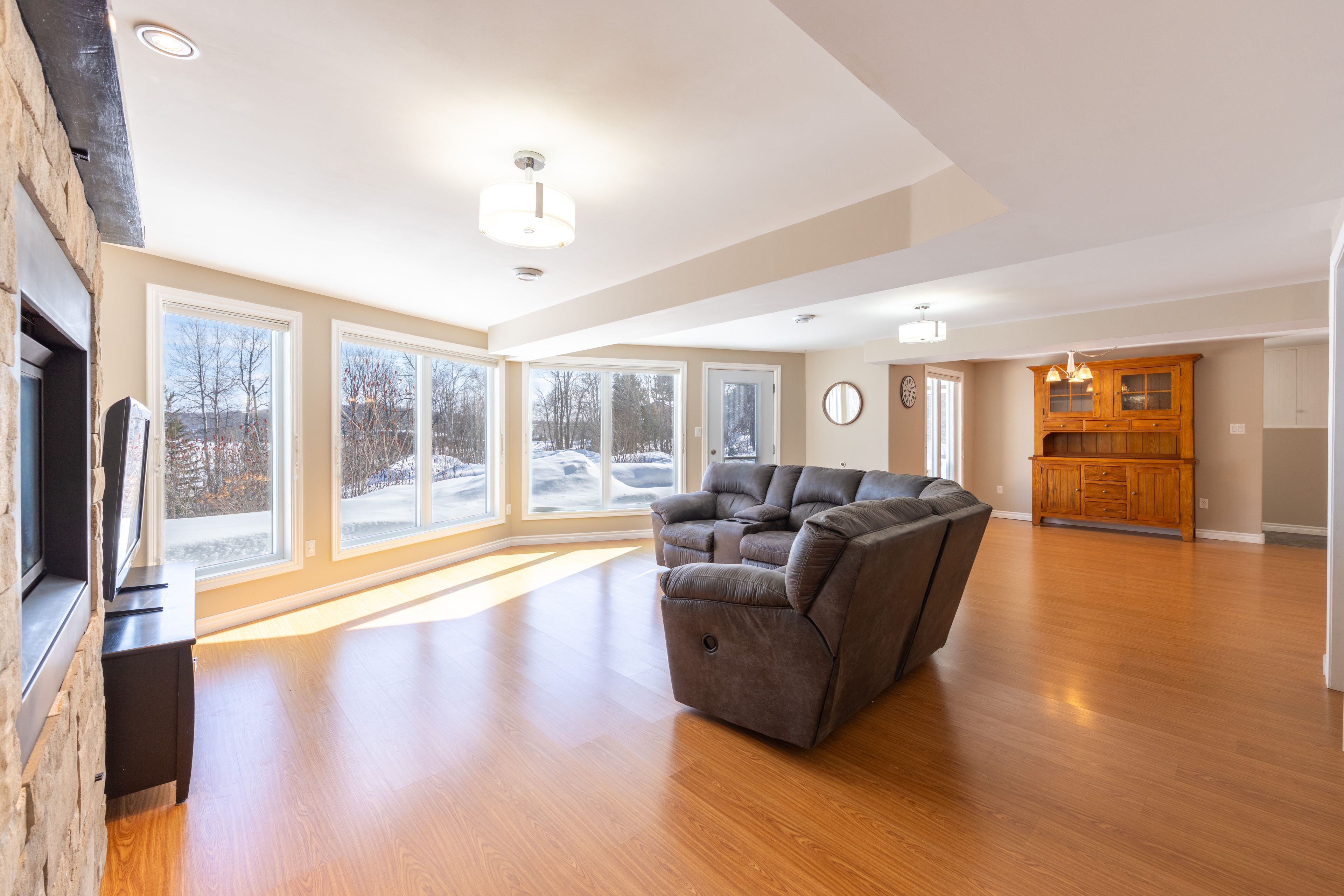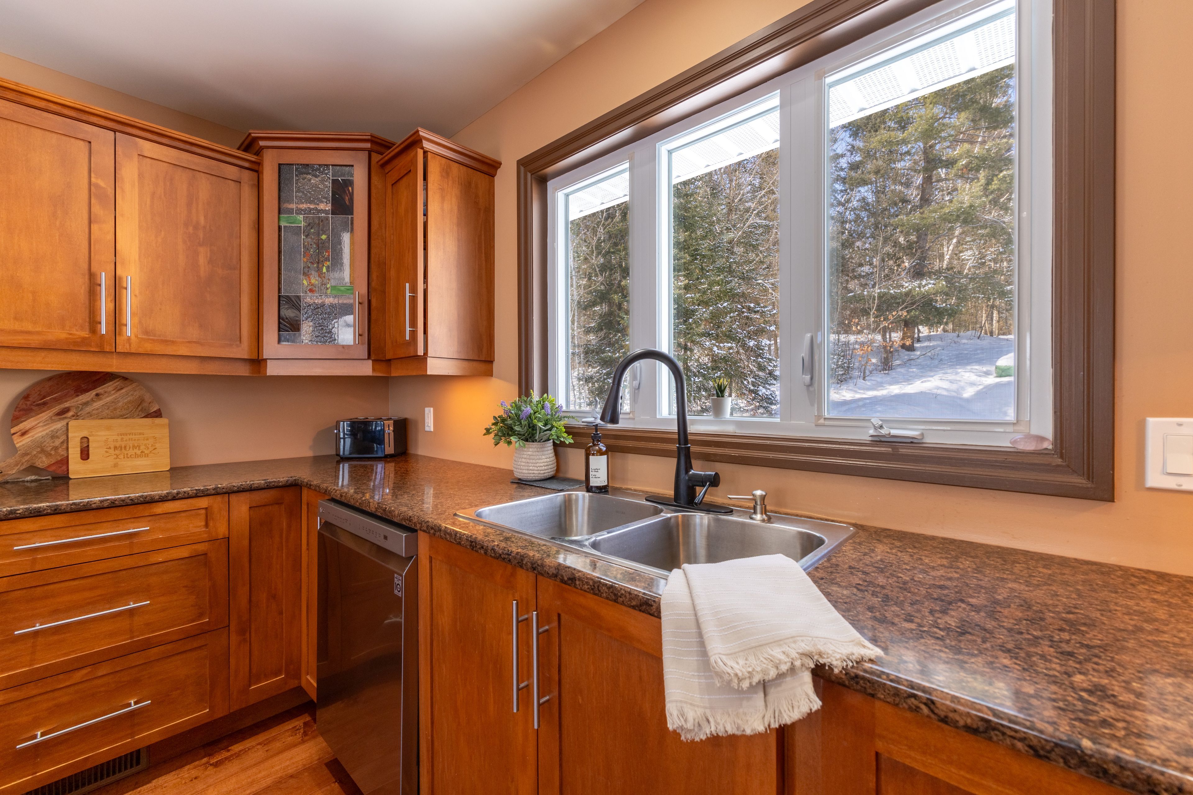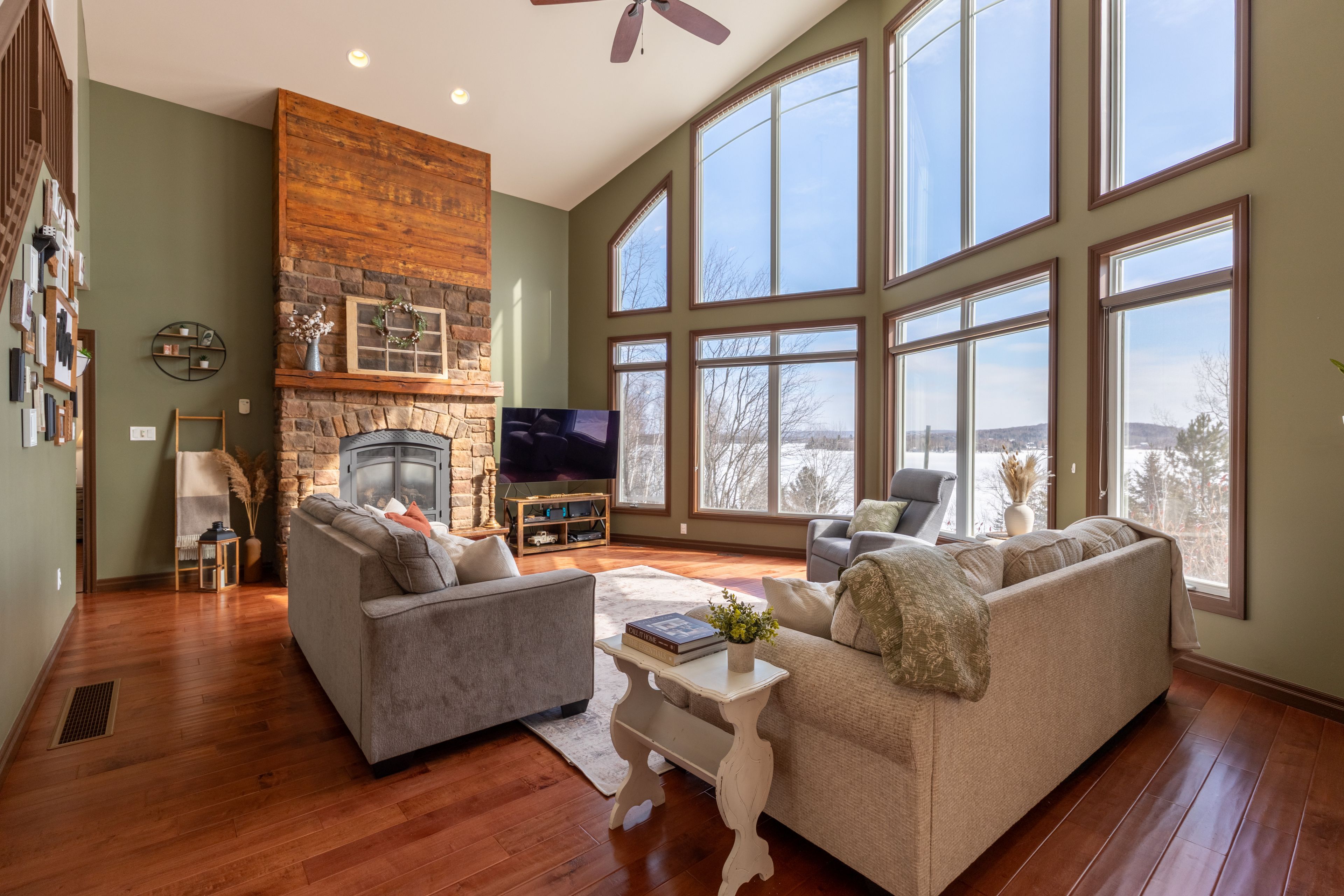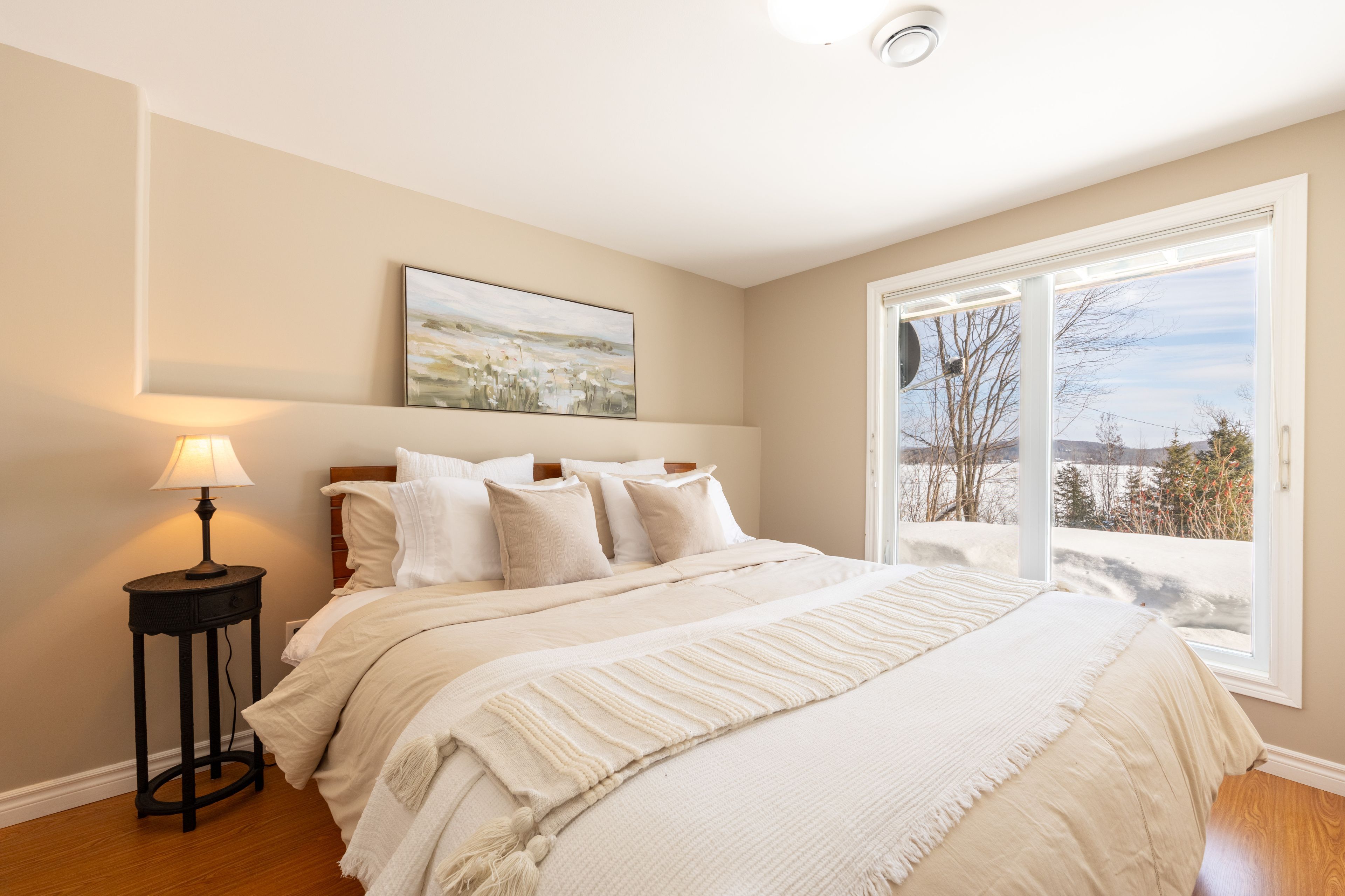 Welcome to this spectacular 2+3 bedroom, 2 bathroom country bungalow with dedicated in-law suite, stunning views of lake nosbonsing, detached oversized double car garage and so much more! Privately set, this home offers relaxing vibes from the moment you pull in, with exposed canadian shield as you park, to lake views upon entry. The main floor offers a semi-open concept living area with 19' cathedral ceilings in the great room with a propane fireplace and engineered hardwood floors. The dining area has access to the wrap-around deck, ideal for bbqing or relaxing while taking in the peaceful views. Spacious kitchen with island and appliance package. Primary suite with 4pc main/ensuite and walk-in closet. There is an additional bedroom and access to the open loft area ideal for a home studio or getaway space. The basement is a full walkout and is accessed from an interior staircase with shared laundry, or from outside with its own parking area. An ideal in-law suite or room for a larger family with a kitchenette, dining room, large living room with a propane fireplace, and ample natural light. 2 large bedrooms and a 4pc bath with an accessible sit-in shower/tub. The detached 21' x 33' heated garage is a dream and features its own 2-piece bathroom. Situated minutes from the public beach and boat launch, medical centre, area schools, community centre, and so much more! If you are looking for an ideally set country property, look no further!