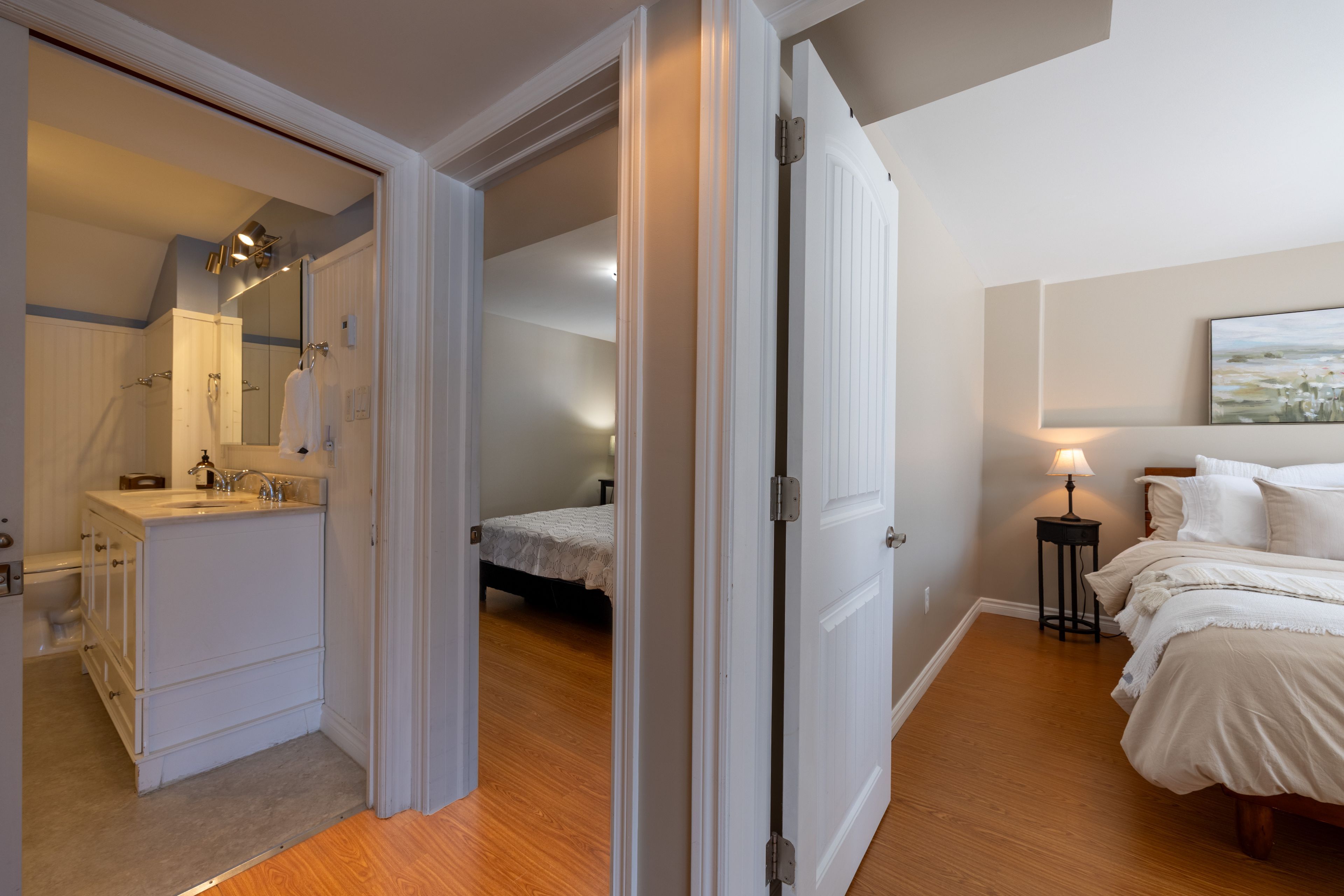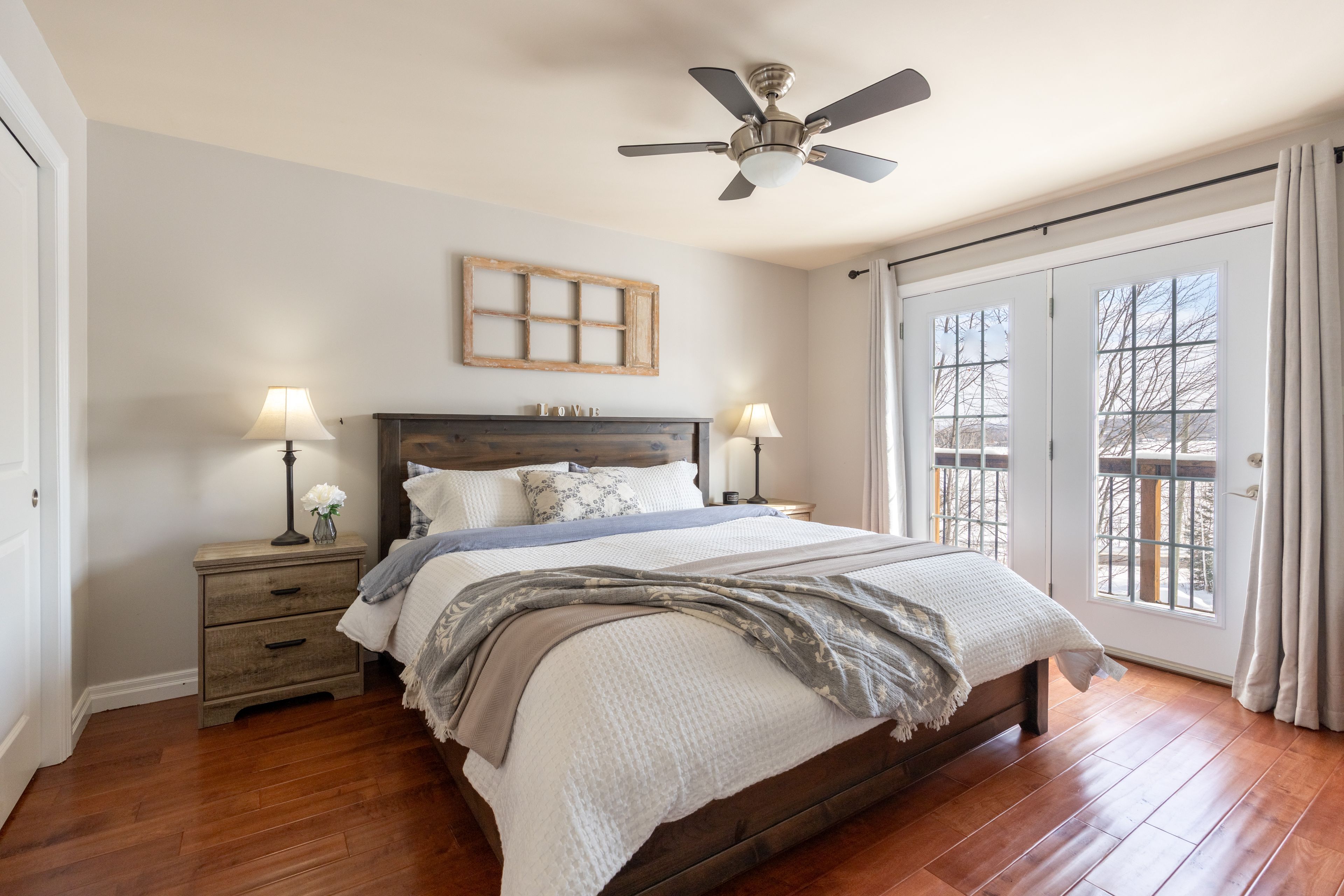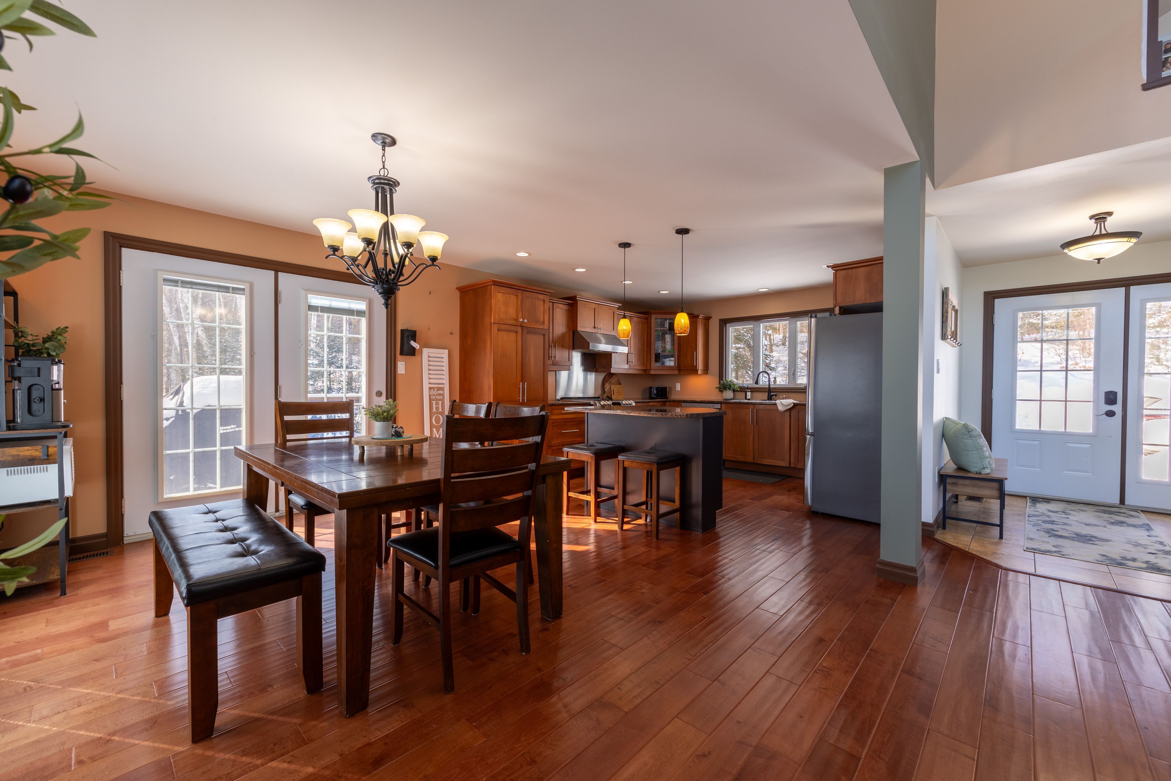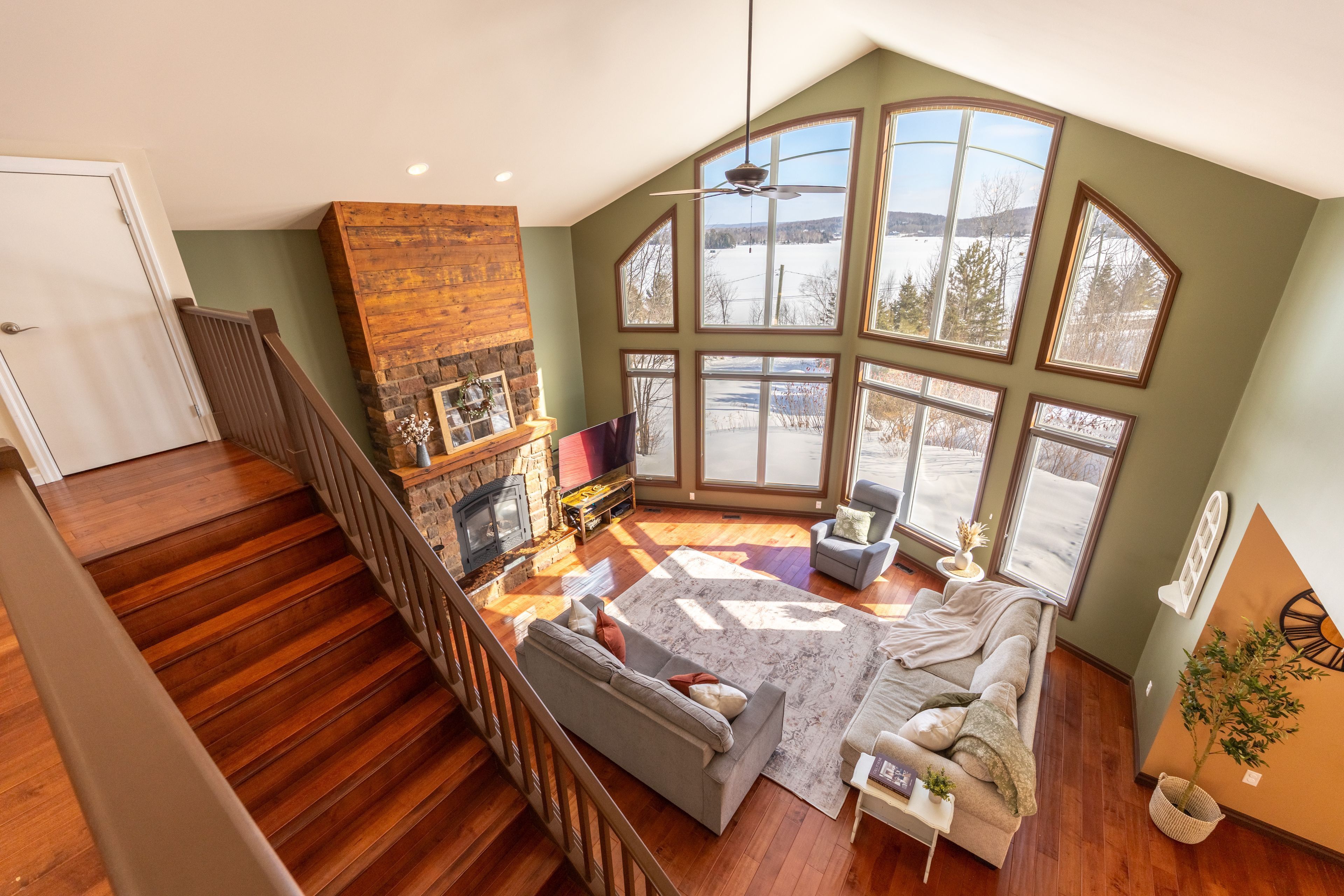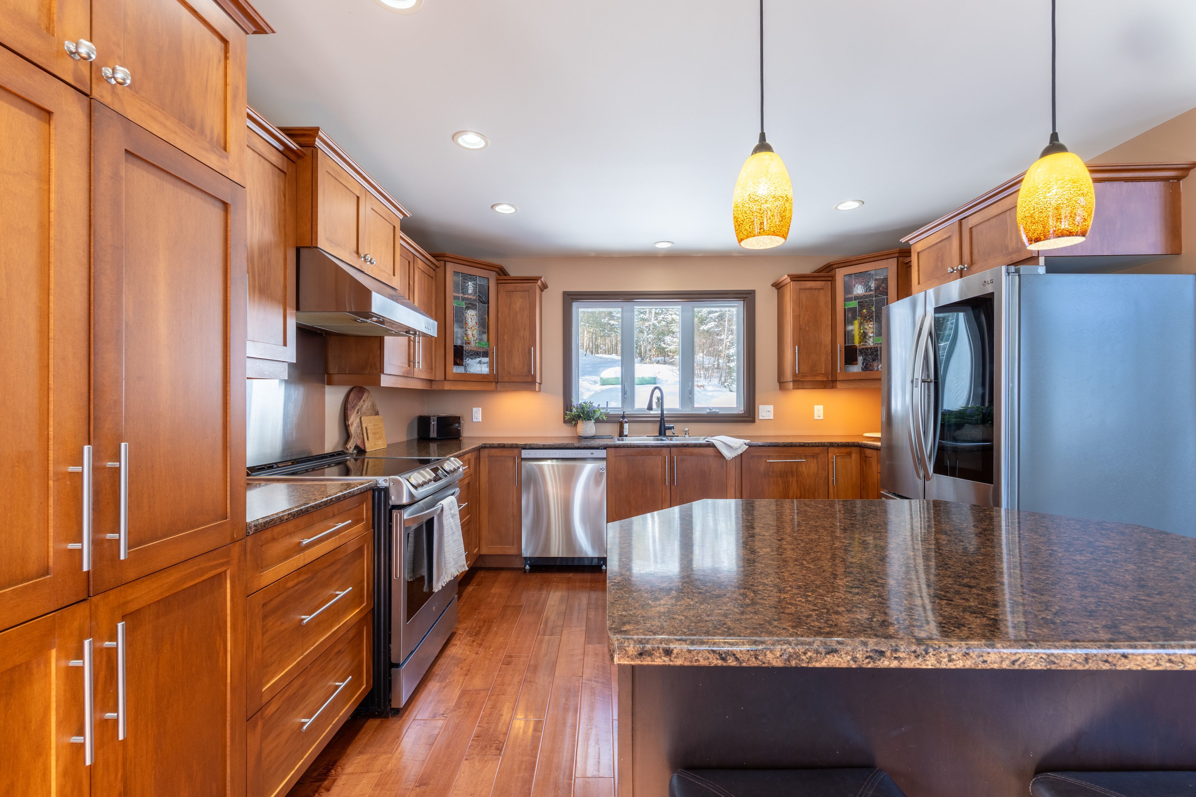 Welcome to this spectacular 2+3 bedroom, 2 bathroom country bungalow with dedicated in-law suite, stunning views of lake nosbonsing, detached oversized double car garage and so much more! Privately set, this home offers relaxing vibes from the moment you pull in, with exposed canadian shield as you park, to lake views upon entry. The main floor offers a semi-open concept living area with 19' cathedral ceilings in the great room with a propane fireplace and engineered hardwood floors. The dining area has access to the wrap-around deck, ideal for bbqing or relaxing while taking in the peaceful views. Spacious kitchen with island and appliance package. Primary suite with 4pc main/ensuite and walk-in closet. There is an additional bedroom and access to the open loft area ideal for a home studio or getaway space. The basement is a full walkout and is accessed from an interior staircase with shared laundry, or from outside with its own parking area. An ideal in-law suite or room for a larger family with a kitchenette, dining room, large living room with a propane fireplace, and ample natural light. 2 large bedrooms and a 4pc bath with an accessible sit-in shower/tub. The detached 21' x 33' heated garage is a dream and features its own 2-piece bathroom. Situated minutes from the public beach and boat launch, medical centre, area schools, community centre, and so much more! If you are looking for an ideally set country property, look no further!