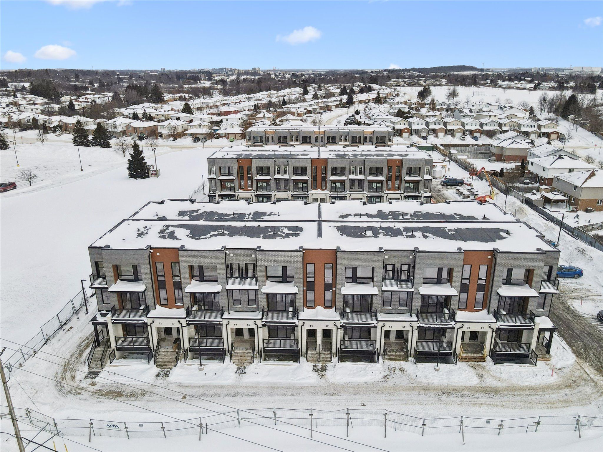 1 year free condo fees! Welcome to "the bobby"-a sophisticated two-over-two stacked condo townhome in the highly sought-after erinbrook towns community. Perfect for first-time buyers, professionals, or investors looking for a "lock-and-go" lifestyle without the headache of snow removal or lawn maintenance. Step into a bright, open-concept living space flooded with natural light. The modern kitchen is a showstopper, featuring a sleek dark-toned island, crisp white cabinetry, and subway tile backsplash. Walk out from your living room to a private covered balcony-perfect for outdoor relaxation. A convenient powder room completes this floor. The quiet lower retreat features two bedrooms, a dedicated laundry and additional storage. The main 4-piece bathroom has a premium feel with a double-sink vanity and modern tiling. Extras: energy star certified for maximum efficiency and lower utility costs. 1 dedicated parking space included. High-speed bell internet is included in your condo fees! Walking distance to premium shopping, restaurants, and parks. First-time homebuyer deposit plan available for qualified purchasers. Experience modern, maintenance-free living in one of kitchener's most vibrant established neighborhoods. Select images show virtual staging.