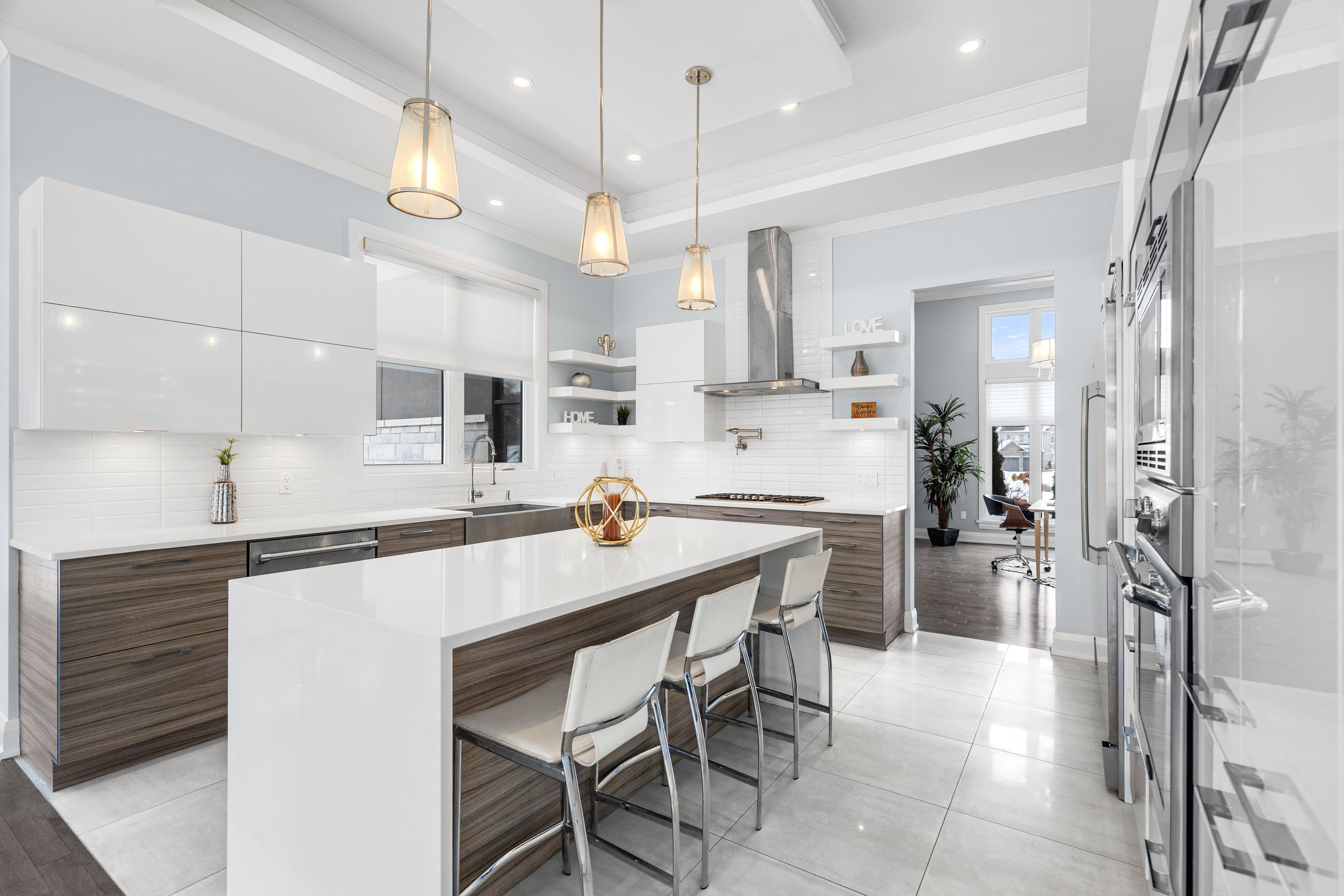 • Chef's kitchen equipped for entertaining with high-end appliances and quartz island.