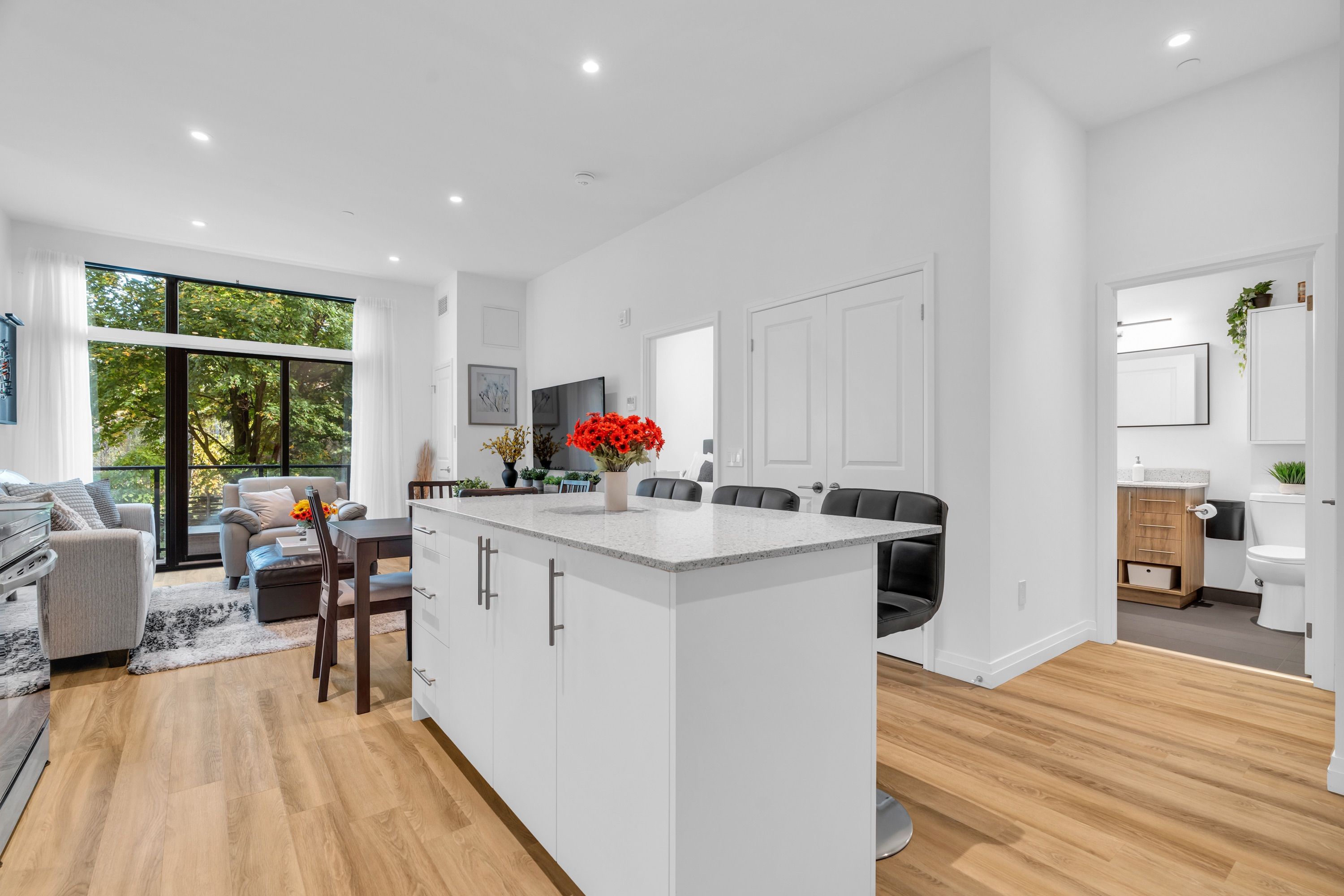 • Bright and modern one-bedroom condo with 10-foot ceilings on the main floor.