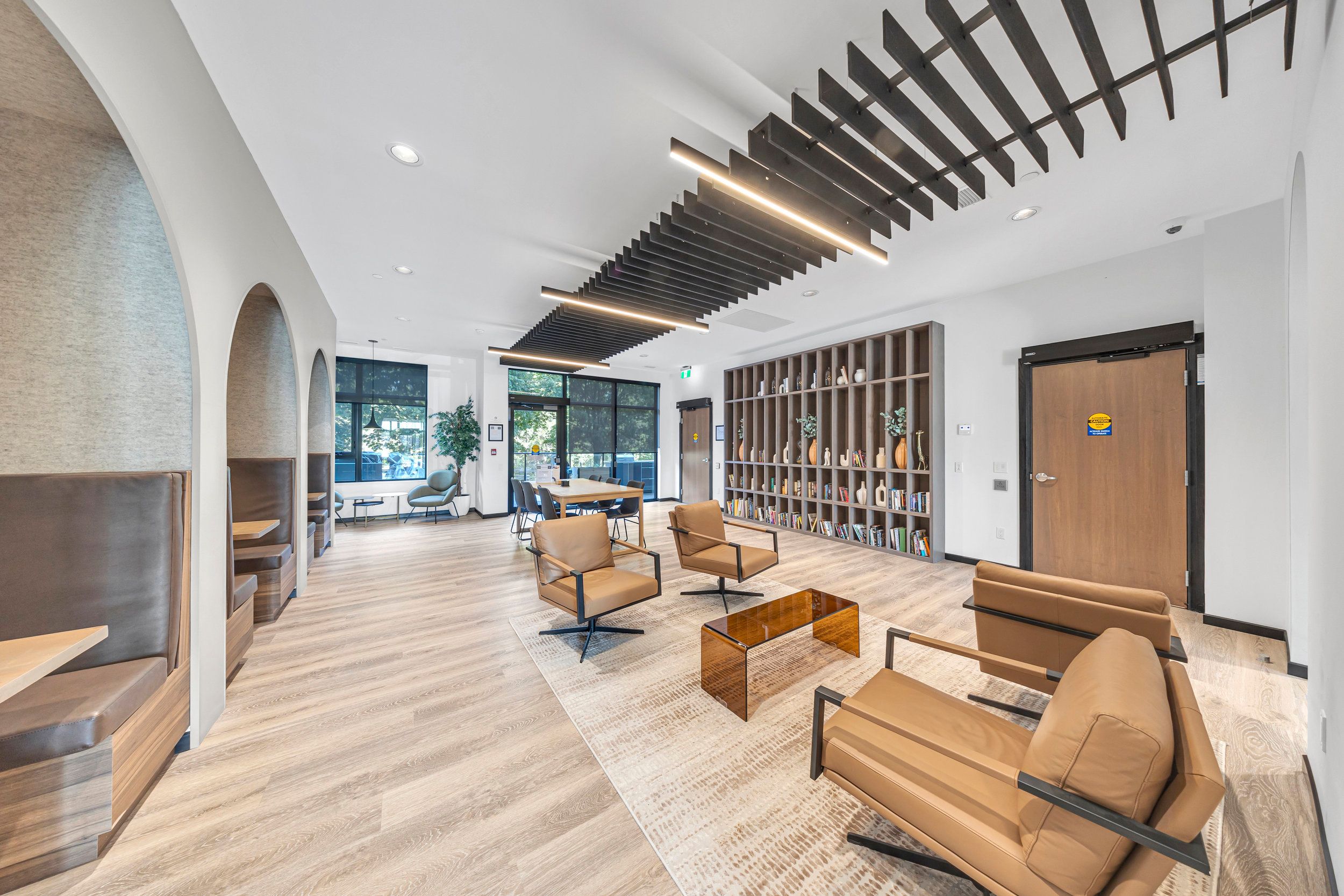 • Brand-new residence with a variety of amenities, including a yoga studio and fitness center.
