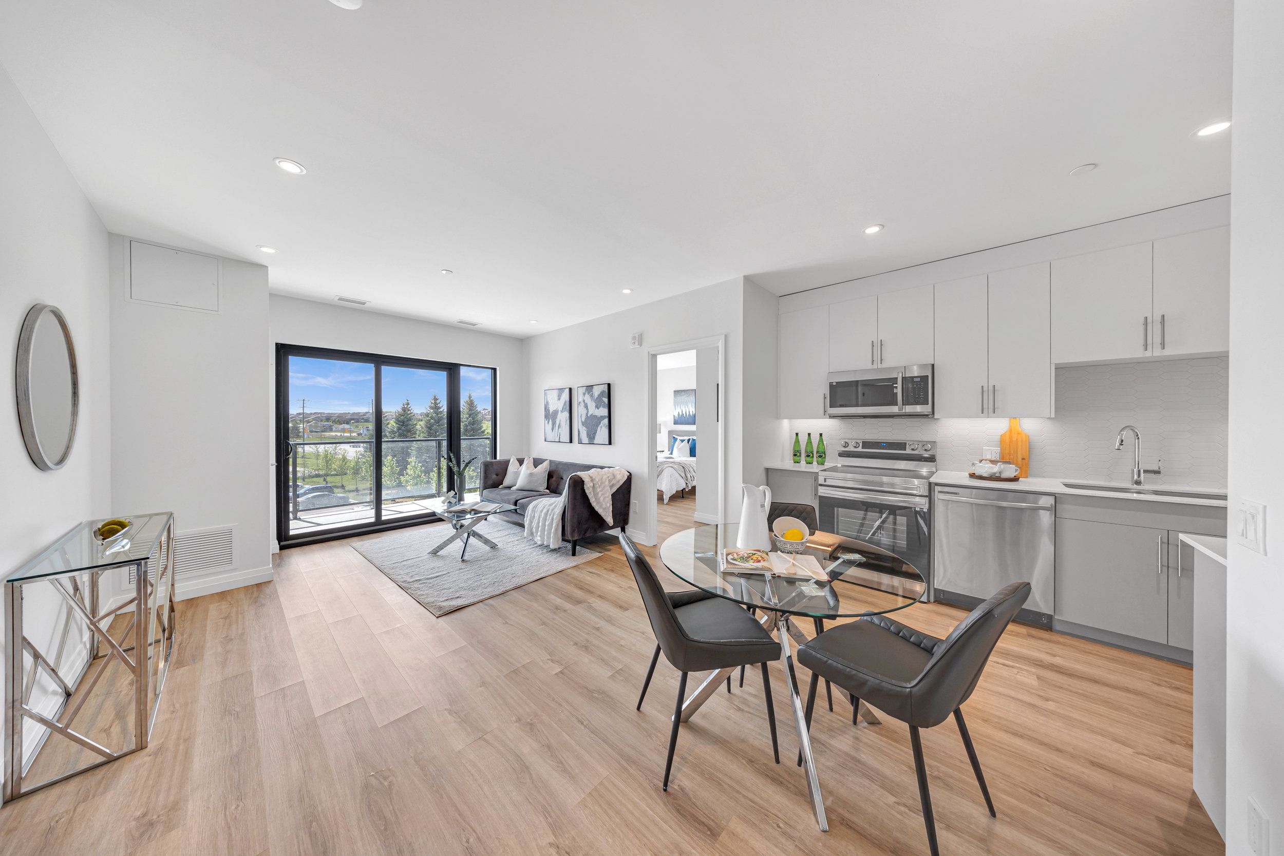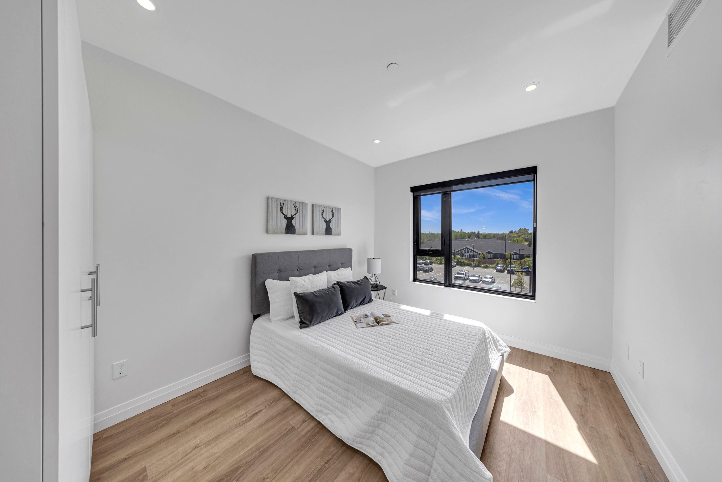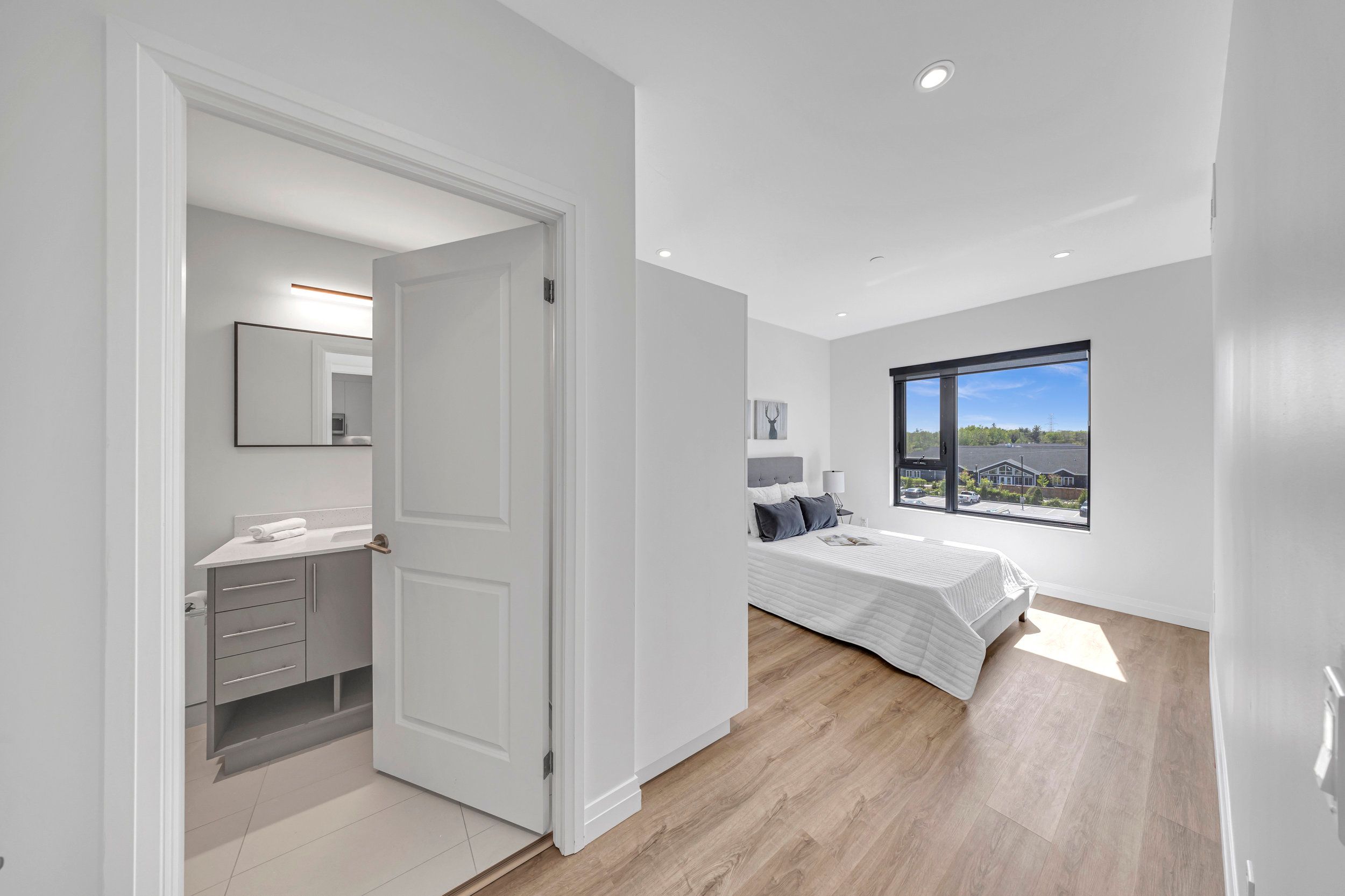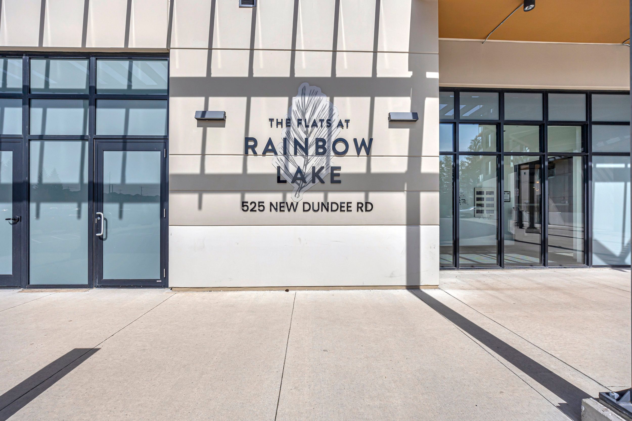 Welcome to the flats at rainbow lake! Nestled in nature, this brand-new, beautifully built residence offers a variety of amenities, including a yoga studio with sauna, a fitness center, a party room, a social lounge, a library, and a pet wash station. Residents enjoy private access to the rainbow lake conservation area. The building is ideally situated near local shops, dining, recreational venues, and highway 401 for added convenience. This 912 sq ft unit includes 2 bedrooms and 2 bathrooms. The spacious primary bedroom features an ensuite with a large walk-in shower, while the second bedroom offers a built-in wardrobe. The open-concept kitchen, and living areas are perfect for entertaining and relaxing, complete with stainless steel samsung appliances. Step out onto the generous 92 sq ft balcony and enjoy the surrounding peace and serenity. Dont miss the opportunity to make this exceptional building your new home.