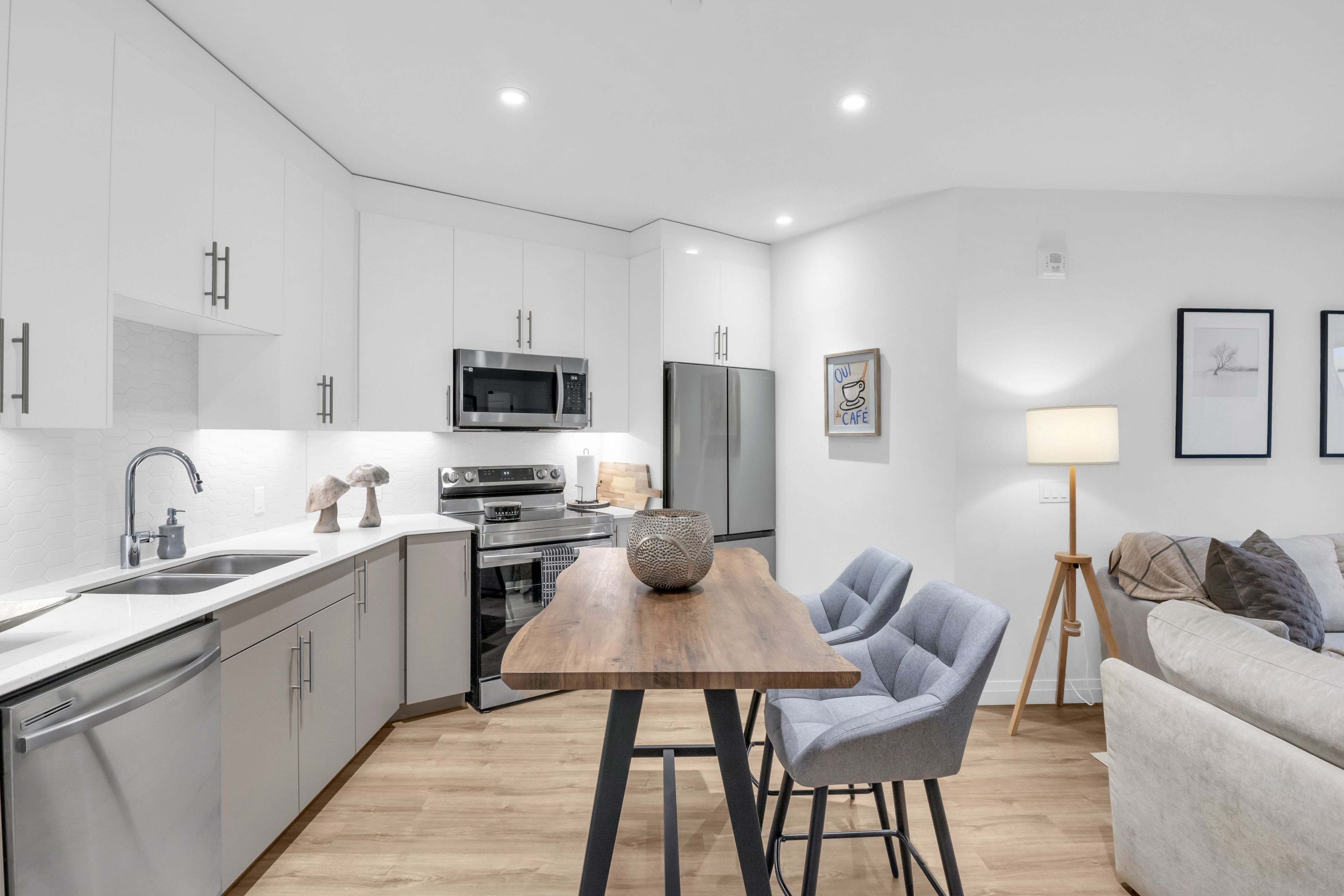 • Convenient kitchen with stainless steel appliances and ample cabinetry.