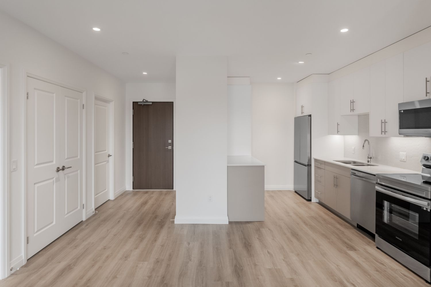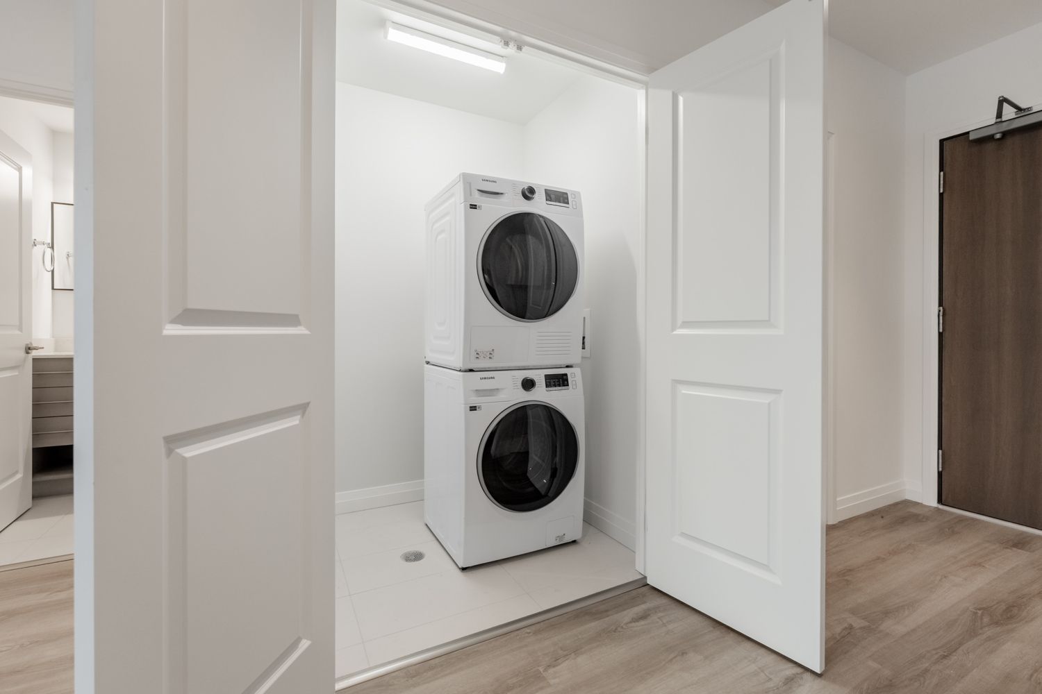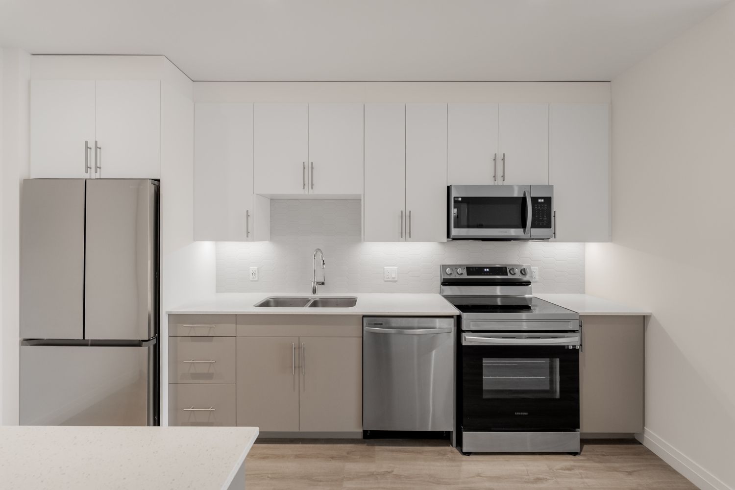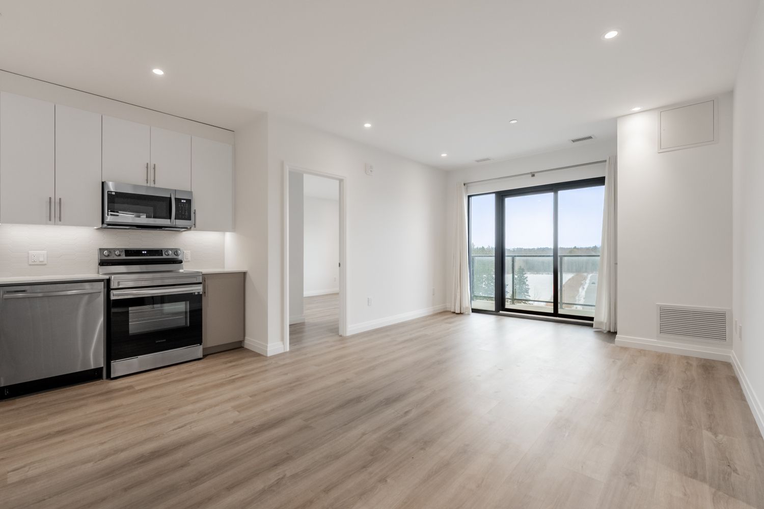 Forget the shovels! Welcome to the flats at rainbow lake - one of kitchener's best kept secrets. Set within a private lakeside conservation enclave, this stunning 2-bedroom, 2-bathroom suite offers 912 sq ft (+92 sq ft balcony) of carpet-free living plus 1 parking space. The bright white kitchen features quartz countertops, stainless steel appliances, sleek backsplash, and valance lighting, blending modern elegance with everyday functionality. The scandinavian-inspired finishes extend from the unit and throughout the building, which is situated on 4. 4 acres of lakeside property and surrounded by over 45 acres of protected conservation land, including one of the oldest growth forests in southwestern ontario. Enjoy swimming, fishing, canoeing, scenic trails, and tranquil lake views right outside your door. Amenities include a co-working space, library, games and party room, outdoor dining and bbq areas, gym with sauna, bike storage, dog wash station, and ev chargers. Ideally located with immediate access to highway 401 and just moments from transit, shopping, dining, and schools. A fantastic opportunity to live where nature meets modern living.