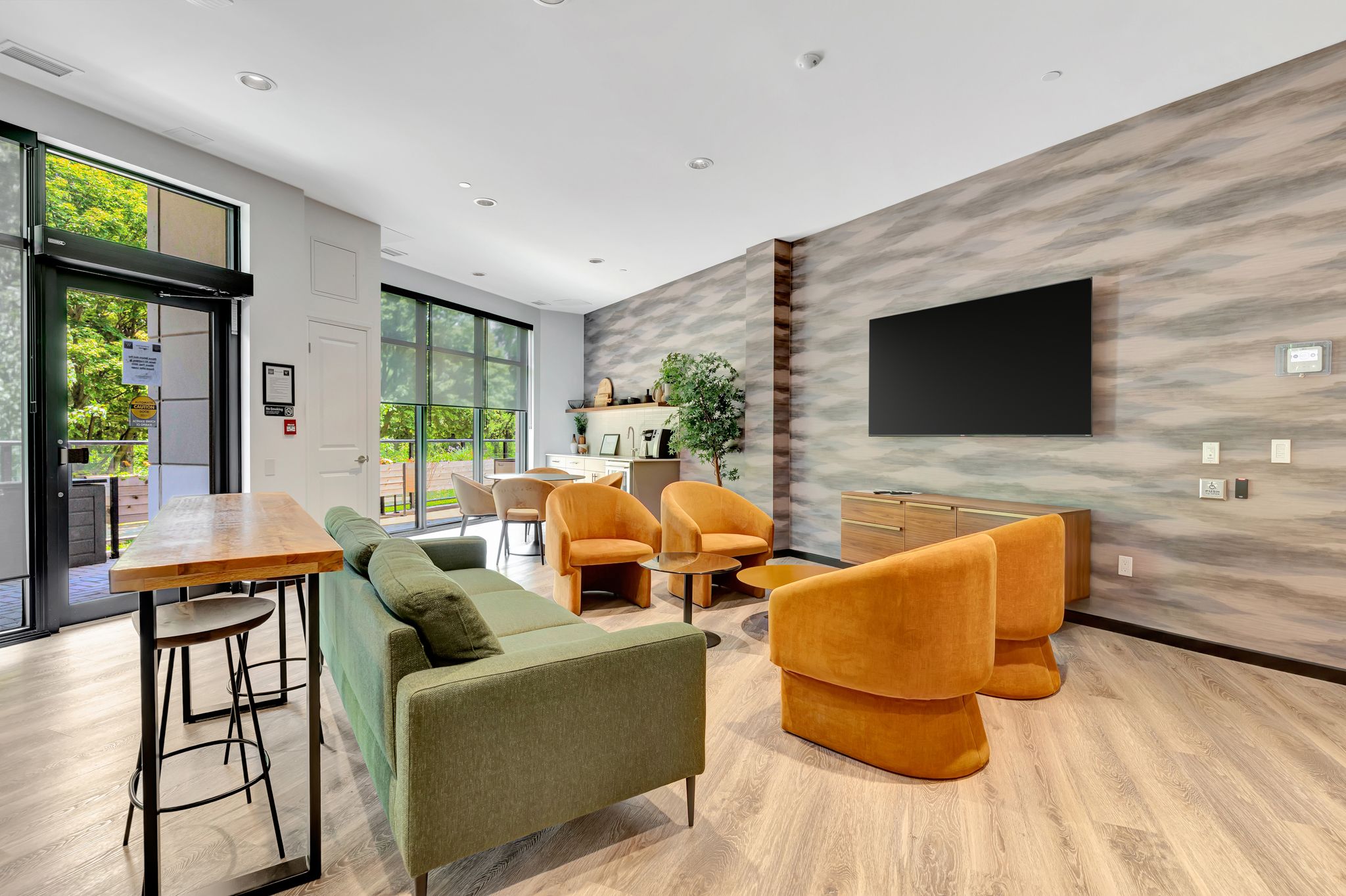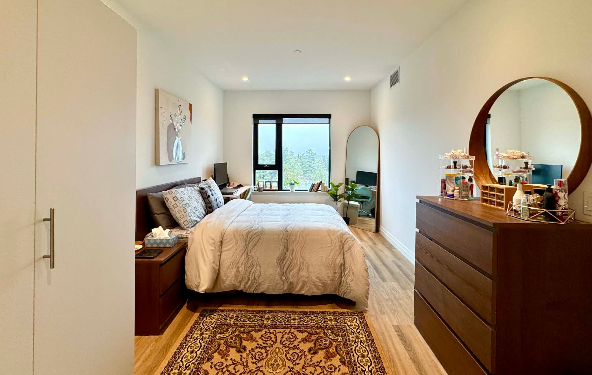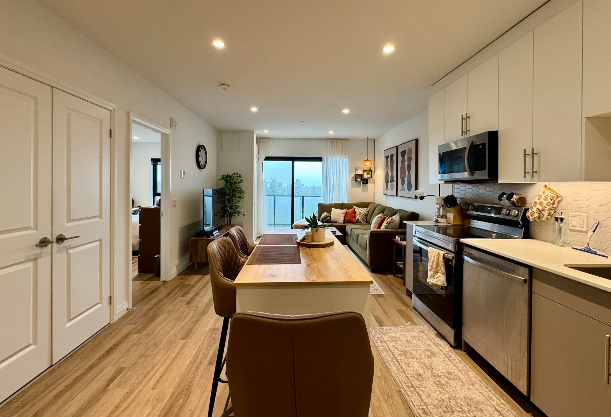 • Open concept living space with large windows for natural light.